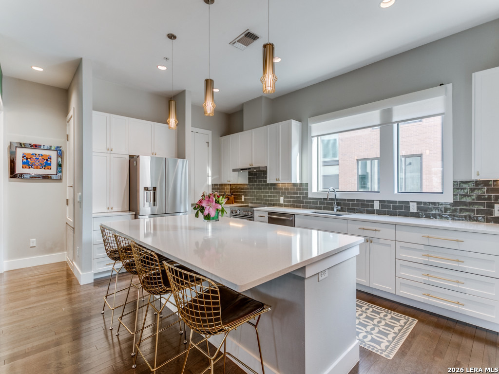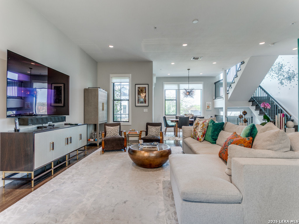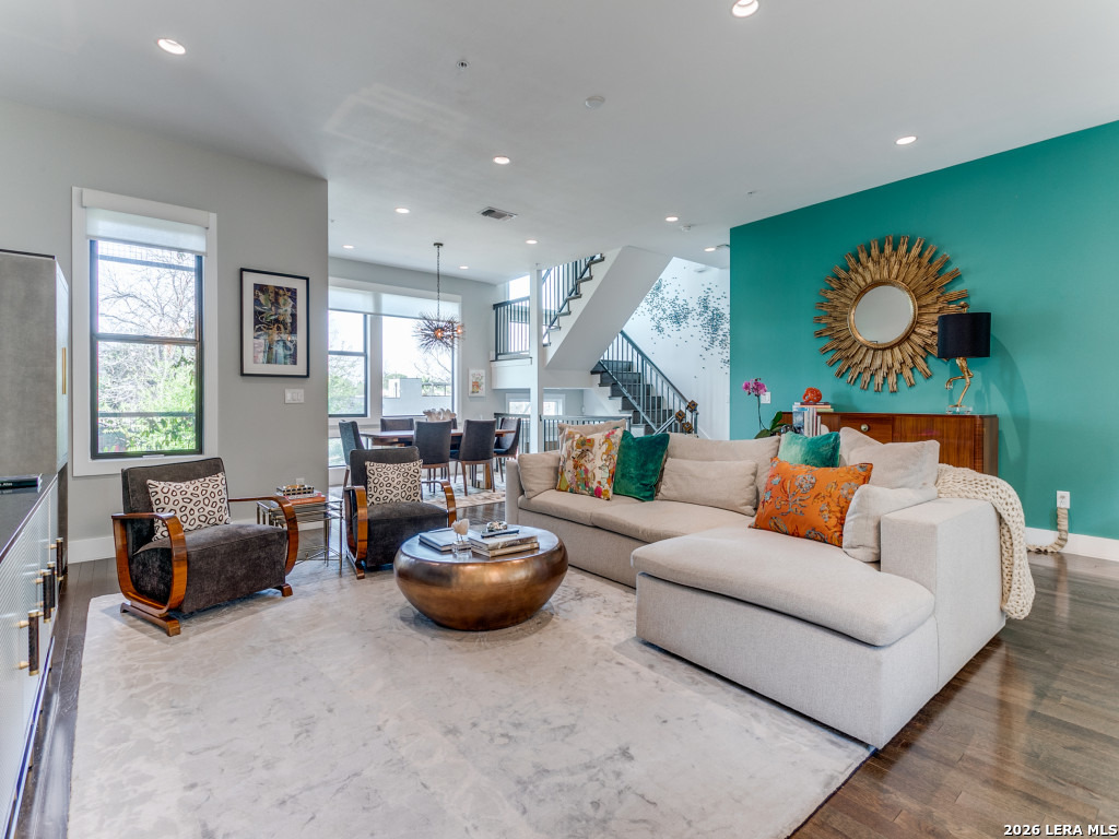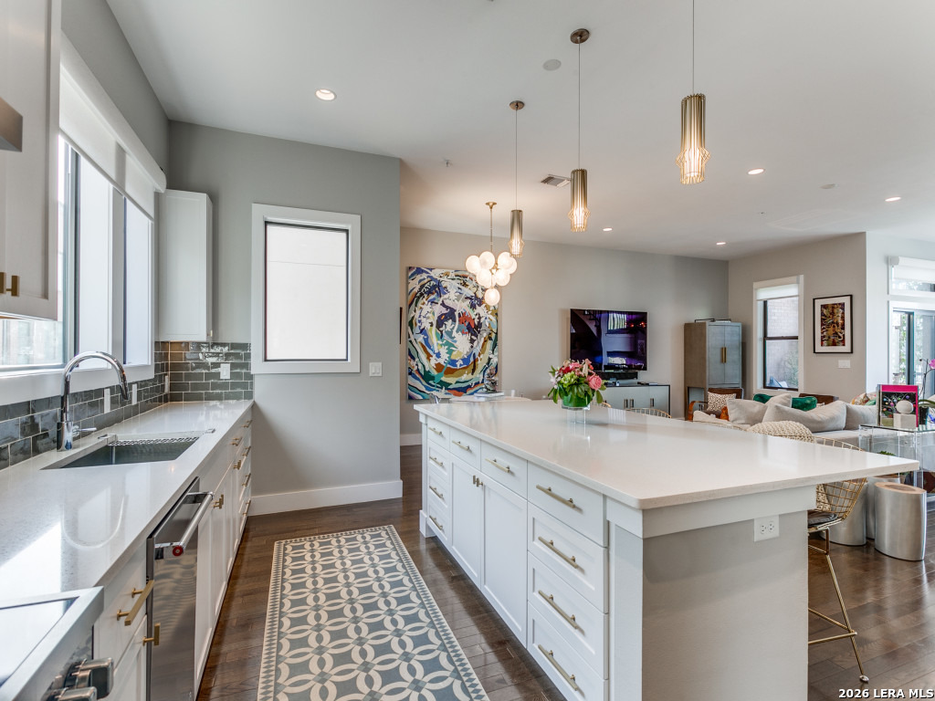 Premiere living at the Pearl! This is the largest floorplan at SOJO Commons, measuring 2857 sq. ft-3 bedrooms and 3.5 baths. Beautiful upgrades abound throughout the townhome, from upgraded fixtures and appliances to custom paint and wallpaper. All closets and the pantry have been customized. The primary suite features a giant, stunning primary closet with an exercise space. Generous outdoor spaces including 2 patios on the first floor, balconies on the 2nd and 3rd floor, and a gorgeous rooftop deck with amazing city views. The oversized 2 car garage has an epoxy floor and contains a 14 x 8 workshop or workout area. Electric blinds and full security system provide lock and leave convenience!