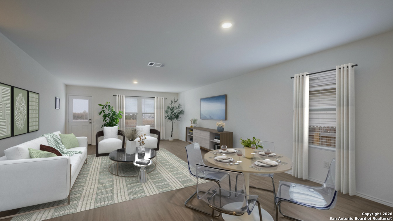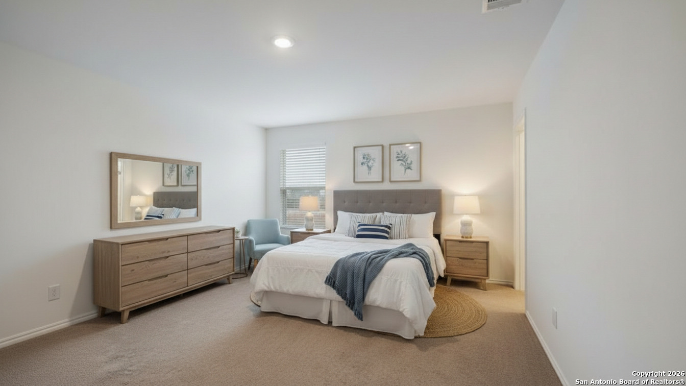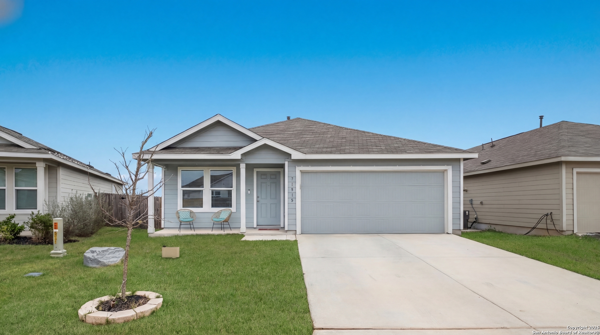 Welcome home to this extremely affordable and energy-efficient gem located in the desirable Hidden Trails community, conveniently situated off Hwy 281 North in Bulverde, TX in the Johnson Ranch area. Offering over 1,400 square feet, this well-designed home features 3 bedrooms and 2 full baths with a functional layout that maximizes comfort and everyday living. The open-concept living area creates the perfect space to stay connected with family and friends while cooking in the thoughtfully sized kitchen. Recent upgrades include a stylish new backsplash and upgraded faucet, and with a full-price offer, the refrigerator, washer, and dryer convey, making this home truly move-in ready. One of the standout features is the solar panel system, which will be paid off at closing, allowing you to enjoy average electric bills of around $50 per month, even during hot Texas summers. An electric vehicle charger is already installed in the garage, which has been finished with painted walls for a clean, polished look. The private primary suite includes a walk-in closet and a full en-suite bath, while the secondary bedrooms are located toward the front of the home and share a convenient hallway bathroom. Natural light fills the living space, making it the perfect spot to unwind and enjoy movie nights. Zoned to Johnson Ranch Elementary and Smithson Valley High School, this home also offers access to highly regarded schools. If you're looking for an energy-efficient home with interest rates that can compete with builders, schedule your private tour today.