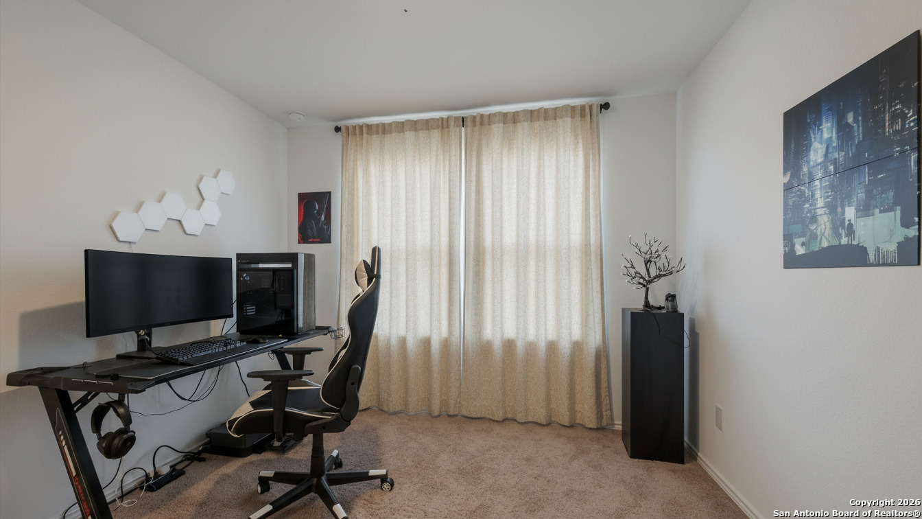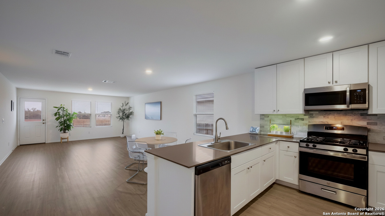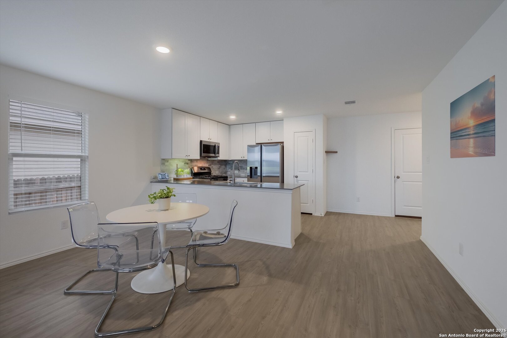 Welcome home to this extremely affordable and energy-efficient gem located in the desirable Hidden Trails community, conveniently situated off Hwy 281 North in Bulverde, TX in the Johnson Ranch area. Offering over 1,400 square feet, this well-designed home features 3 bedrooms and 2 full baths with a functional layout that maximizes comfort and everyday living. The open-concept living area creates the perfect space to stay connected with family and friends while cooking in the thoughtfully sized kitchen. Recent upgrades include a stylish new backsplash and upgraded faucet, and with a full-price offer, the refrigerator, washer, and dryer convey, making this home truly move-in ready. One of the standout features is the solar panel system, which will be paid off at closing, allowing you to enjoy average electric bills of around $50 per month, even during hot Texas summers. An electric vehicle charger is already installed in the garage, which has been finished with painted walls for a clean, polished look. The private primary suite includes a walk-in closet and a full en-suite bath, while the secondary bedrooms are located toward the front of the home and share a convenient hallway bathroom. Natural light fills the living space, making it the perfect spot to unwind and enjoy movie nights. Zoned to Johnson Ranch Elementary and Smithson Valley High School, this home also offers access to highly regarded schools. If you're looking for an energy-efficient home with interest rates that can compete with builders, schedule your private tour today.