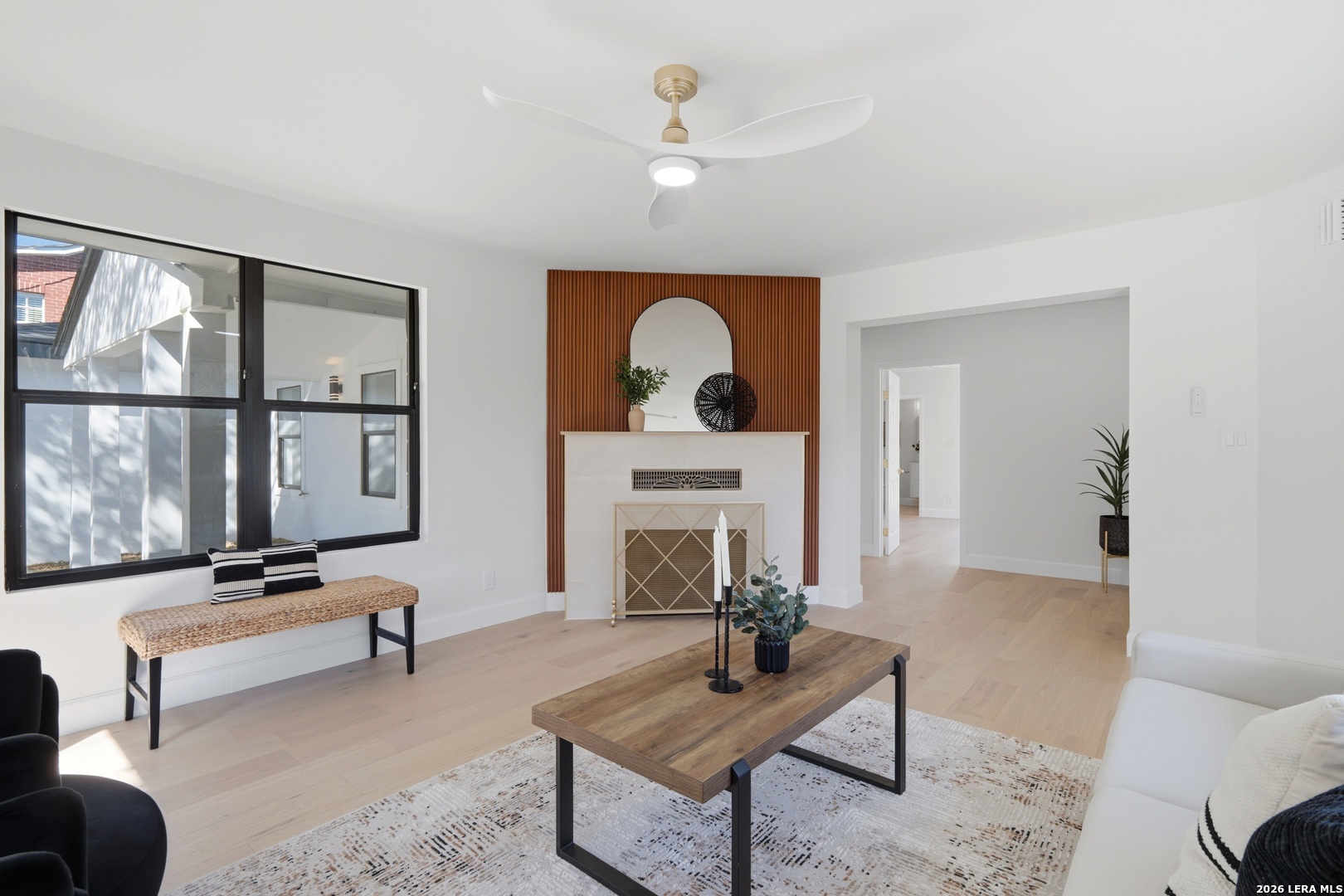 OPEN HOUSE Sat 2/28 & Sun 3/1 11am-3pm Welcome to 319 E Terra Alta, set on a rare half-acre lot in the prestigious and highly coveted 78209. This fully reimagined 4-bedroom, 3.5-bath residence offers 3,001 square feet of refined living designed with intention and elevated craftsmanship. Thoughtfully expanded and rebuilt as a long-term family home, this property blends preserved historic structure with sophisticated modern design. A portion of the original framework, constructed with solid old-growth wood, was carefully maintained and seamlessly incorporated into the newly added square footage, creating distinctive architectural character rarely found in today's renovations. Inside, natural light pours into the open-concept living spaces, where the living room, dining area, and designer kitchen flow effortlessly together. Custom wood cabinetry, quartz countertops, high-end appliances, and a wine refrigerator create a kitchen that is both elegant and functional. One of the home's most desirable features is the dual primary bedrooms on the first floor, offering exceptional flexibility for multigenerational living or private guest accommodations. The main primary suite overlooks the fully renovated pool and features a spa-inspired bath with upscale finishes and smart mirrors. A secondary living room with a fireplace provides additional space for a media lounge, study, or private sitting room. Upstairs, two additional bedrooms with walk-in closets share a beautifully updated bath, offering comfort and privacy. A rare basement (square footage not included), seldom found in San Antonio homes, adds valuable versatility and can serve as a wine lounge, fitness room, game room, or secluded retreat. With expansive grounds, timeless architectural elements, and a location just moments from Alamo Heights dining, shopping, and top-rated schools, this exceptional property delivers a rare blend of heritage, scale, and modern luxury in one of San Antonio's most sought-after areas. Schedule your private showing today!