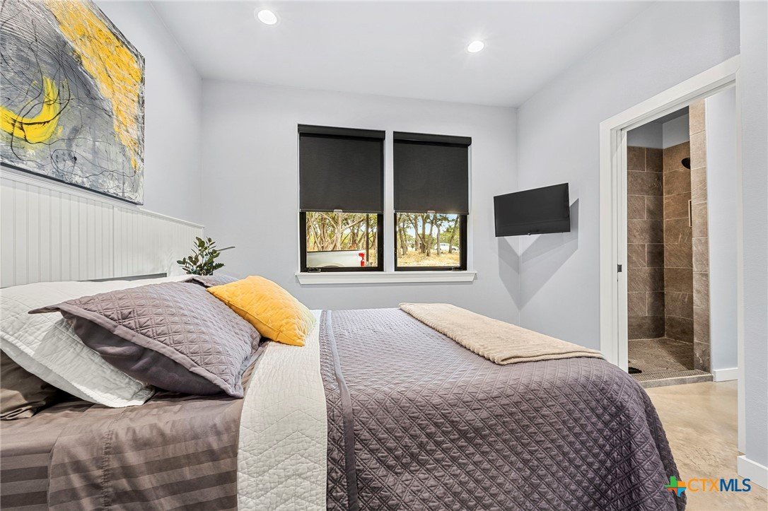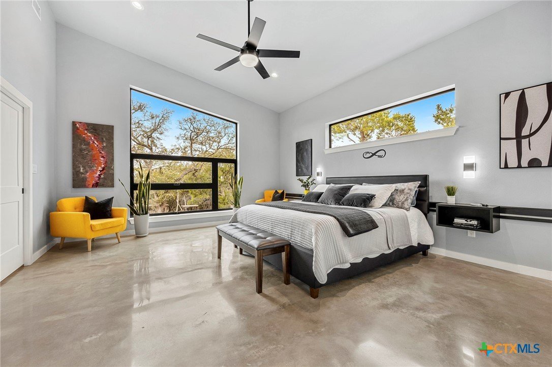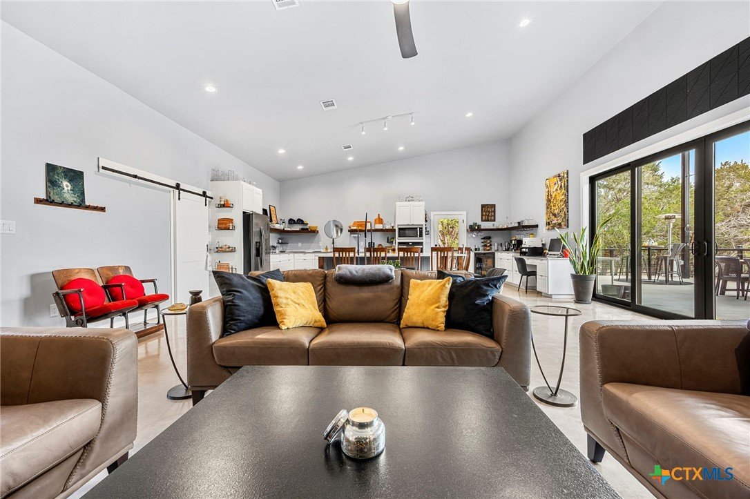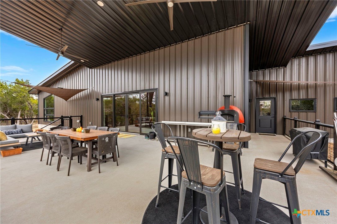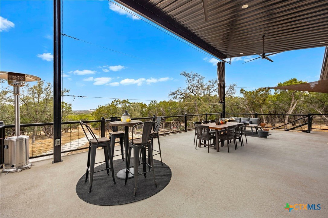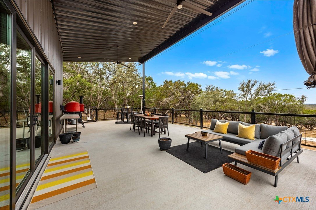 Welcome to your private Hill Country retreat. Nestled on 7.5 acres—approximately 5 beautifully wooded acres and 2.5 acres of pasture — this prime secluded property offers the perfect blend of privacy, and breathtaking ridge views. The property backs up to a 21,000-acre Tributary Sporting Club, where exotic wildlife can often be seen roaming along the fence line—creating a rare and peaceful backdrop. Inside, you’ll find an impressive open-concept dining and living space designed for gathering and entertaining. This flows seamlessly into a stunning covered outdoor living and dining area—perfect for hosting or simply enjoying quiet evenings under the Texas sky. The oversized primary suite is a true retreat you’ll fall in love with. Guests will feel right at home in the welcoming second bedroom and bath, while the spacious third flex room offers endless possibilities as an office, creative studio, or additional bedroom. Located just minutes from downtown Burnet and Lampasas for shopping and dining, and close to wineries, parks, and all the best Hill Country activities. All the work is done and priced to sell—move in and start living the lifestyle you’ve been dreaming of. With room for chickens, a few goats, and even a cow, this property offers space to create the life you want. Highlights: Move-in ready, all the hard building work is done, whole house Generac Generator, Low maintenance metal exterior, perfect property for gatherings and entertaining, polished concrete floors throughout, whole house water filtration system and water softener, very quiet cul de sac, very private location, spectacular view, 7.5 acres with minimal care, wildlife exemption available, chip/seal driveway, gorgeous primary suite, huge pantry, fenced raised bed garden, gorgeous custom windows, several large items that are negotiable, and so much more.