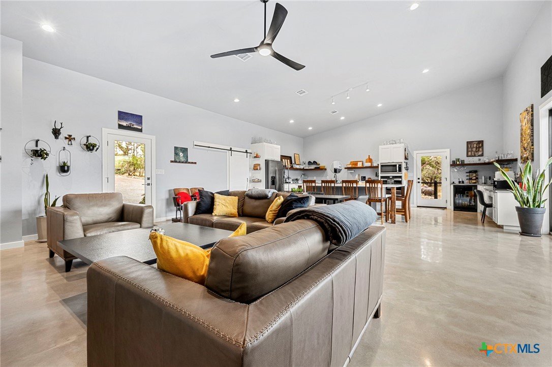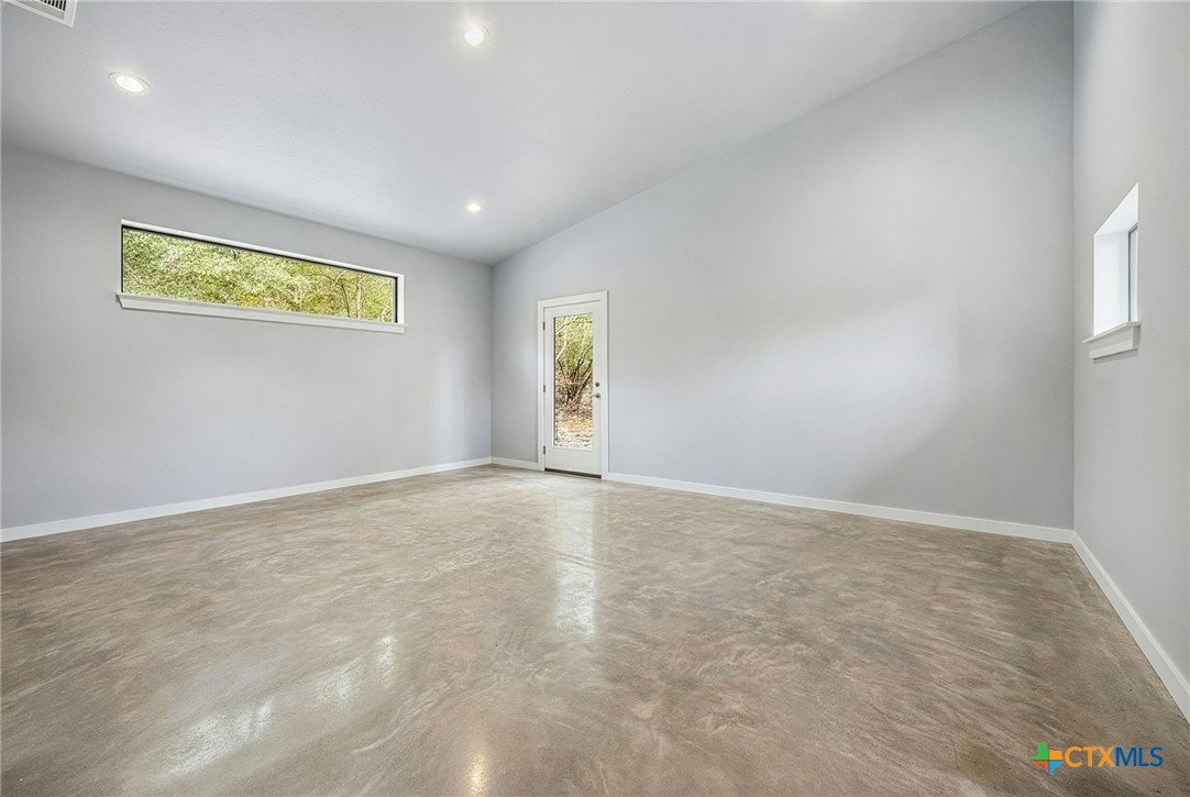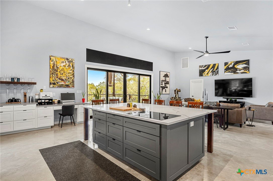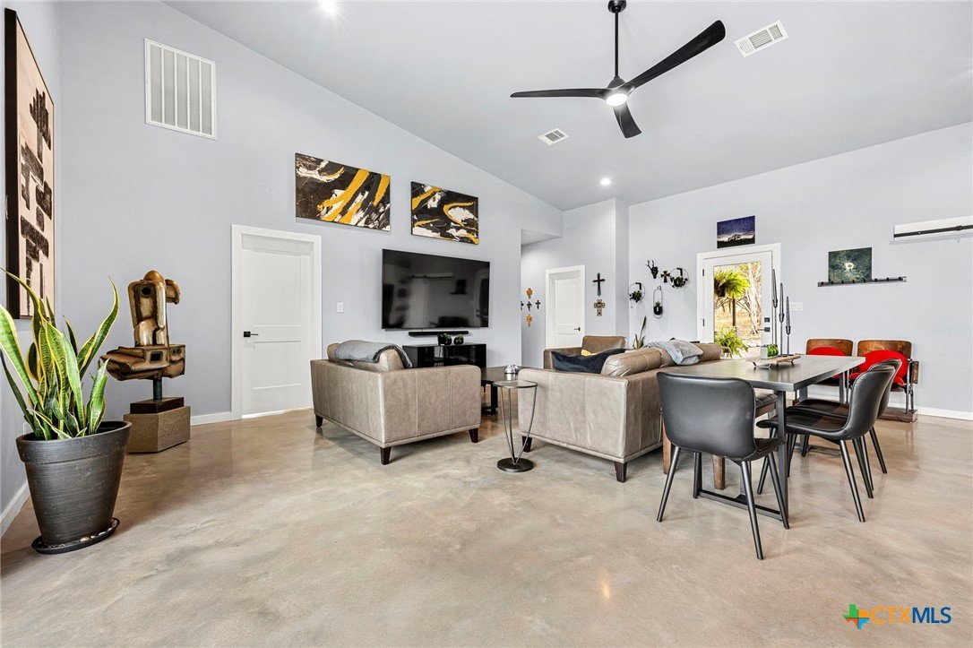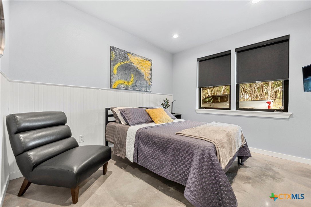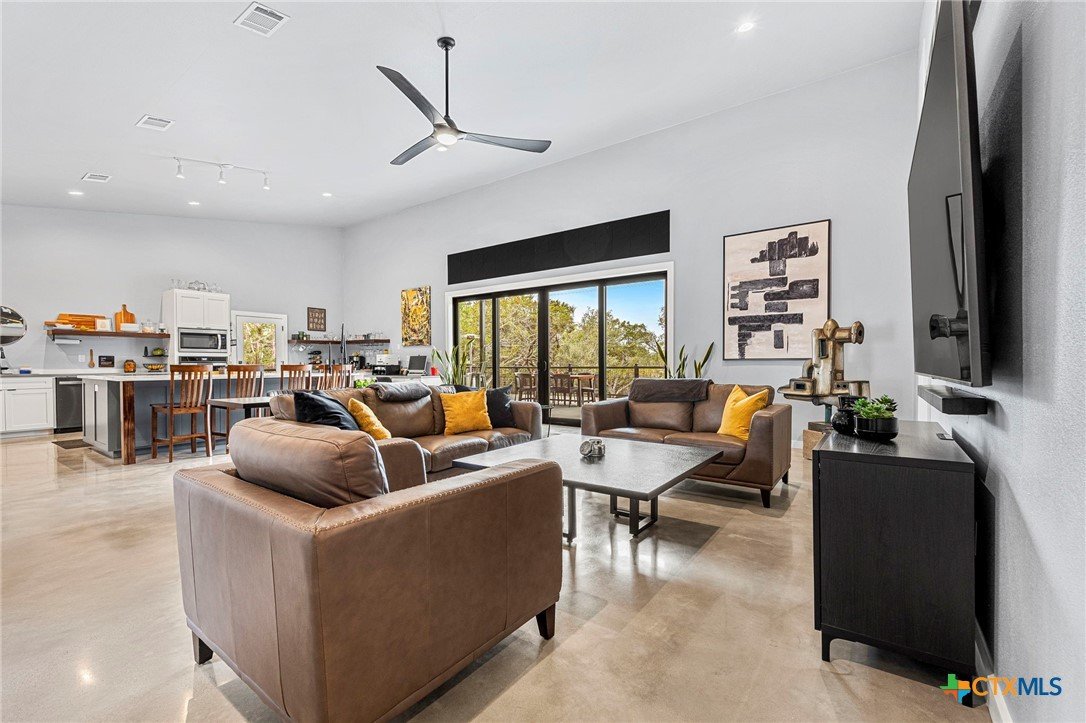 Welcome to your private Hill Country retreat. Nestled on 7.5 acres—approximately 5 beautifully wooded acres and 2.5 acres of pasture — this prime secluded property offers the perfect blend of privacy, and breathtaking ridge views. The property backs up to a 21,000-acre Tributary Sporting Club, where exotic wildlife can often be seen roaming along the fence line—creating a rare and peaceful backdrop. Inside, you’ll find an impressive open-concept dining and living space designed for gathering and entertaining. This flows seamlessly into a stunning covered outdoor living and dining area—perfect for hosting or simply enjoying quiet evenings under the Texas sky. The oversized primary suite is a true retreat you’ll fall in love with. Guests will feel right at home in the welcoming second bedroom and bath, while the spacious third flex room offers endless possibilities as an office, creative studio, or additional bedroom. Located just minutes from downtown Burnet and Lampasas for shopping and dining, and close to wineries, parks, and all the best Hill Country activities. All the work is done and priced to sell—move in and start living the lifestyle you’ve been dreaming of. With room for chickens, a few goats, and even a cow, this property offers space to create the life you want. Highlights: Move-in ready, all the hard building work is done, whole house Generac Generator, Low maintenance metal exterior, perfect property for gatherings and entertaining, polished concrete floors throughout, whole house water filtration system and water softener, very quiet cul de sac, very private location, spectacular view, 7.5 acres with minimal care, wildlife exemption available, chip/seal driveway, gorgeous primary suite, huge pantry, fenced raised bed garden, gorgeous custom windows, several large items that are negotiable, and so much more.