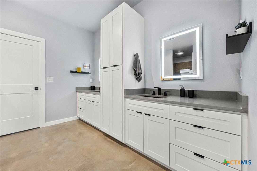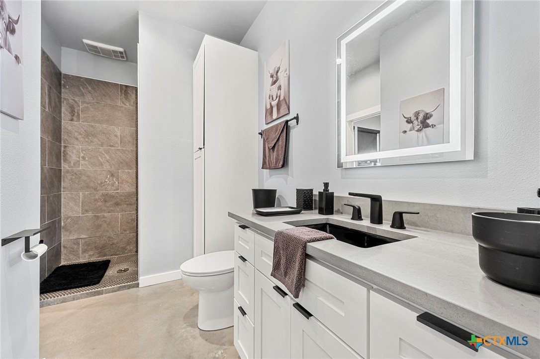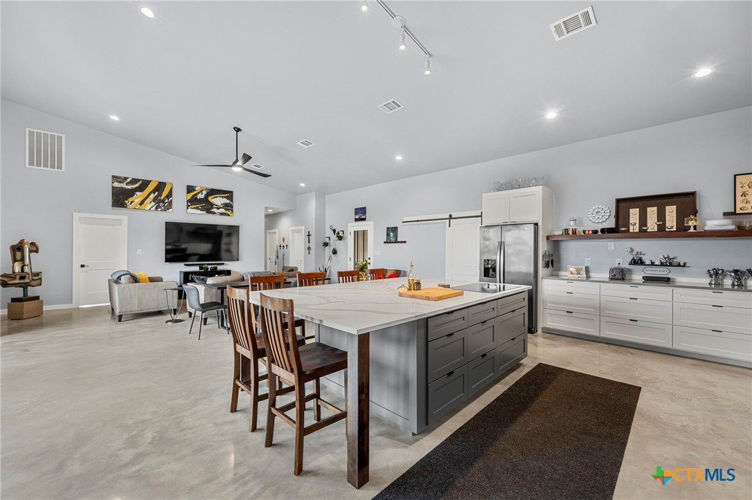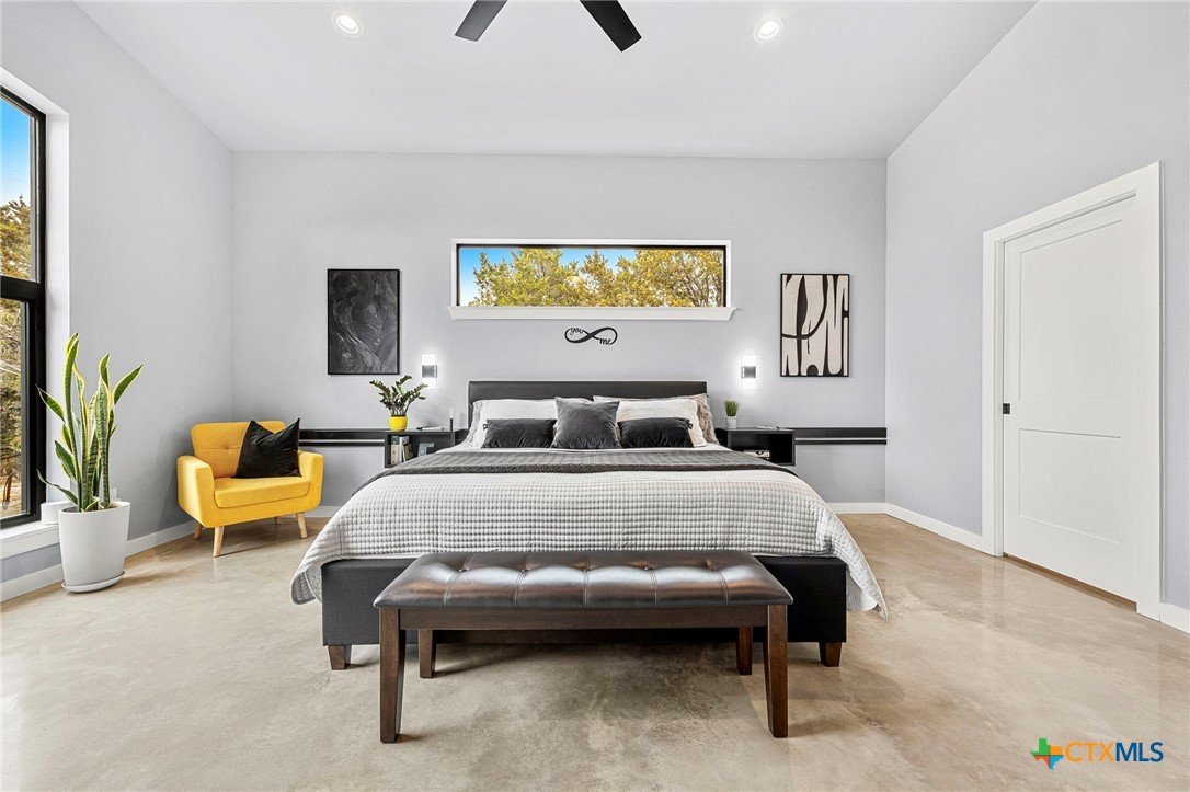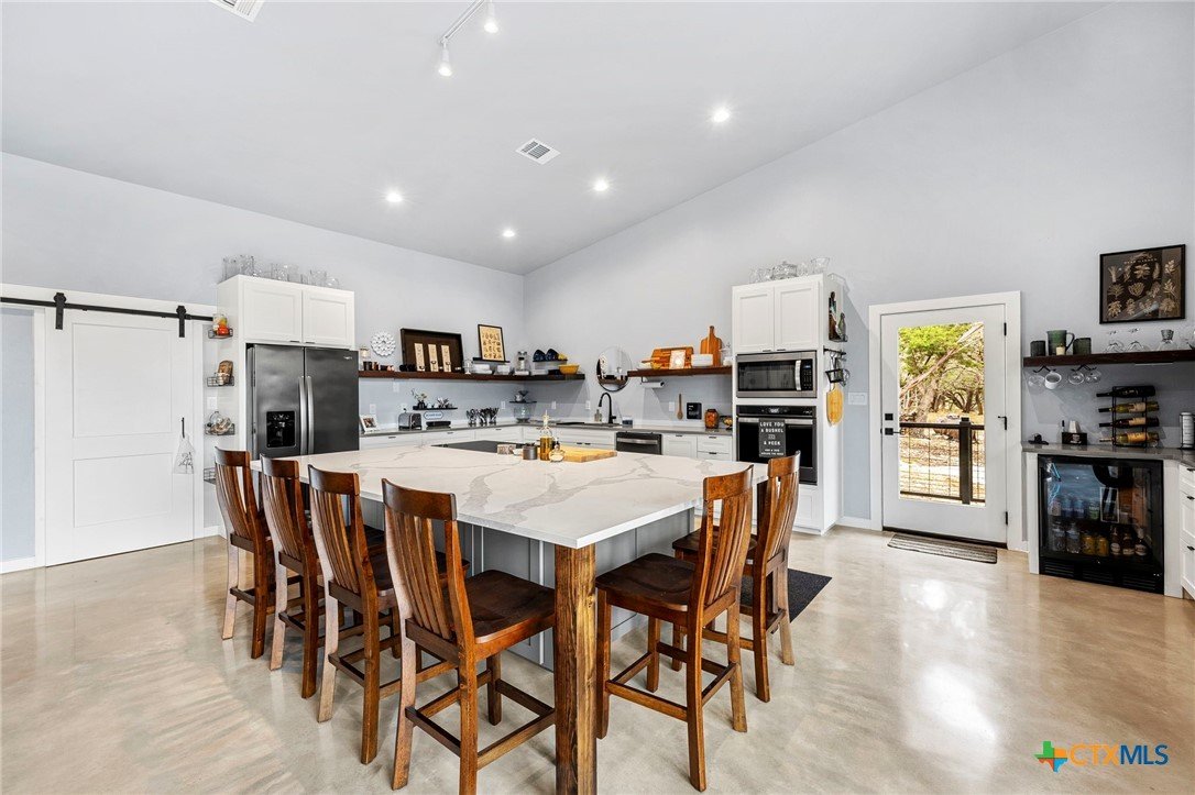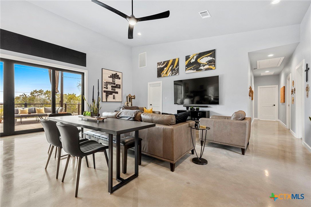 Welcome to your private Hill Country retreat. Nestled on 7.5 acres—approximately 5 beautifully wooded acres and 2.5 acres of pasture — this prime secluded property offers the perfect blend of privacy, and breathtaking ridge views. The property backs up to a 21,000-acre Tributary Sporting Club, where exotic wildlife can often be seen roaming along the fence line—creating a rare and peaceful backdrop. Inside, you’ll find an impressive open-concept dining and living space designed for gathering and entertaining. This flows seamlessly into a stunning covered outdoor living and dining area—perfect for hosting or simply enjoying quiet evenings under the Texas sky. The oversized primary suite is a true retreat you’ll fall in love with. Guests will feel right at home in the welcoming second bedroom and bath, while the spacious third flex room offers endless possibilities as an office, creative studio, or additional bedroom. Located just minutes from downtown Burnet and Lampasas for shopping and dining, and close to wineries, parks, and all the best Hill Country activities. All the work is done and priced to sell—move in and start living the lifestyle you’ve been dreaming of. With room for chickens, a few goats, and even a cow, this property offers space to create the life you want. Highlights: Move-in ready, all the hard building work is done, whole house Generac Generator, Low maintenance metal exterior, perfect property for gatherings and entertaining, polished concrete floors throughout, whole house water filtration system and water softener, very quiet cul de sac, very private location, spectacular view, 7.5 acres with minimal care, wildlife exemption available, chip/seal driveway, gorgeous primary suite, huge pantry, fenced raised bed garden, gorgeous custom windows, several large items that are negotiable, and so much more.