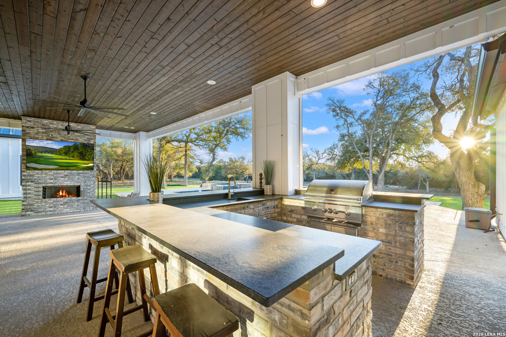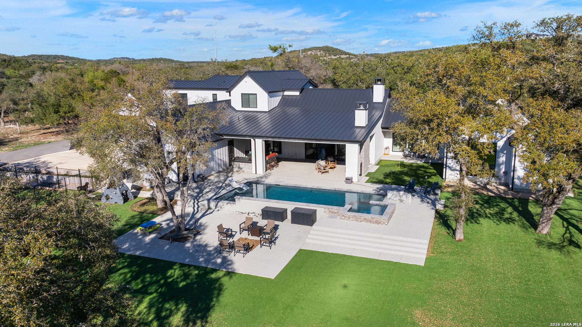 Built by renowned custom builder Keith Wing Custom Homes, this exceptional estate showcases luxury living at its finest. Situated on 25+ private, wooded acres, this nearly new custom home offers the perfect balance of seclusion and convenience, just minutes from town. Thoughtfully designed with high-end finishes and impeccable craftsmanship, the home features a highly desirable layout with a primary suite and guest bedroom on the main level, along with a private study. The luxurious primary suite is a true retreat, complete with a coffee bar, dual walk-in closets, private sauna, separate vanities, and its own dedicated utility room. The heart of the home is a gourmet chef's kitchen equipped with premium Cafe appliances, including a built-in, Sub-Zero-style refrigerator, double ovens, six-burner gas cooktop, and beverage refrigerator-perfect for both everyday living and entertaining. Upstairs, you'll find three spacious bedrooms, a secondary game room, and an additional utility area, offering flexibility and comfort for family or guests. With two game rooms total, this home is ideal for entertaining and recreation. Car enthusiasts and outdoor lovers will appreciate the two oversized 2-car garages with extensive parking, including ample space for a boat, RV, or multiple vehicles. Step outside to your own private resort featuring an expansive covered patio, outdoor fireplace with TV, fully equipped outdoor kitchen, custom pool and spa, turf sports area, and endless wooded acreage for privacy and exploration. This is a rare opportunity to own a luxury custom home on acreage with modern amenities, privacy, and close proximity to town-truly the best of both worlds.