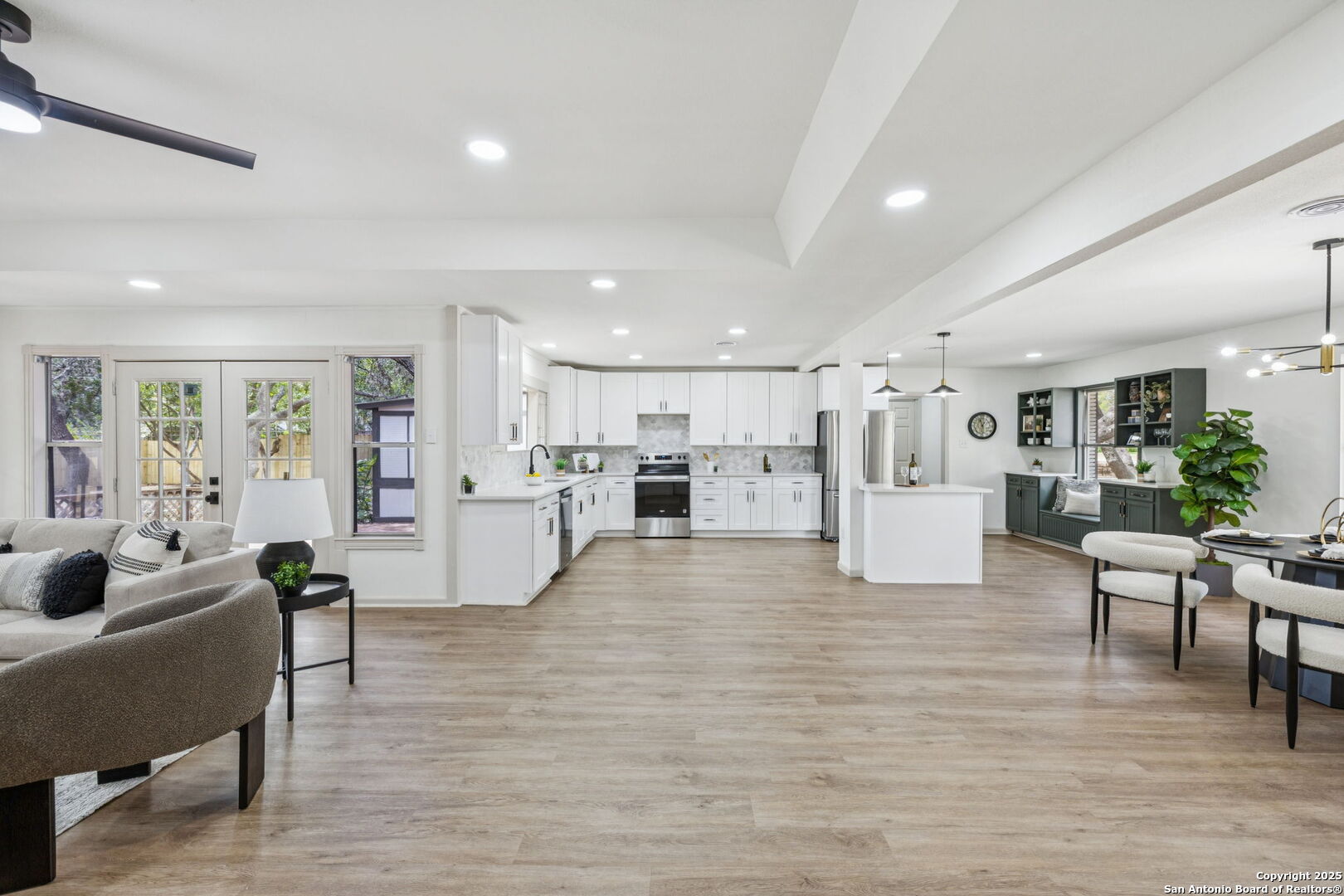 Fully renovated home in highly desirable Hollywood Park on a nearly half-acre lot with mature oak trees. This open-concept property features brand-new luxury vinyl plank flooring, new carpet, granite countertops, custom cabinets, and a wood-burning fireplace. Enjoy outdoor living with a spacious deck off the living room, perfect for entertaining. Additional upgrades include a new septic system, full privacy fencing, and a roof less than 5 years old. Property also includes a carport and extended driveway. No HOA, convenient to top-rated schools, shopping, dining, and major highways. Move-in ready with modern updates throughout.