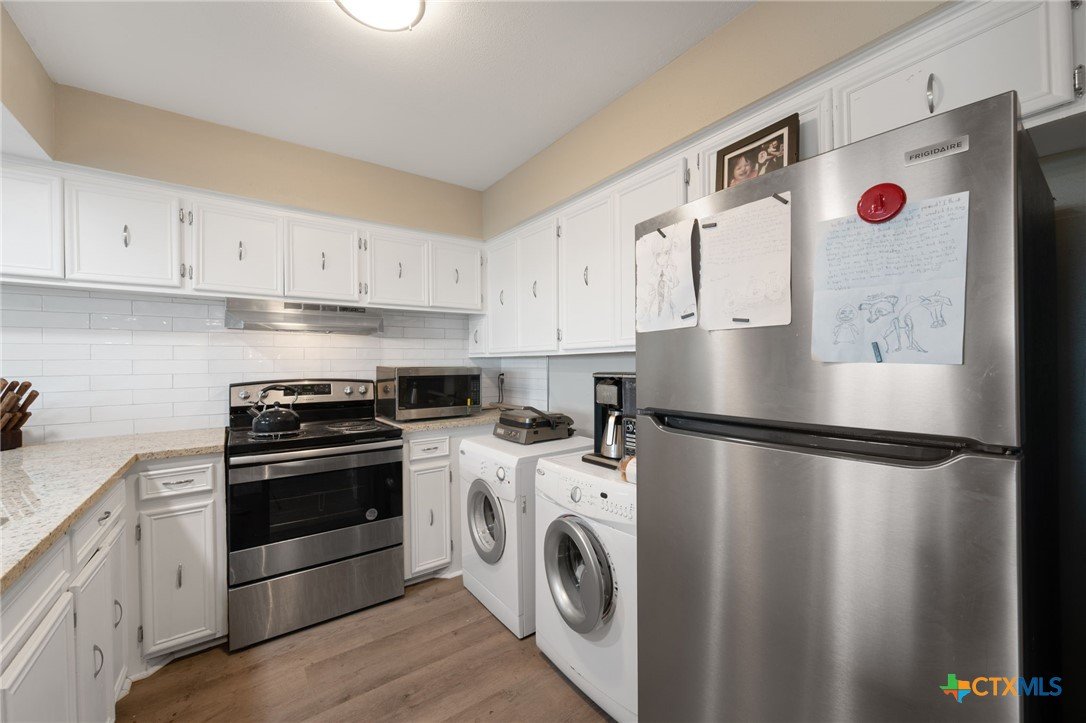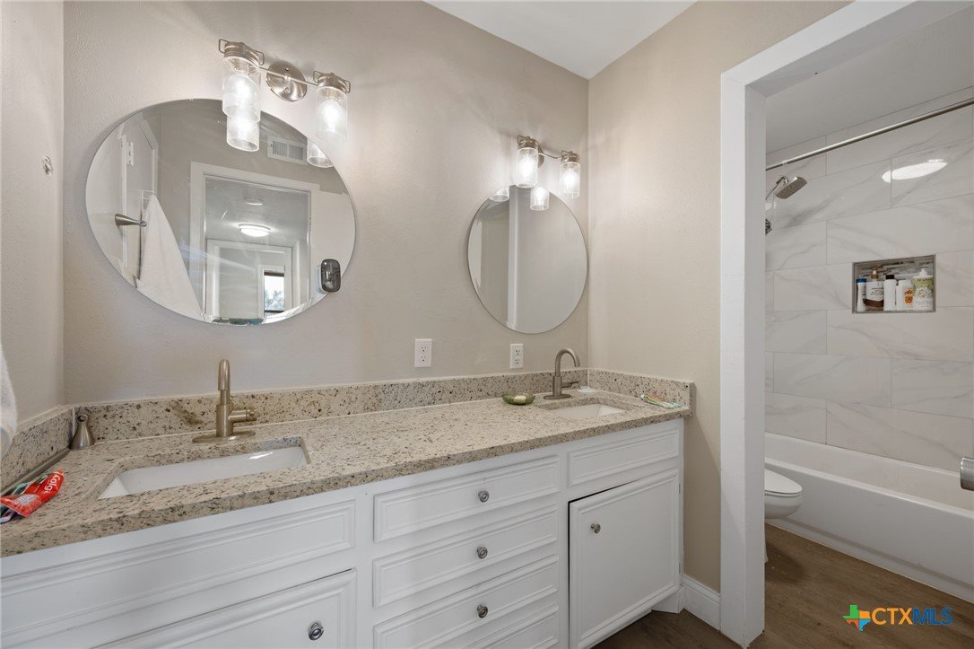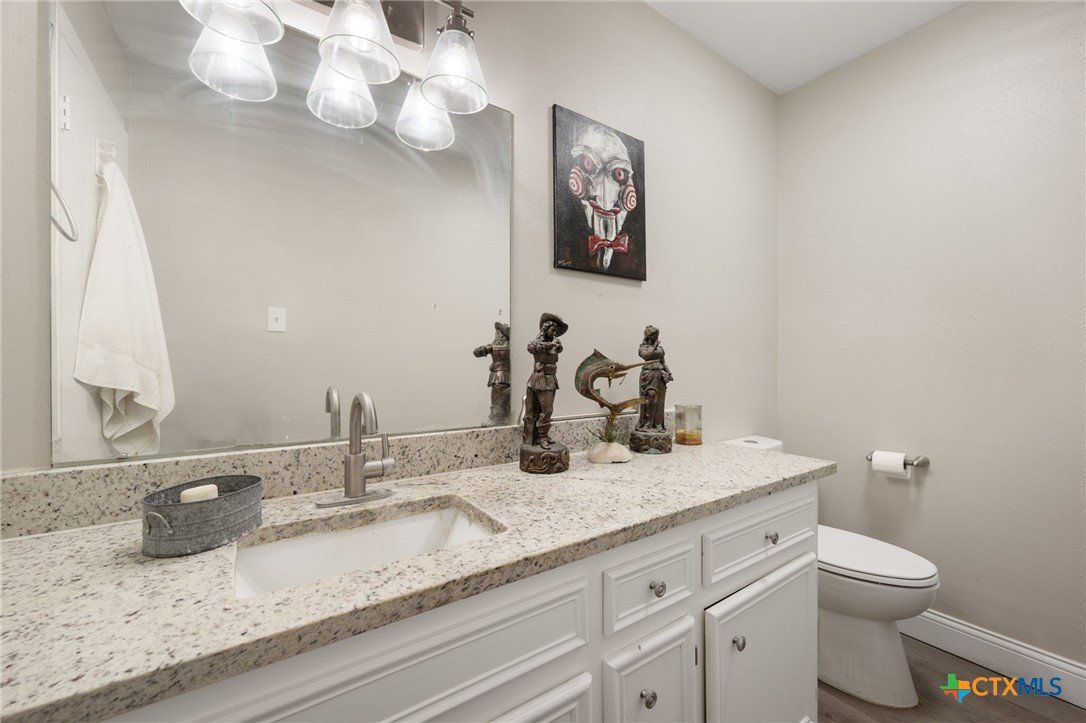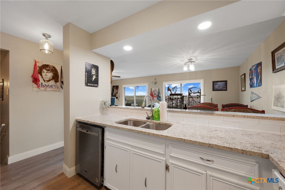Experience breathtaking, million-dollar views of Lake Travis from this beautifully updated 2-bedroom, 2-bath condo in the heart of Lago Vista—offered at a remarkable value. This stylish lakeside retreat features an open-concept layout with panoramic water views from every room and the private patio. Recently renovated, the home boasts a brand-new HVAC system, luxury vinyl plank flooring, plush new carpet, and a stunning kitchen with granite countertops and stainless steel appliances. The spacious bath has been fully modernized with sleek tile and contemporary finishes. Both bedrooms are located downstairs with large closets and oversized windows that frame the sparkling lake, now enhanced with brand-new window blinds for added comfort and privacy. A newly installed water heater and updated plumbing offer peace of mind and modern convenience. The seamless flow between the kitchen and living room makes it perfect for entertaining or simply soaking in the tranquil surroundings. HOA dues include water, trash, sewer, exterior insurance, and maintenance for low-hassle living. Lago Vista residents enjoy access to incredible amenities like 9 lakefront parks, boat ramps, a pool, gym, playgrounds, and disc golf. Whether you're seeking a weekend escape or full-time lake living, this is a rare opportunity you won’t want to miss—back on the market with unforgettable views.