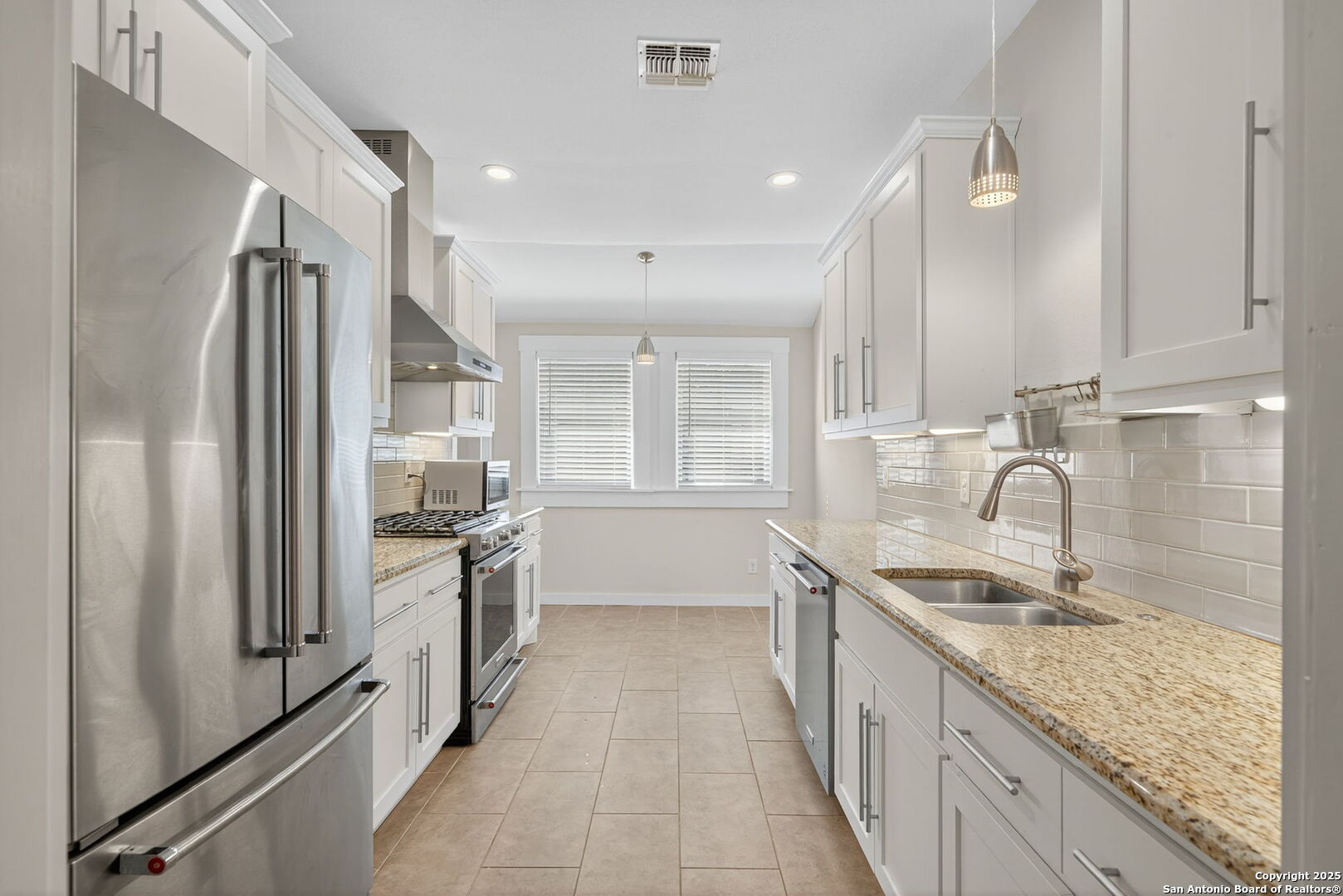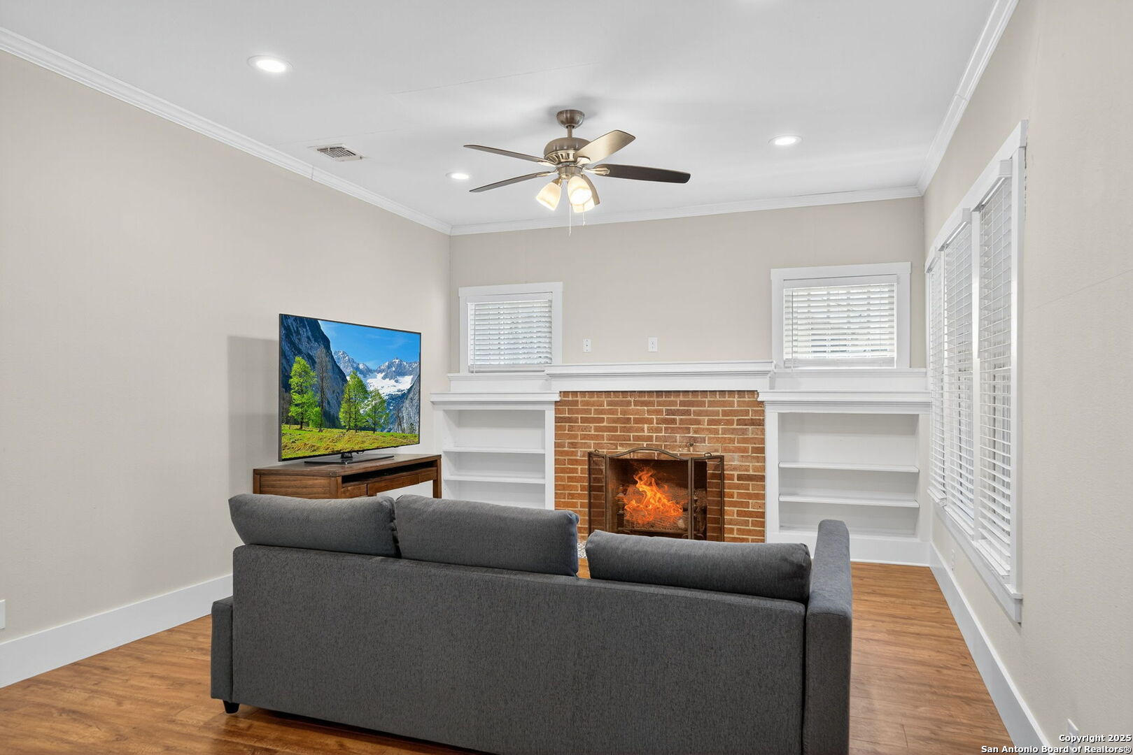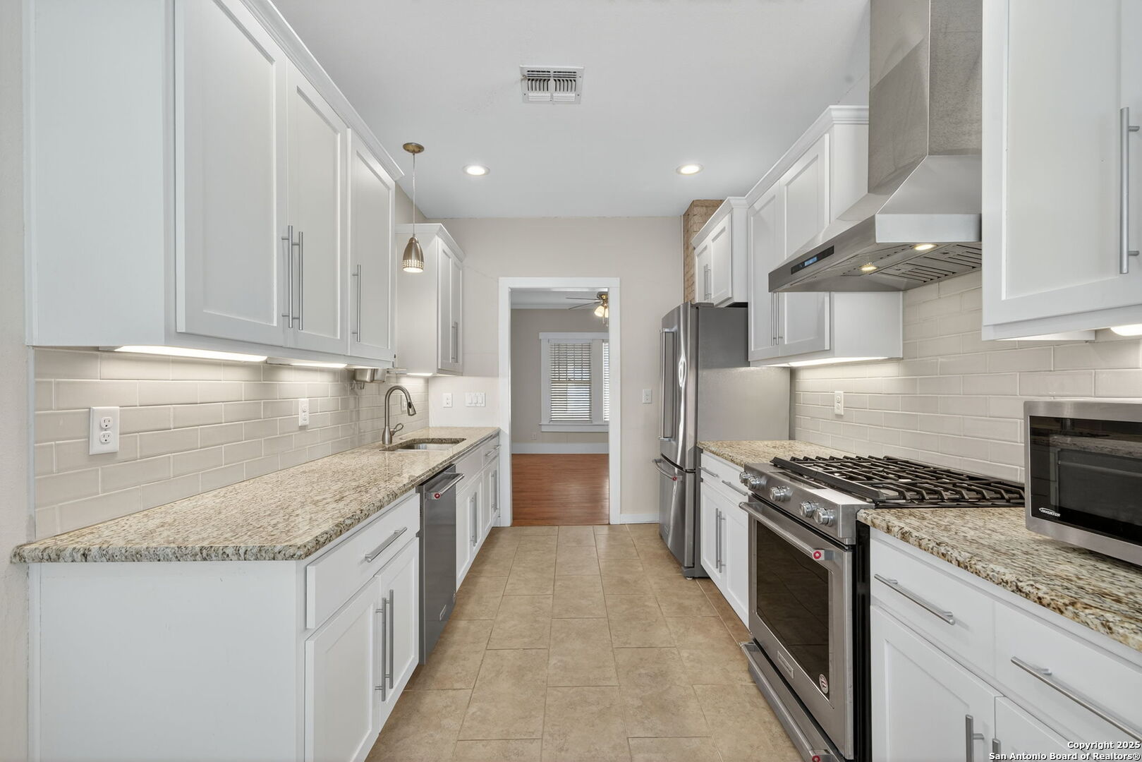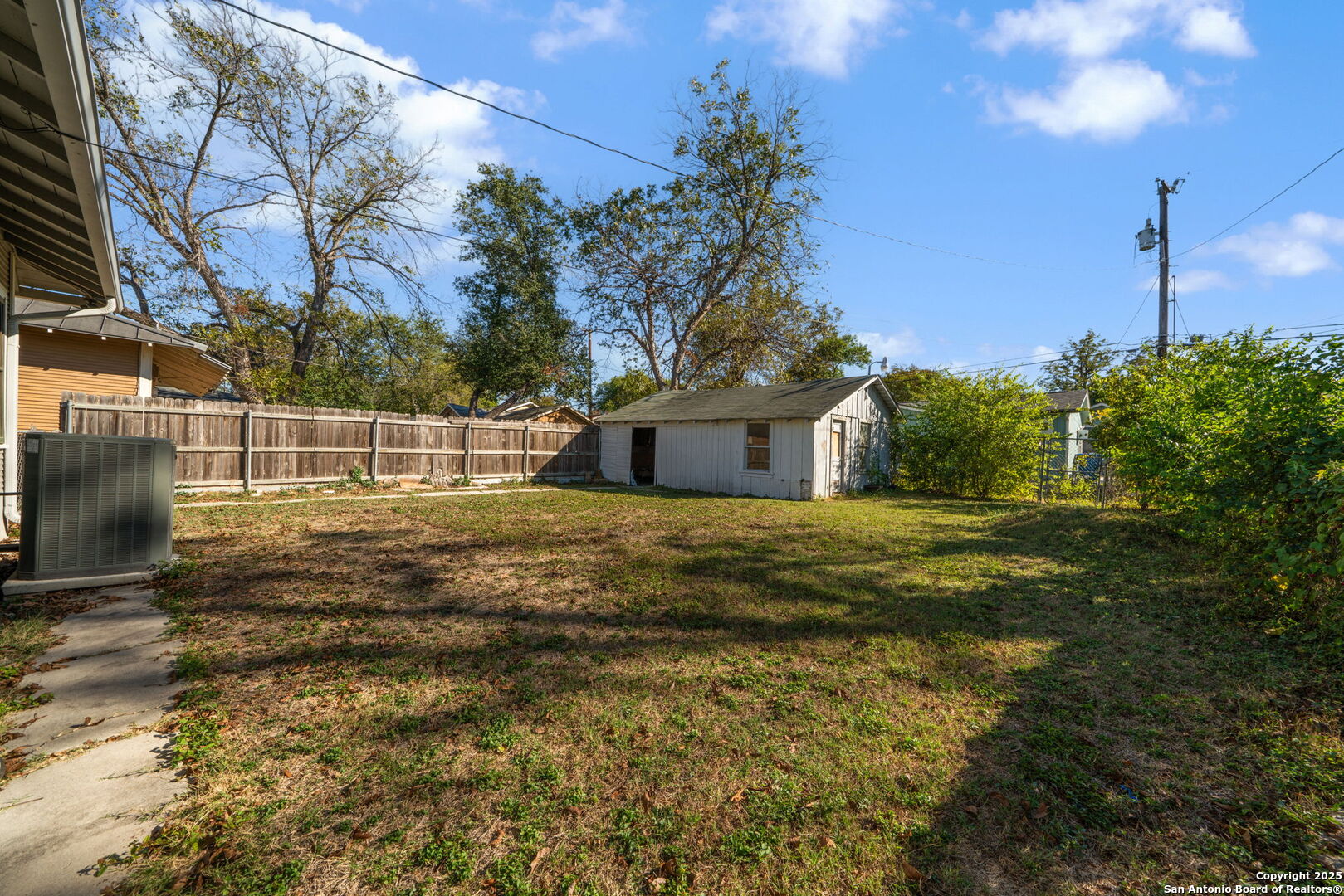 Love where you live in this beautifully updated 2-bedroom, 1-bath home featuring stunning hardwood floors and elegant finishes throughout. The gourmet kitchen offers stainless steel appliances, a gas range, and granite countertops-perfect for any home chef. Enjoy the convenience of a full laundry room complete with washer, dryer, and sink. Recess lighting and ceiling fans in each bedroom add warmth and character to every room. The spacious backyard provides mature shade trees and a storage shed, ideal for outdoor living. Located just minutes from downtown nightlife, shopping, dining, museums, and The San Antonio Zoo-this home truly combines comfort, charm, and convenience.