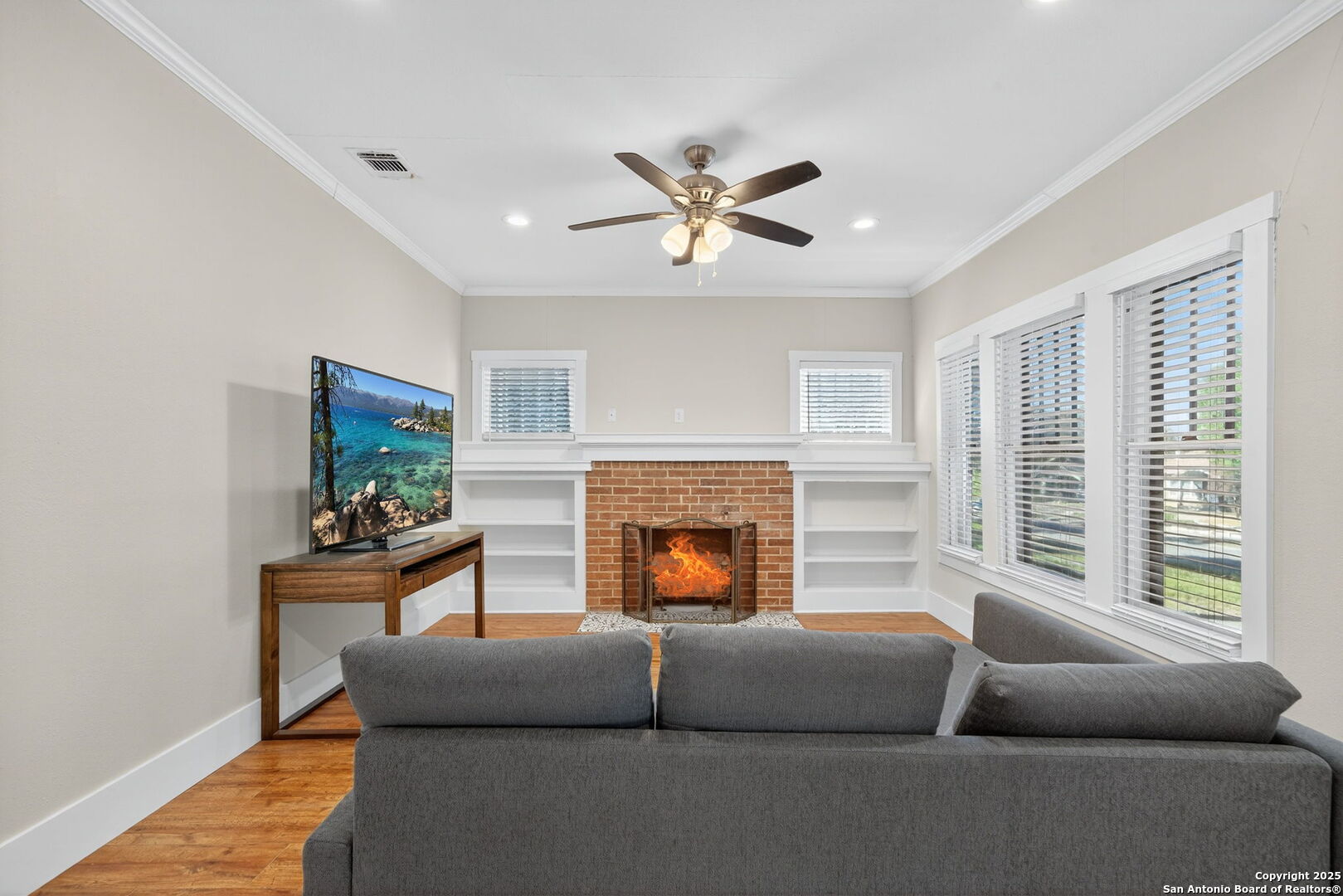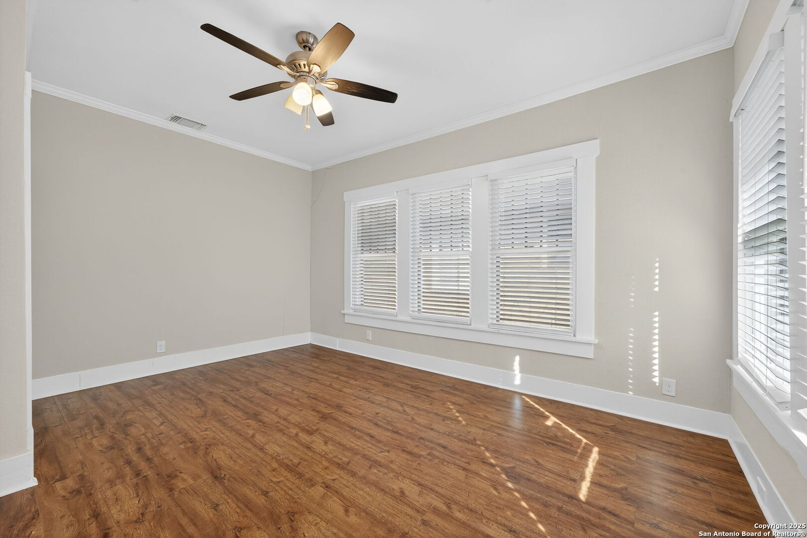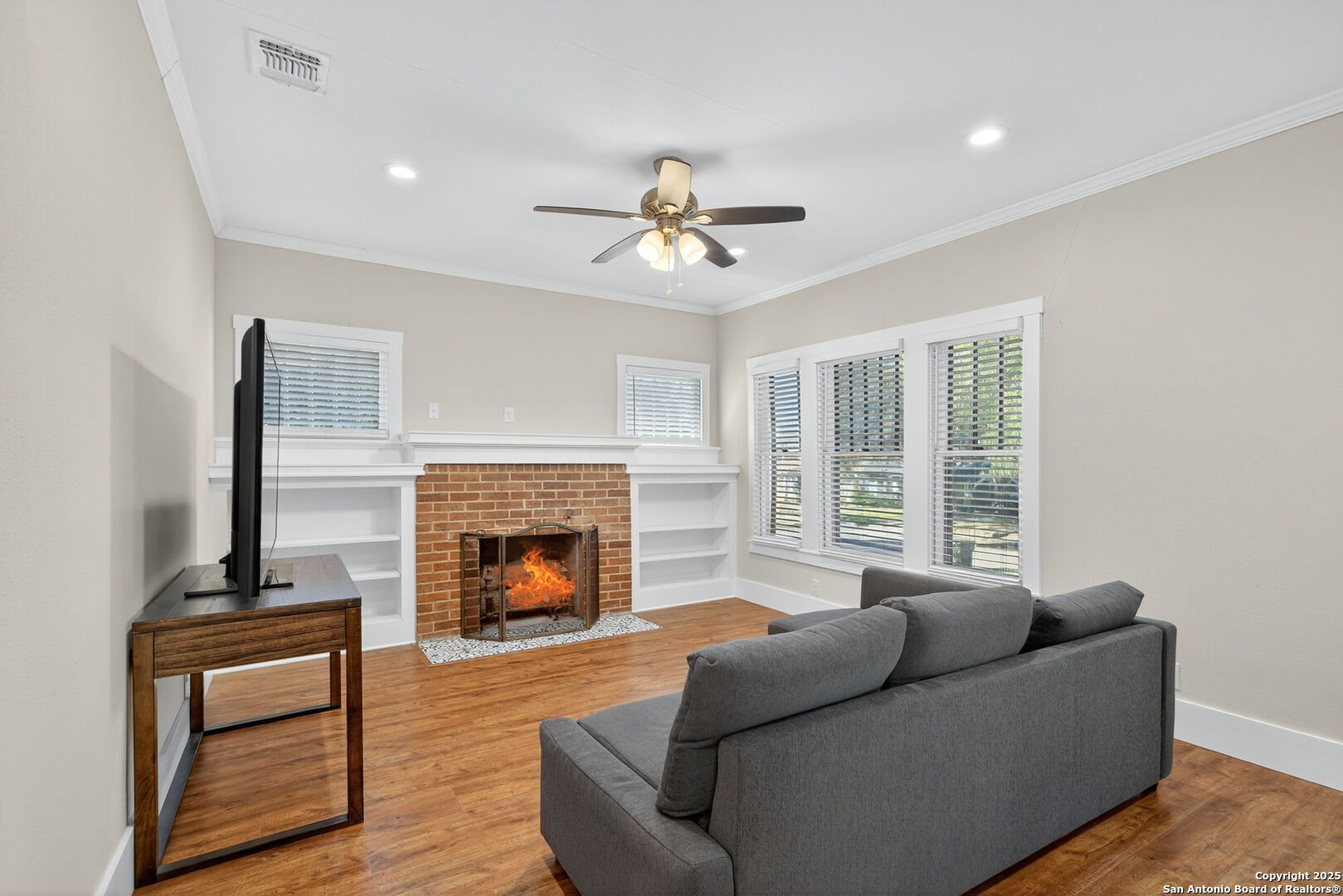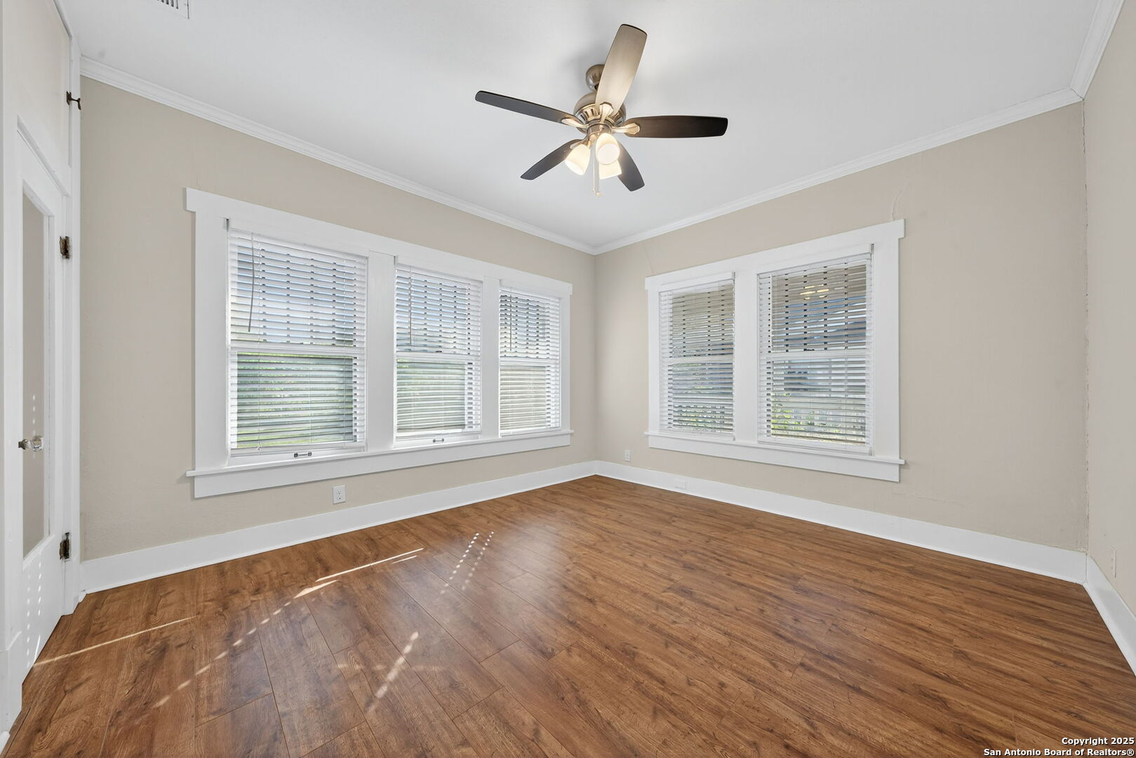 Love where you live in this beautifully updated 2-bedroom, 1-bath home featuring stunning hardwood floors and elegant finishes throughout. The gourmet kitchen offers stainless steel appliances, a gas range, and granite countertops-perfect for any home chef. Enjoy the convenience of a full laundry room complete with washer, dryer, and sink. Recess lighting and ceiling fans in each bedroom add warmth and character to every room. The spacious backyard provides mature shade trees and a storage shed, ideal for outdoor living. Located just minutes from downtown nightlife, shopping, dining, museums, and The San Antonio Zoo-this home truly combines comfort, charm, and convenience.