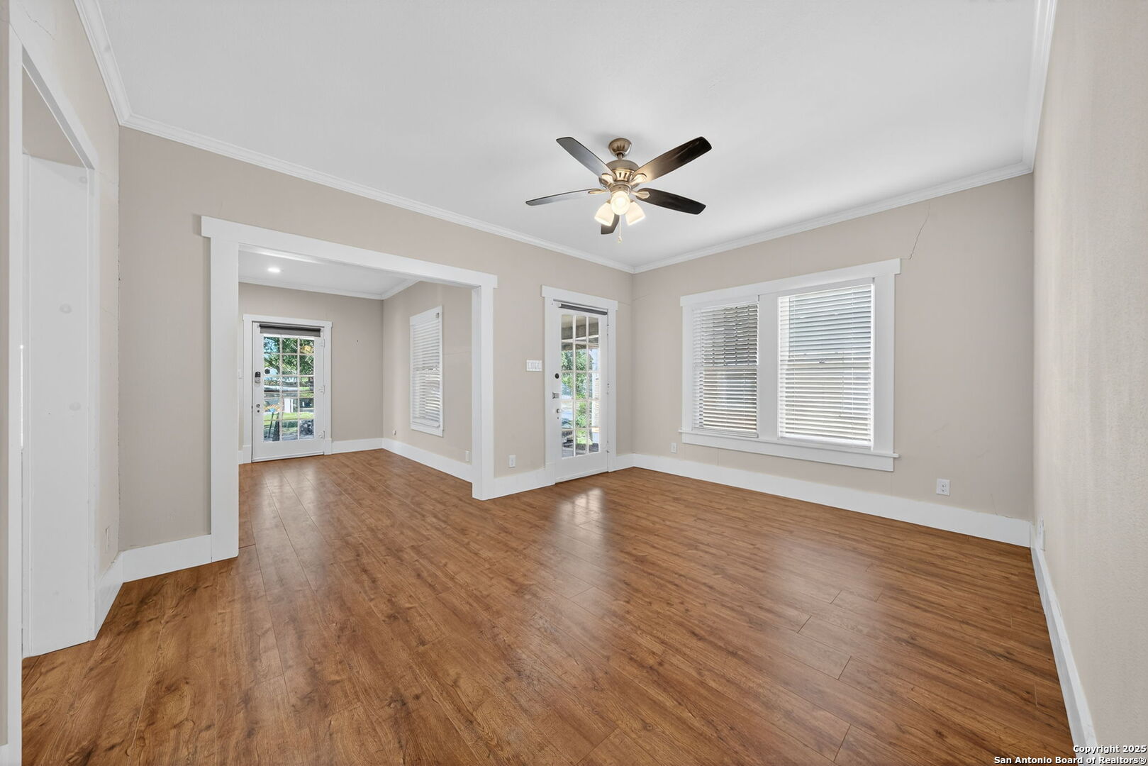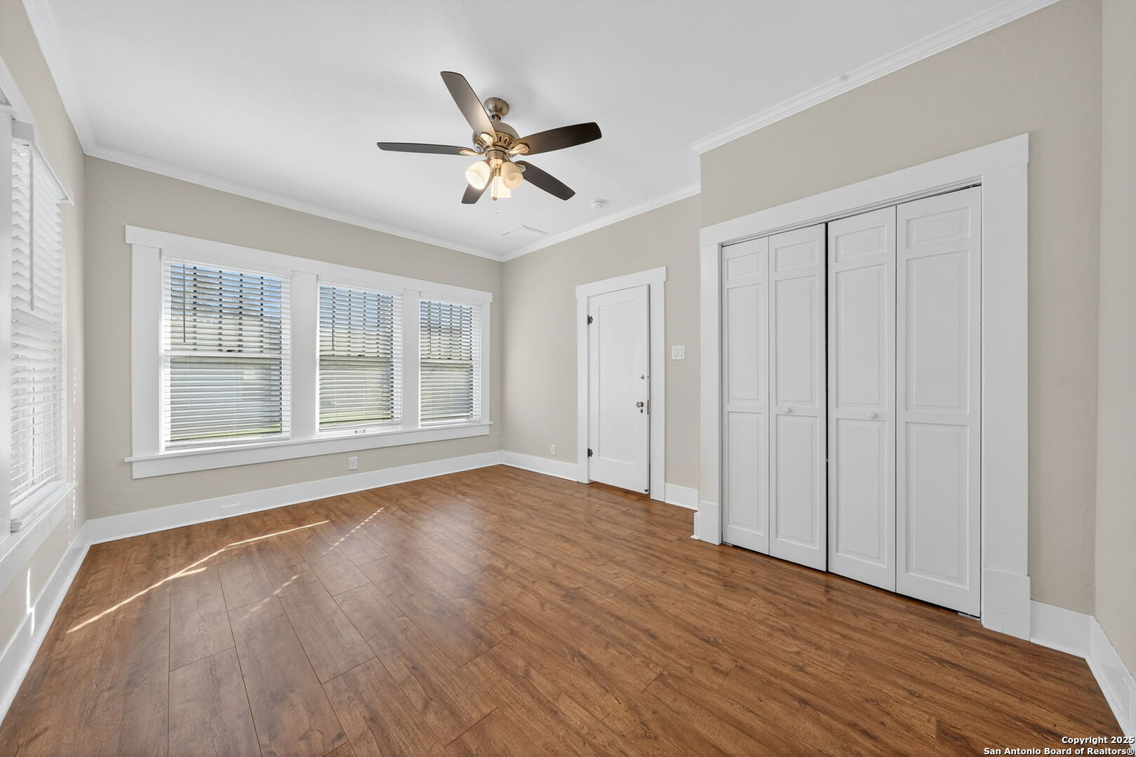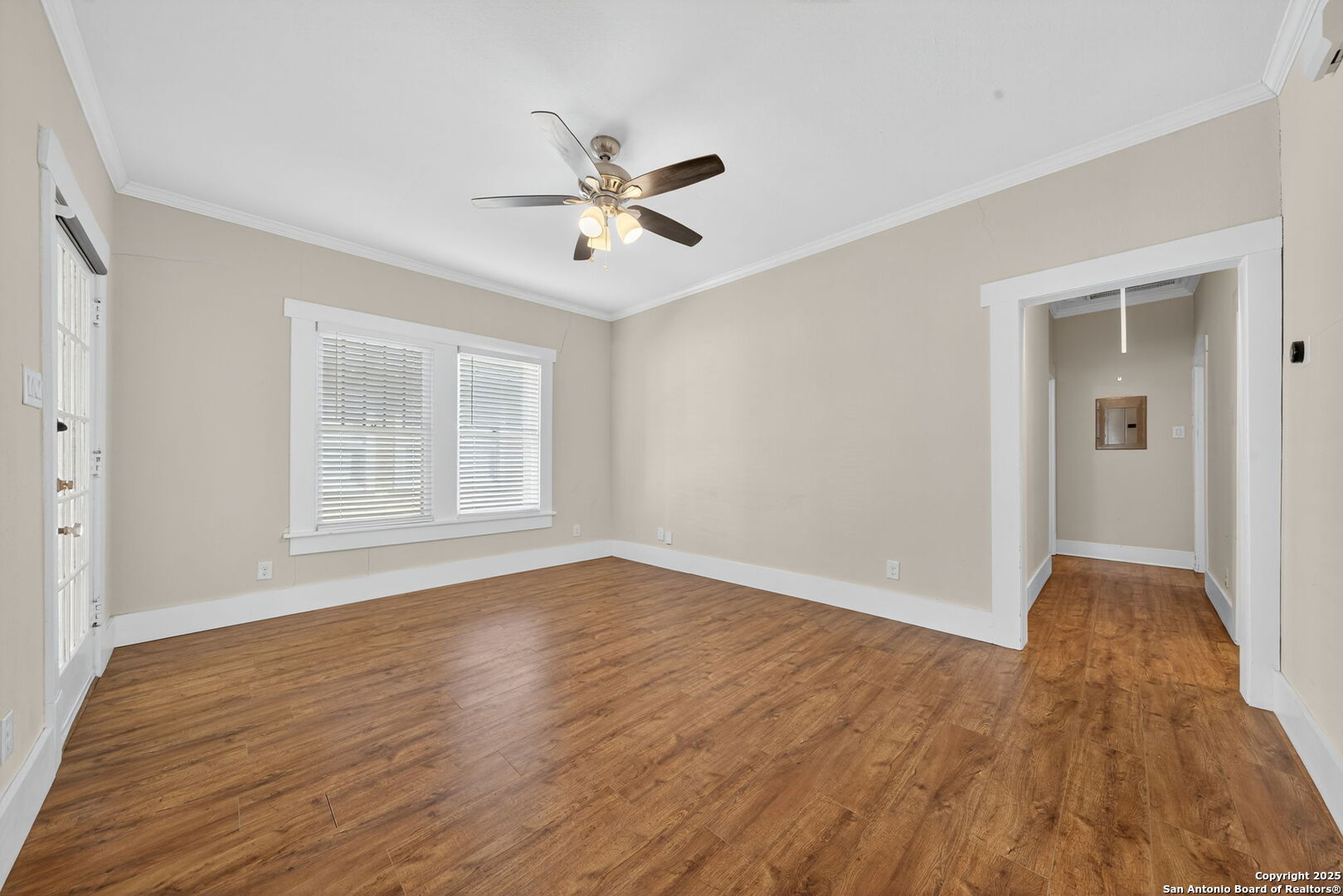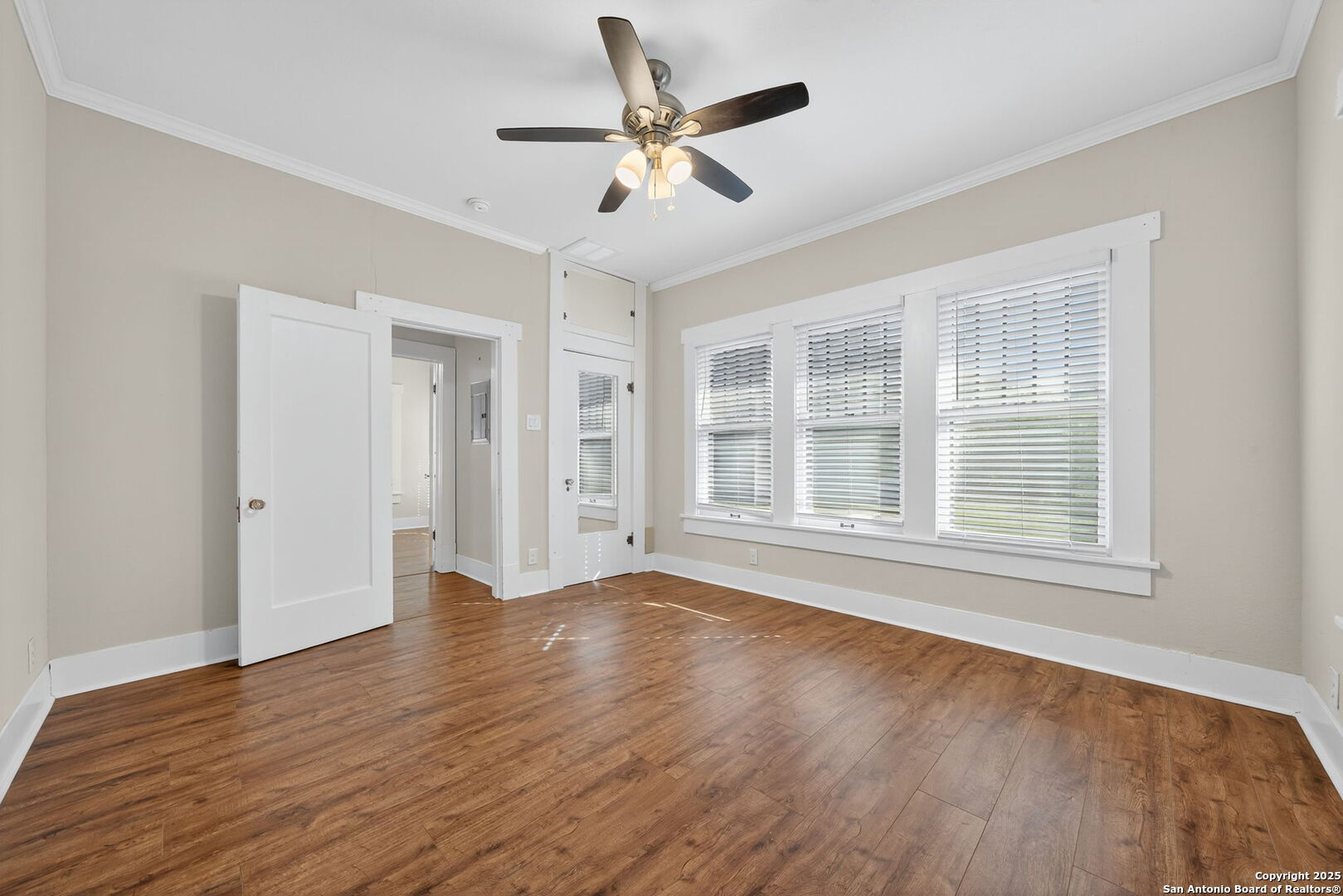 Love where you live in this beautifully updated 2-bedroom, 1-bath home featuring stunning hardwood floors and elegant finishes throughout. The gourmet kitchen offers stainless steel appliances, a gas range, and granite countertops-perfect for any home chef. Enjoy the convenience of a full laundry room complete with washer, dryer, and sink. Recess lighting and ceiling fans in each bedroom add warmth and character to every room. The spacious backyard provides mature shade trees and a storage shed, ideal for outdoor living. Located just minutes from downtown nightlife, shopping, dining, museums, and The San Antonio Zoo-this home truly combines comfort, charm, and convenience.