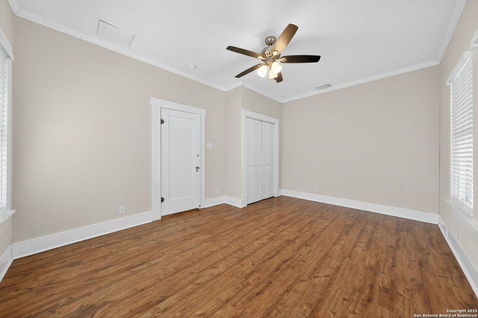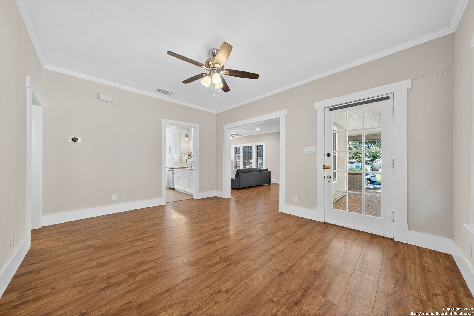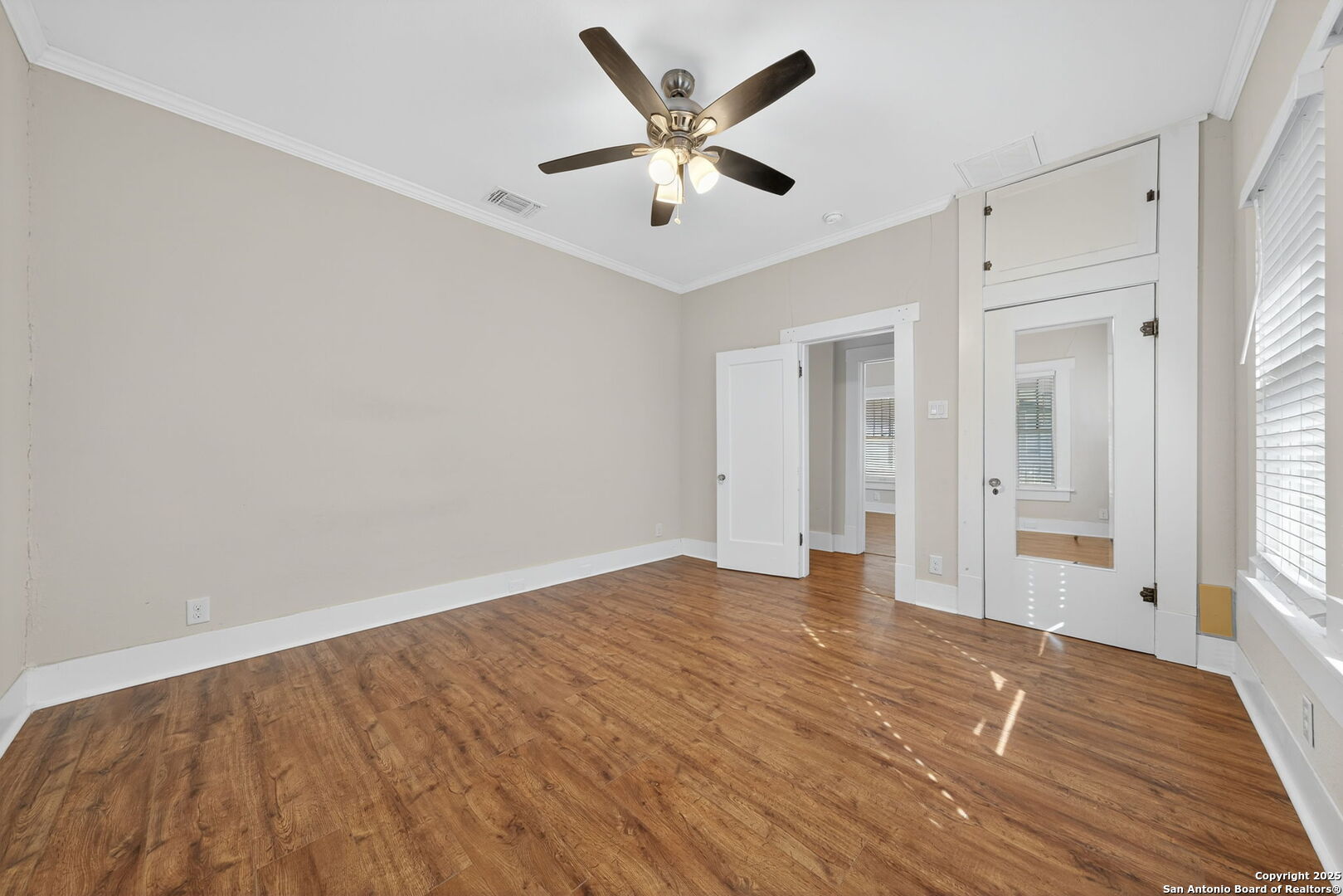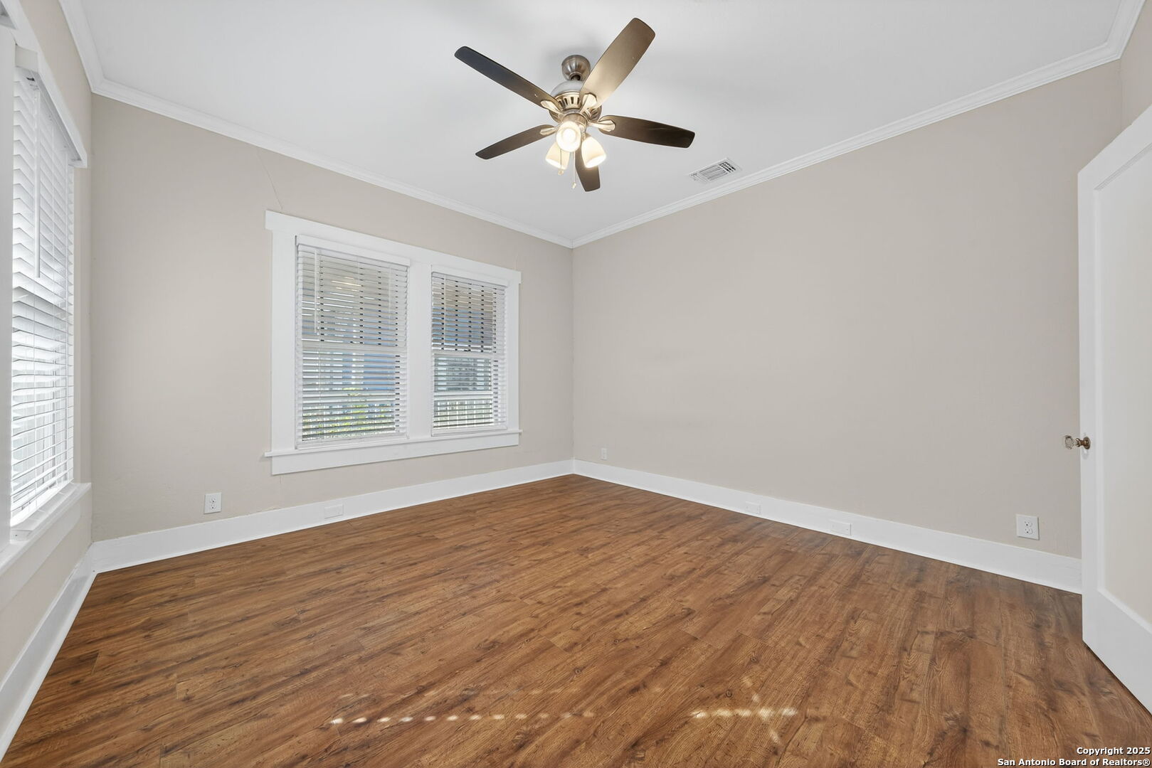 Love where you live in this beautifully updated 2-bedroom, 1-bath home featuring stunning hardwood floors and elegant finishes throughout. The gourmet kitchen offers stainless steel appliances, a gas range, and granite countertops-perfect for any home chef. Enjoy the convenience of a full laundry room complete with washer, dryer, and sink. Recess lighting and ceiling fans in each bedroom add warmth and character to every room. The spacious backyard provides mature shade trees and a storage shed, ideal for outdoor living. Located just minutes from downtown nightlife, shopping, dining, museums, and The San Antonio Zoo-this home truly combines comfort, charm, and convenience.