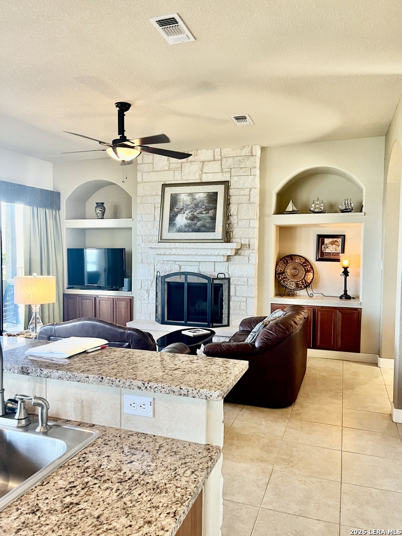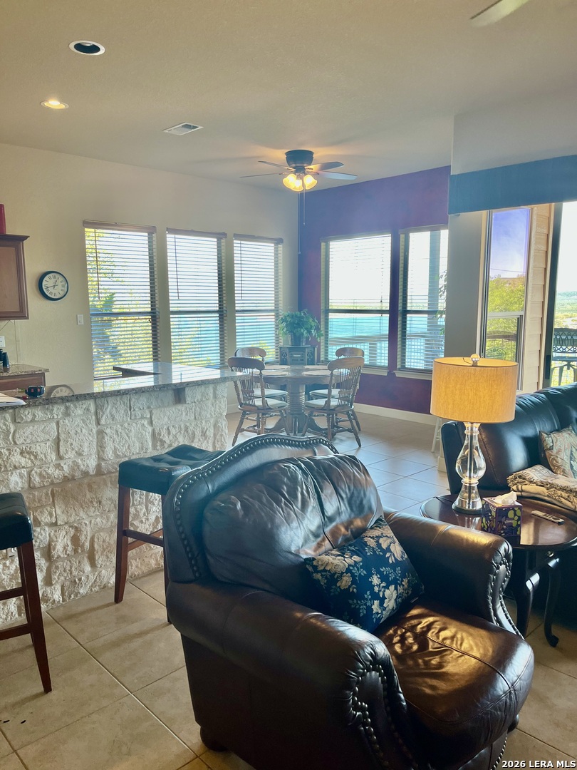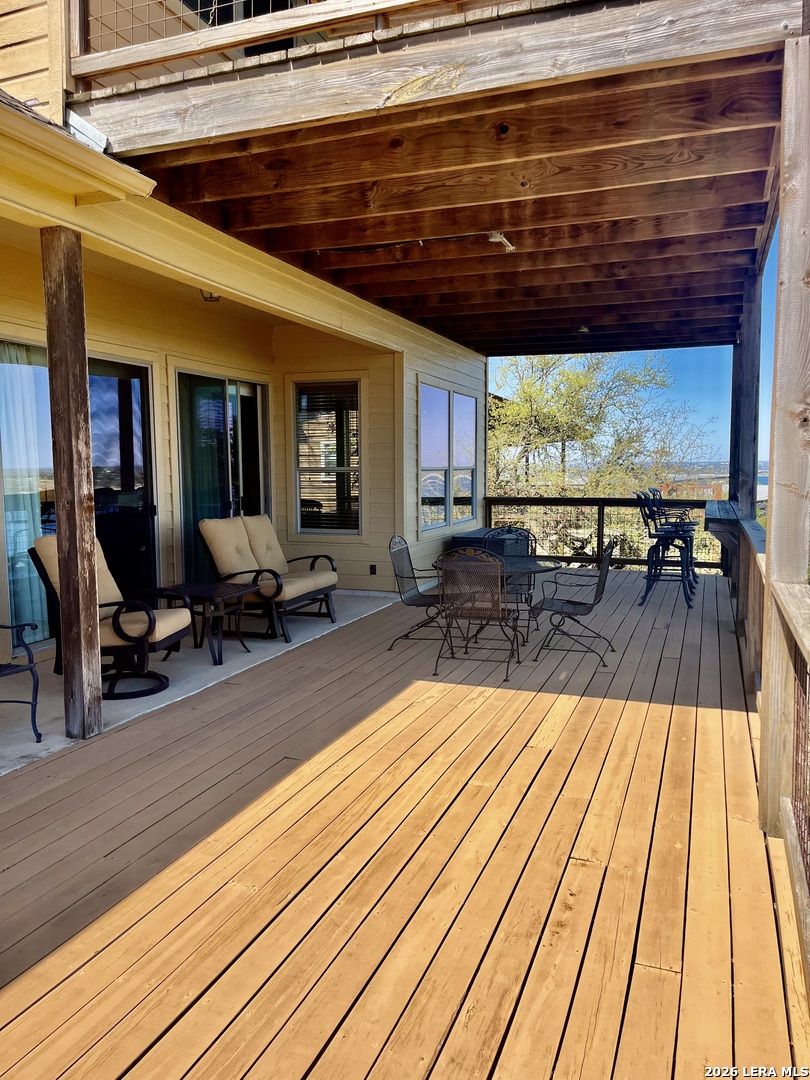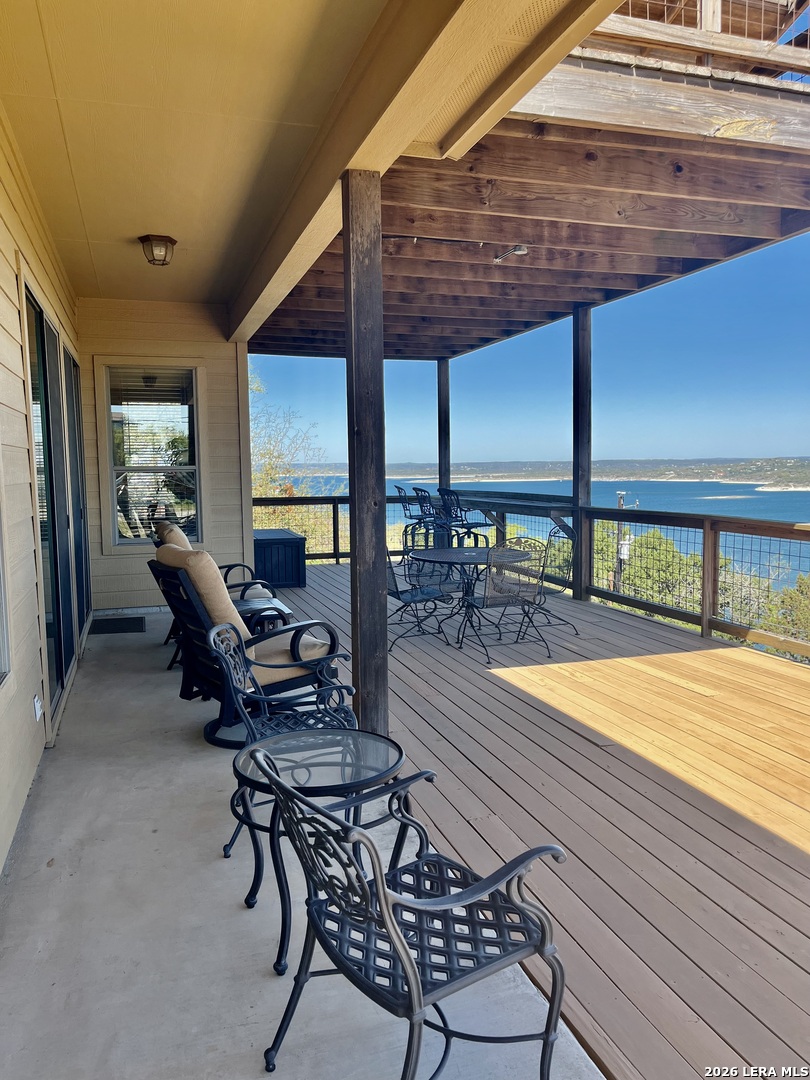 PANORAMIC WATER VIEW. Must see this well maintained 3/ 2 -1/2 / 2 home overlooking Canyon Lake and Canyon Dam. See for miles and miles from spacious covered decks with wonderful breezes. You will never want to leave home. Have breakfast, lunch and dinner and beverages on the decks. Low maintenance property with fantastic floor plan; two living areas, sitting area, open floor plan. Beautiful white stone fireplace with built in shelving. Granite counter tops in kitchen and breakfast bar area. Stainless appliances, walk in panty, utility room with plenty of storage. Spacious garage. Furniture negotiable. Open house March 28 and 29!