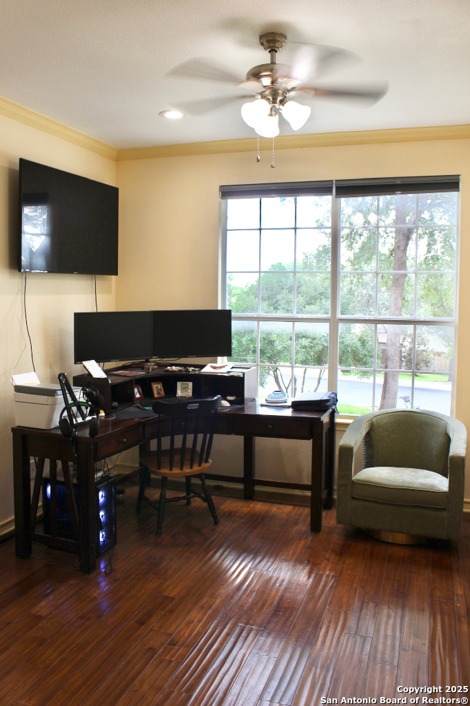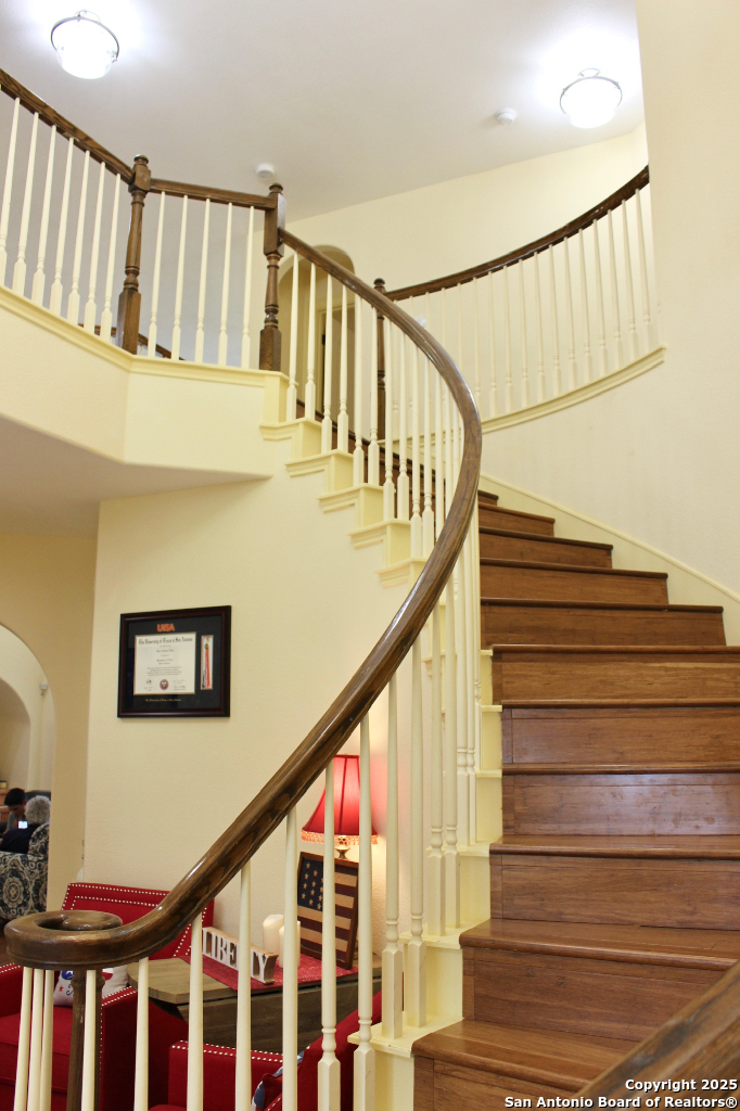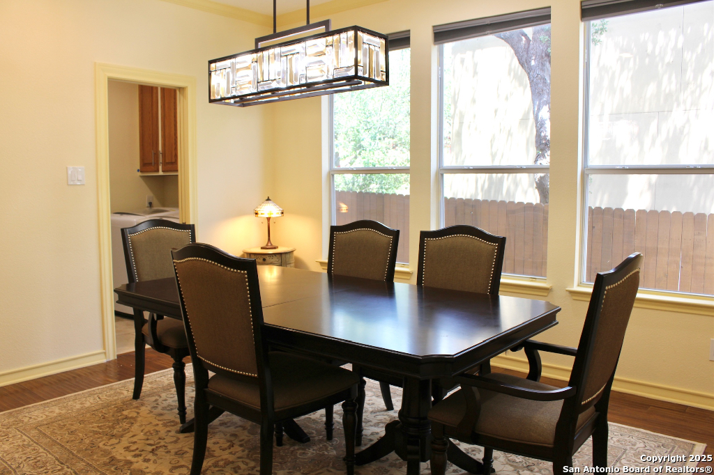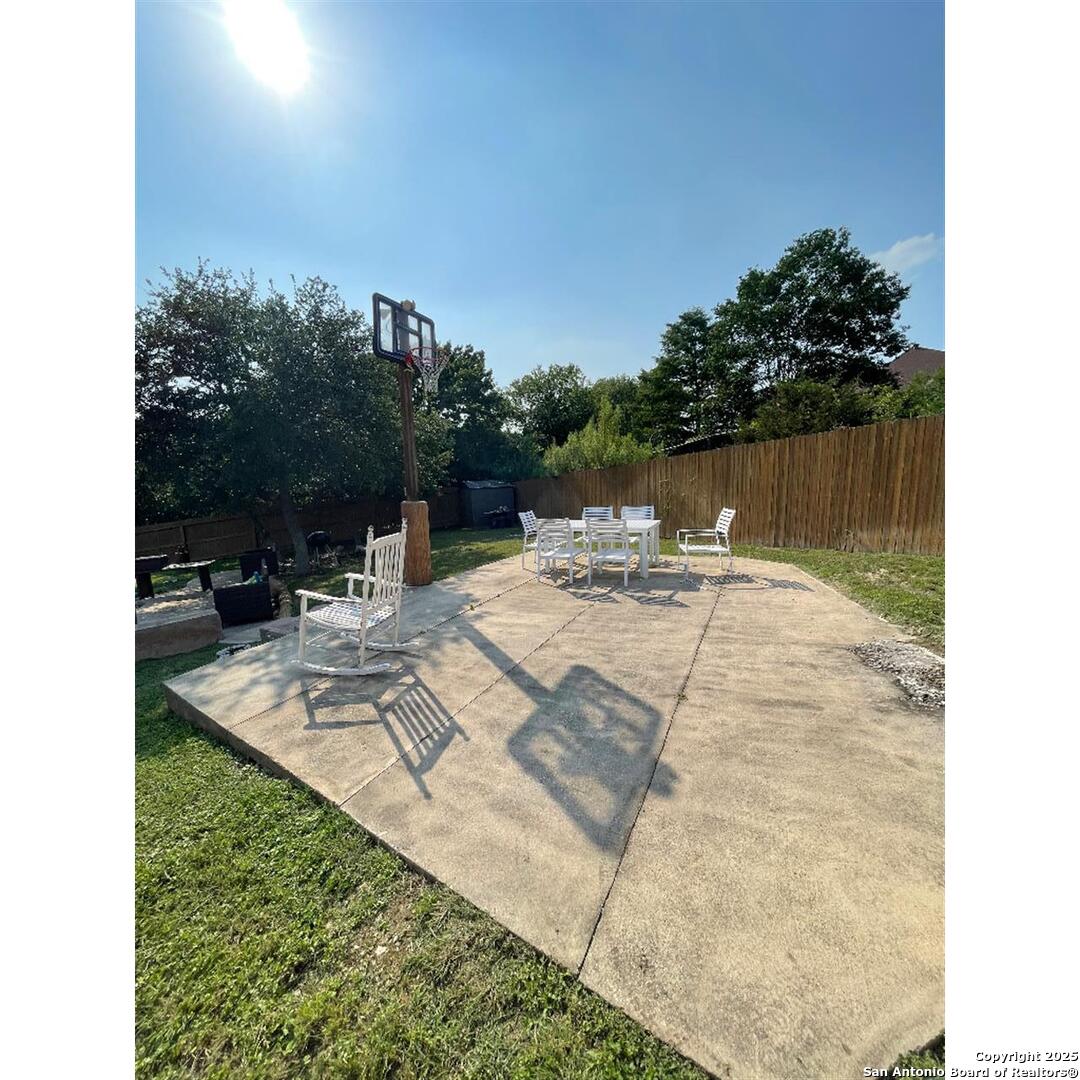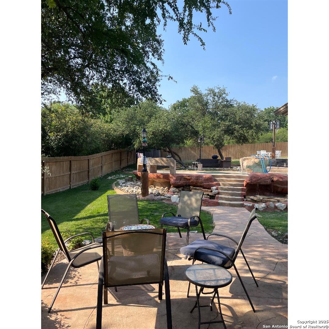 This amazing custom home is in the gated Rogers Ranch Point Bluff community. It boasts a beautiful back yard retreat with a pool/spa and cavernous 3 car garage. It's a freshly painted young home with too many updates to list but the hardwood floors are incredible. It features an open floor plan that is perfect for entertaining. The warm and spacious kitchen features beautiful hardware, double ovens, a gas stove and granite countertops. The Family room has beautiful stone fireplace and tons of natural light. This home features 5 bedrooms. Two primary 1st floor bedroom suites complete with shower, separate bathtub and double walk-in closets with beautiful built-ins in the master. Upstairs you will find the media room and game/flex room with 3 additional bedrooms and 2 full bathrooms. The Greenbelt backyard is great for entertaining and privacy. Enjoy your pool/spa with custom waterfalls, a covered patio, a gas lit outdoor fire pit, a built in grill, and a basketball hoop for enjoyment. Incentives are included for new carpet and fresh paint. Come see you beautiful private retreat in amazing northern San Antonio.