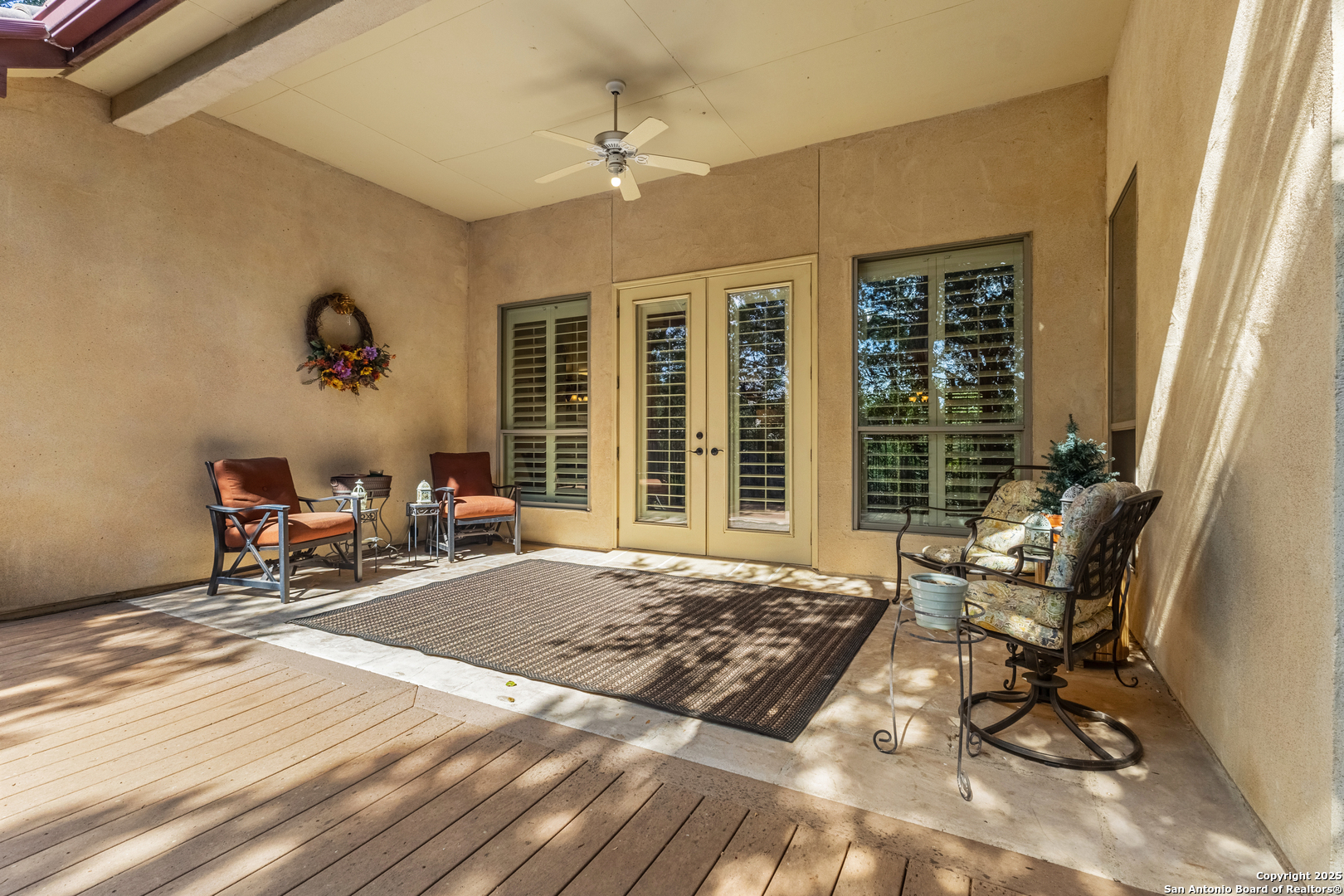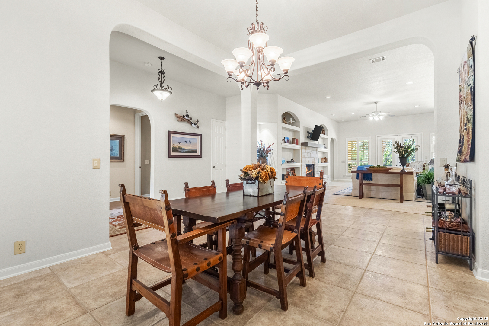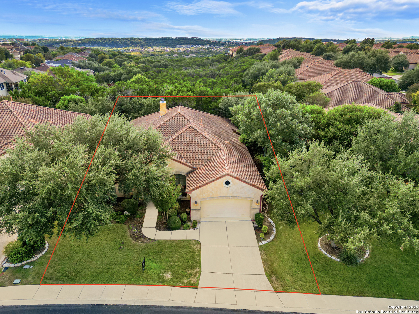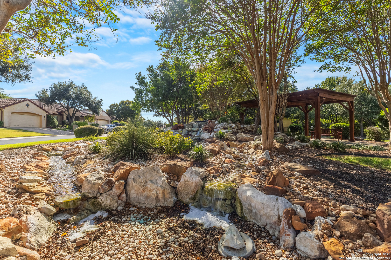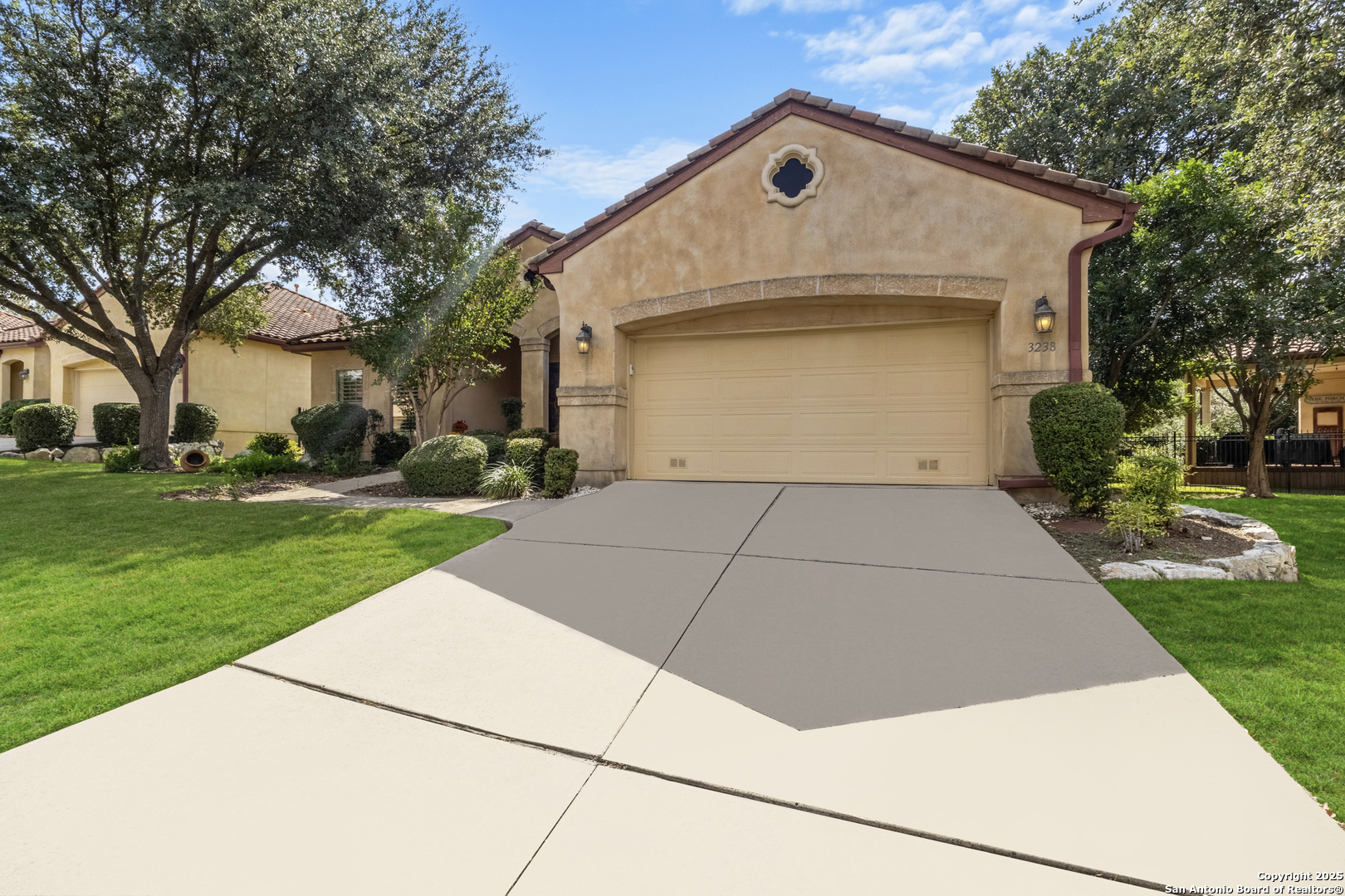 Exuding sophistication and grace, this exquisite Sitterle home captures the essence of Tuscan living at its finest. Perfectly positioned along the lush greenbelt and tranquil Salado Creek, the residence offers an unparalleled sense of privacy and connection to nature. Step inside to a beautifully open floor plan with soaring 11 ft. ceilings that flows seamlessly into the spacious living and dining areas-ideal for effortless entertaining. The gourmet island kitchen serves as both a culinary retreat and a gathering space. The wood burning rock fireplace is at the center of this well thought out design. Boasting four bedrooms with large 8 ft doors and three full baths, every corner of this home is thoughtfully appointed for luxury and comfort. One bedroom has a built in bookcase and is currently being used as a study. Gated community with neighborhood amenities including pool and tennis court. Perfect location close to 1604 and IH 10 and 281.