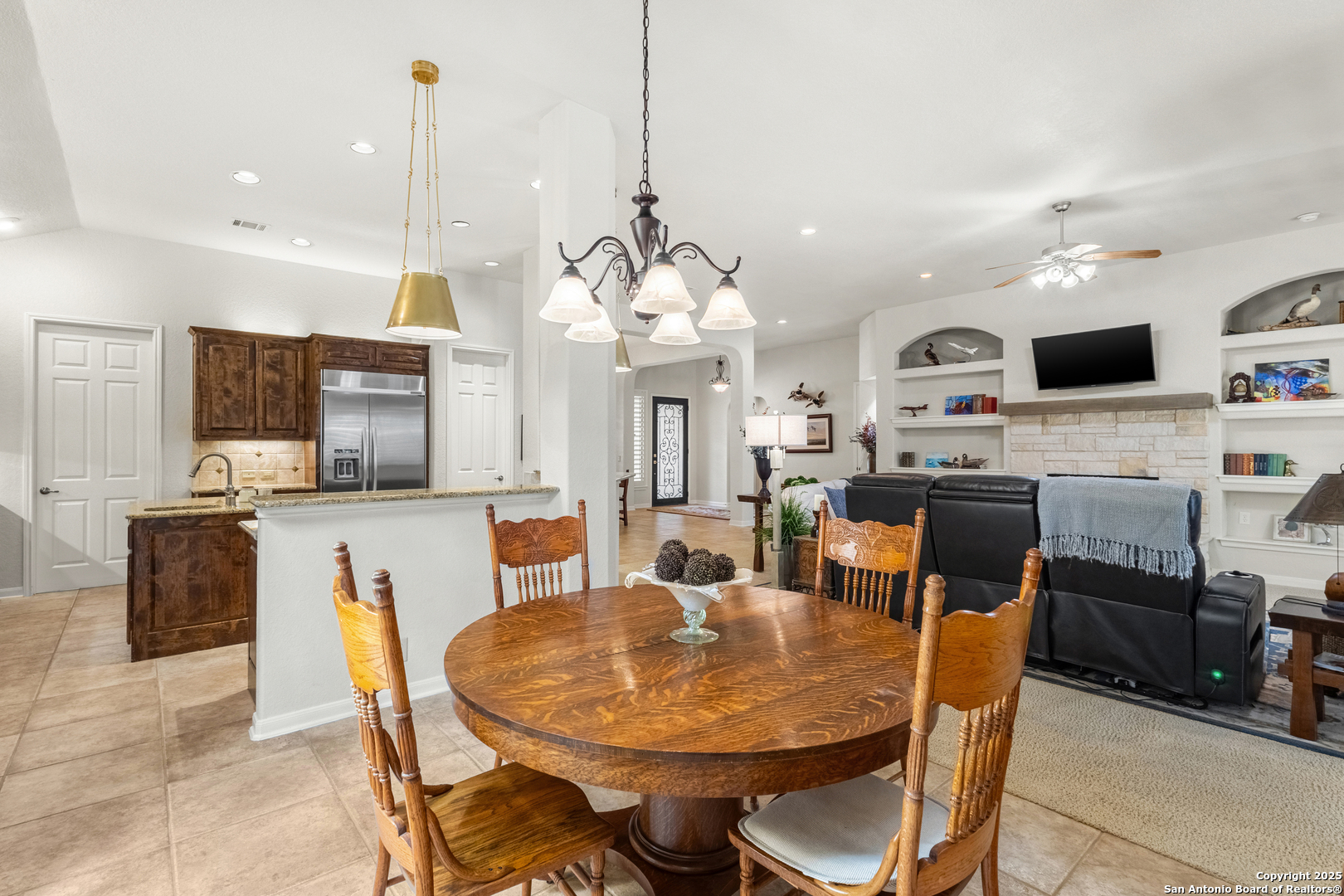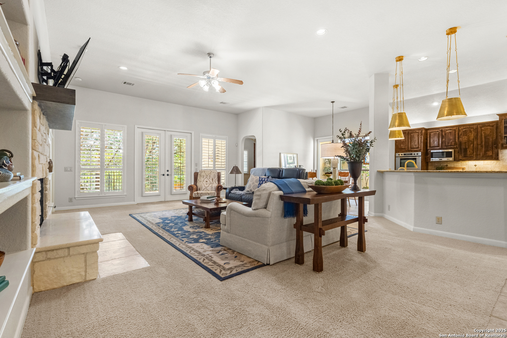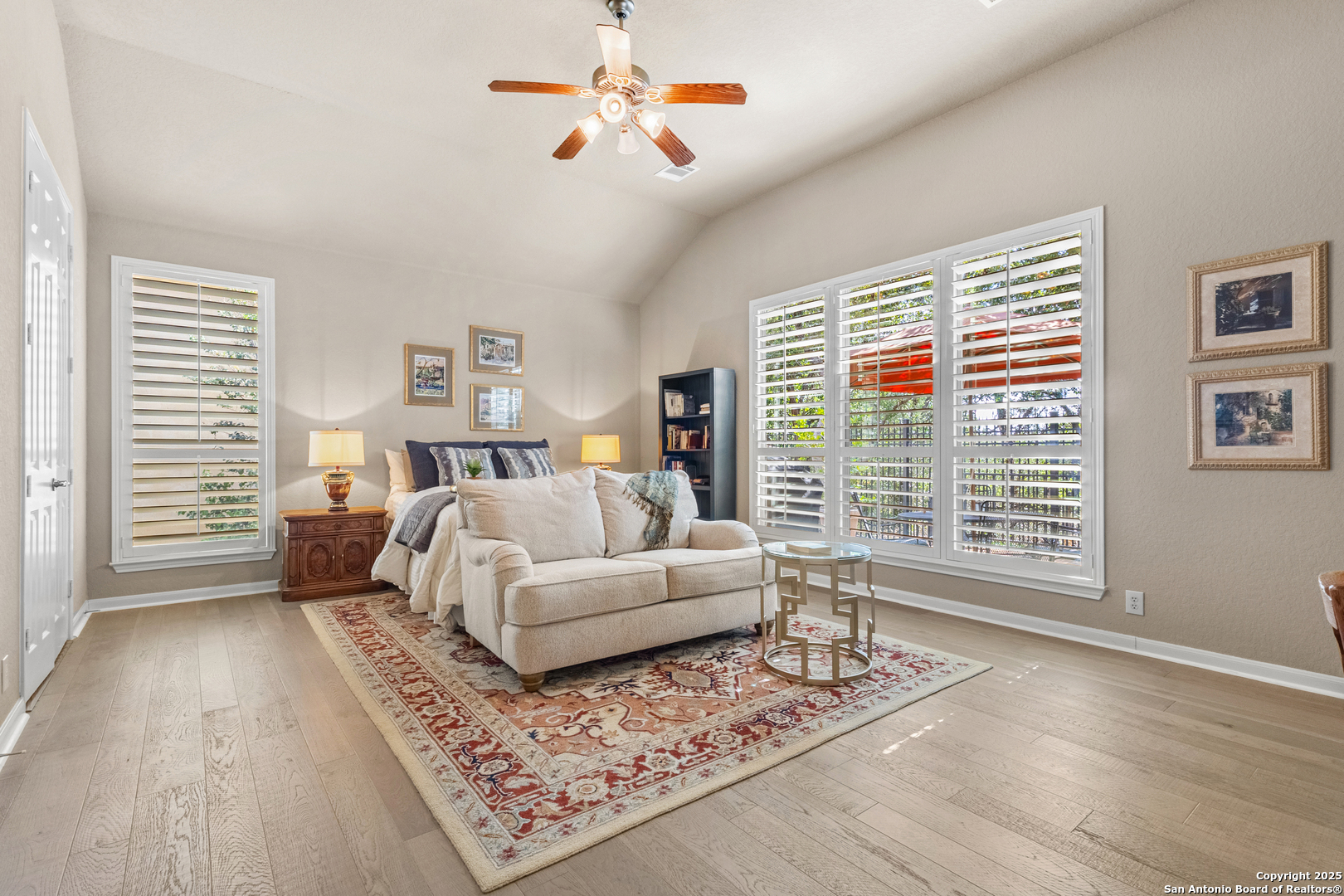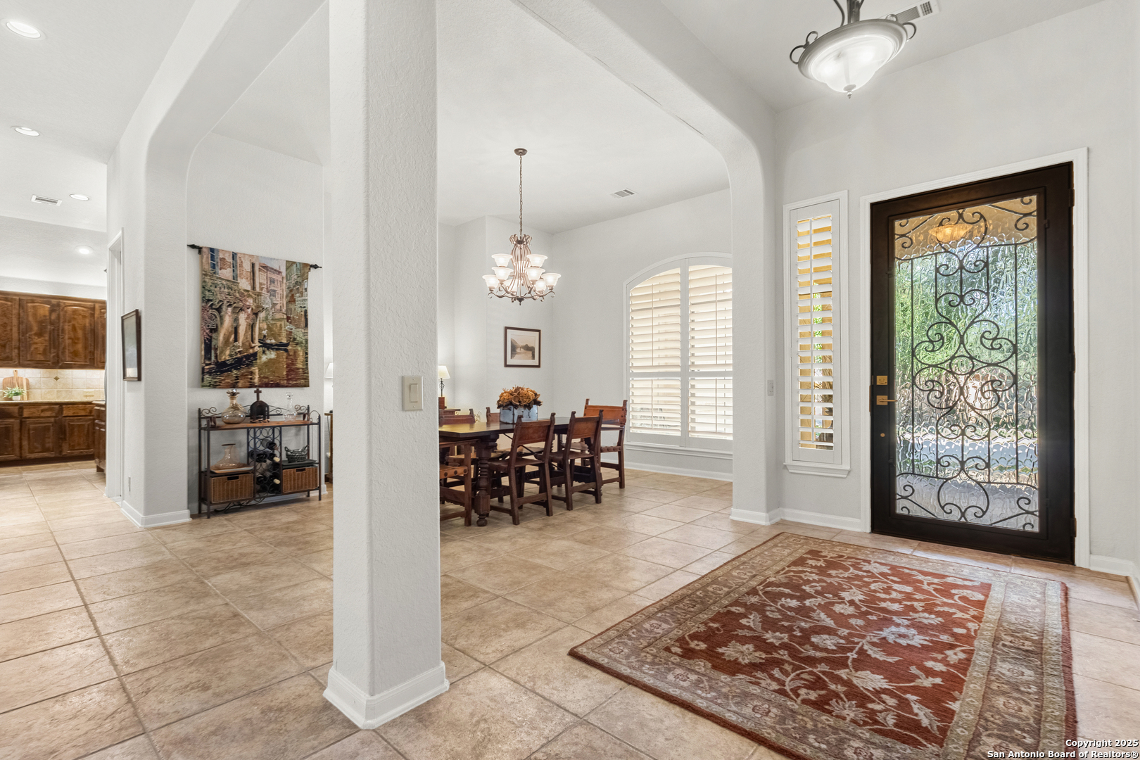 Exuding sophistication and grace, this exquisite Sitterle home captures the essence of Tuscan living at its finest. Perfectly positioned along the lush greenbelt and tranquil Salado Creek, the residence offers an unparalleled sense of privacy and connection to nature. Step inside to a beautifully open floor plan with soaring 11 ft. ceilings that flows seamlessly into the spacious living and dining areas-ideal for effortless entertaining. The gourmet island kitchen serves as both a culinary retreat and a gathering space. The wood burning rock fireplace is at the center of this well thought out design. Boasting four bedrooms with large 8 ft doors and three full baths, every corner of this home is thoughtfully appointed for luxury and comfort. One bedroom has a built in bookcase and is currently being used as a study. Gated community with neighborhood amenities including pool and tennis court. Perfect location close to 1604 and IH 10 and 281.