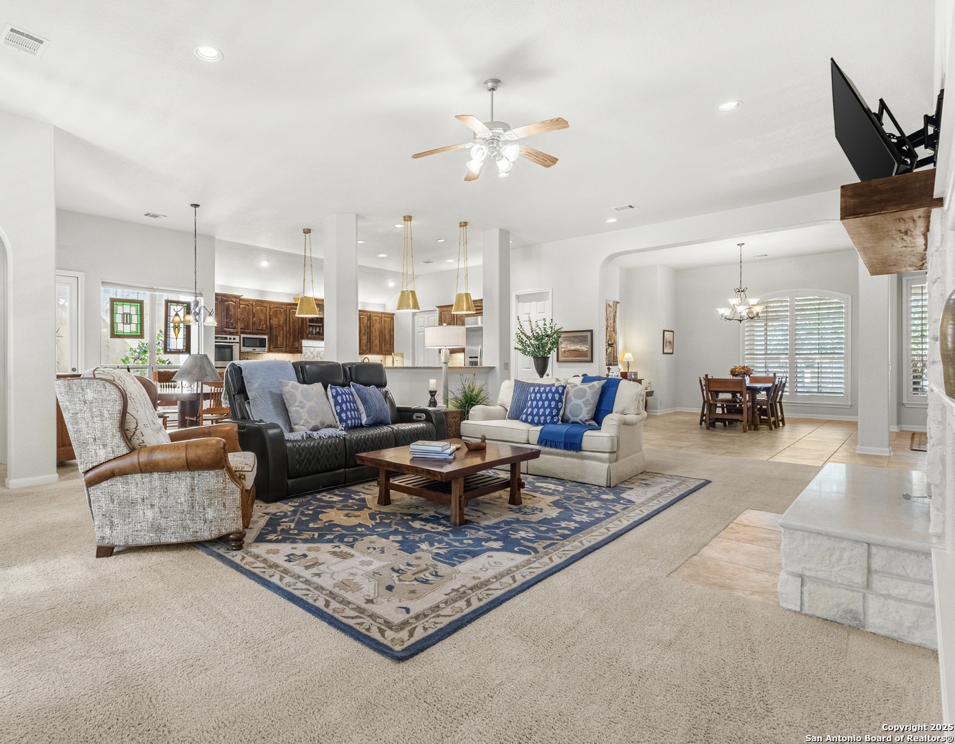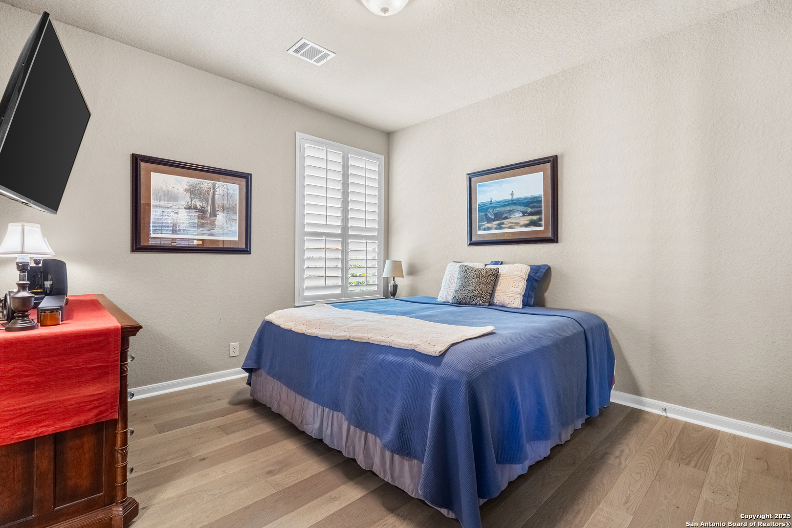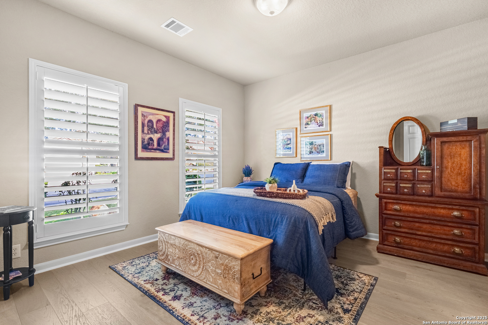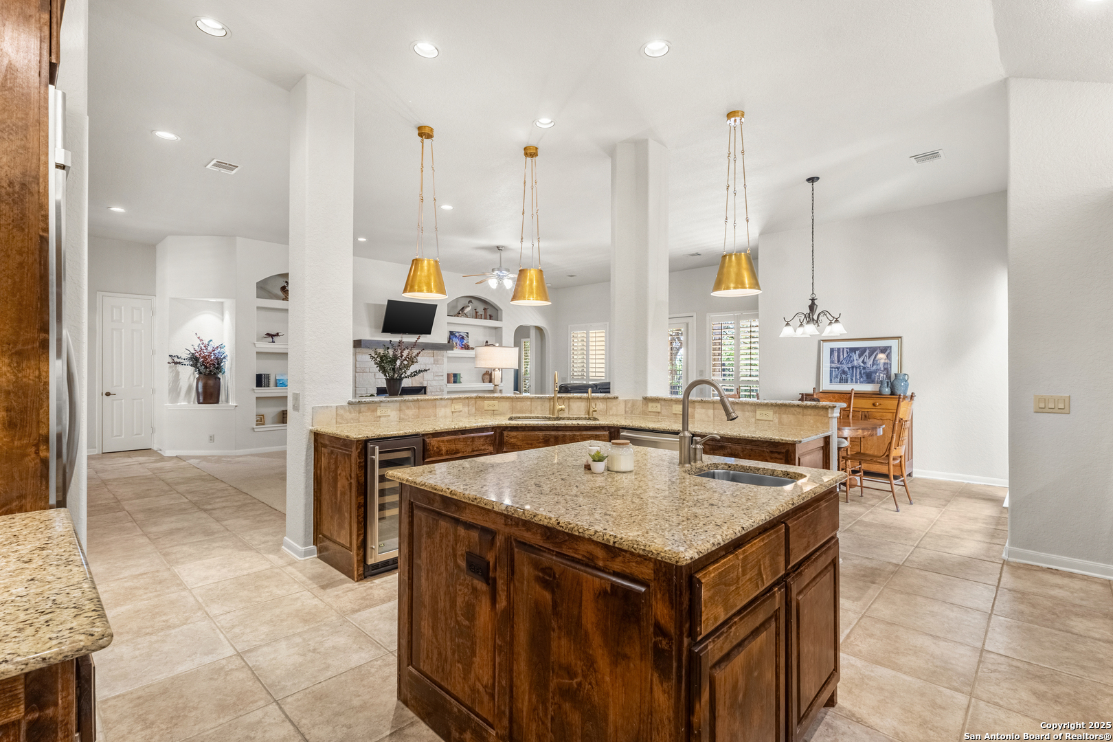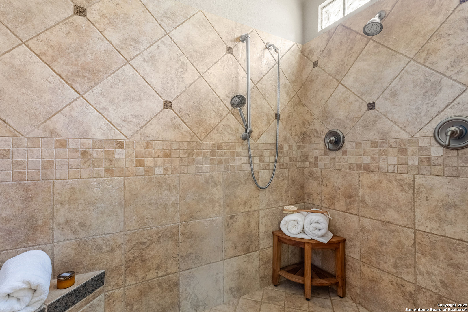 Exuding sophistication and grace, this exquisite Sitterle home captures the essence of Tuscan living at its finest. Perfectly positioned along the lush greenbelt and tranquil Salado Creek, the residence offers an unparalleled sense of privacy and connection to nature. Step inside to a beautifully open floor plan with soaring 11 ft. ceilings that flows seamlessly into the spacious living and dining areas-ideal for effortless entertaining. The gourmet island kitchen serves as both a culinary retreat and a gathering space. The wood burning rock fireplace is at the center of this well thought out design. Boasting four bedrooms with large 8 ft doors and three full baths, every corner of this home is thoughtfully appointed for luxury and comfort. One bedroom has a built in bookcase and is currently being used as a study. Gated community with neighborhood amenities including pool and tennis court. Perfect location close to 1604 and IH 10 and 281.