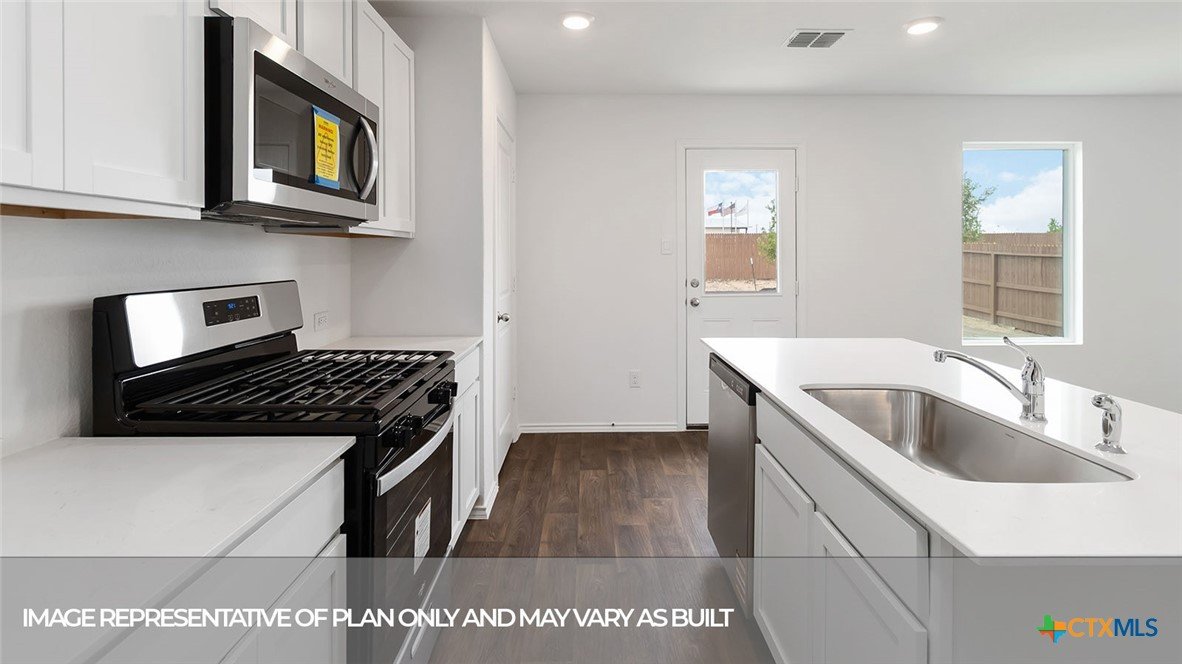 MOVE IN READY! The Davis is one of our two-story floorplans available at Arroyo Ranch in Seguin, Texas. This home offers 3 bedrooms, 2.5 bathrooms and a 2-car garage across 1,470 square feet of modern living space. Step inside the home from the front porch and pass through the foyer to the kitchen, dining and family room. This open concept living space will become the central hub of your home, a place where many memories will be made. The kitchen features an island with a stainless-steel sink, quartz countertops, 42” upper ‘picture frame’ cabinets, a pantry closet, and stainless-steel appliances. A powder room is also located on the first floor. Moving upstairs, you’ll find all 3 bedrooms, 2 full bathrooms and the utility room. The large primary bedroom includes an attached bathroom. Your morning routine will be a breeze in this private ensuite, which features a walk-in shower, cultured marble vanity with trench sink and an oversized walk-in closet. The secondary bedrooms include a closet with wood shelving. The secondary bathroom features a shower/tub combination and a cultured marble vanity with trench sink. This home features our America’s Smart Home base package, which includes the Amazon® Echo Pop, Video Doorbell, Front Door Key Code Deadbolt Lock, Home Hub, Thermostat, and Deako Smart Switches.