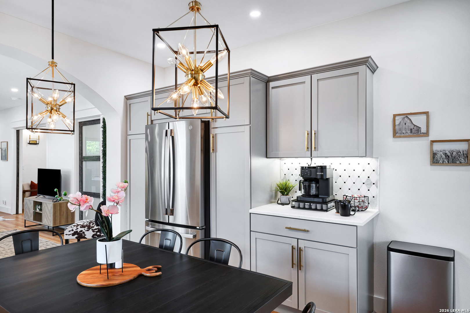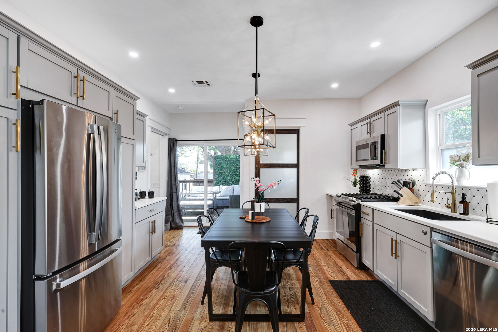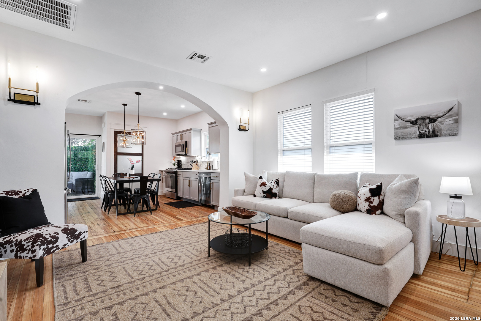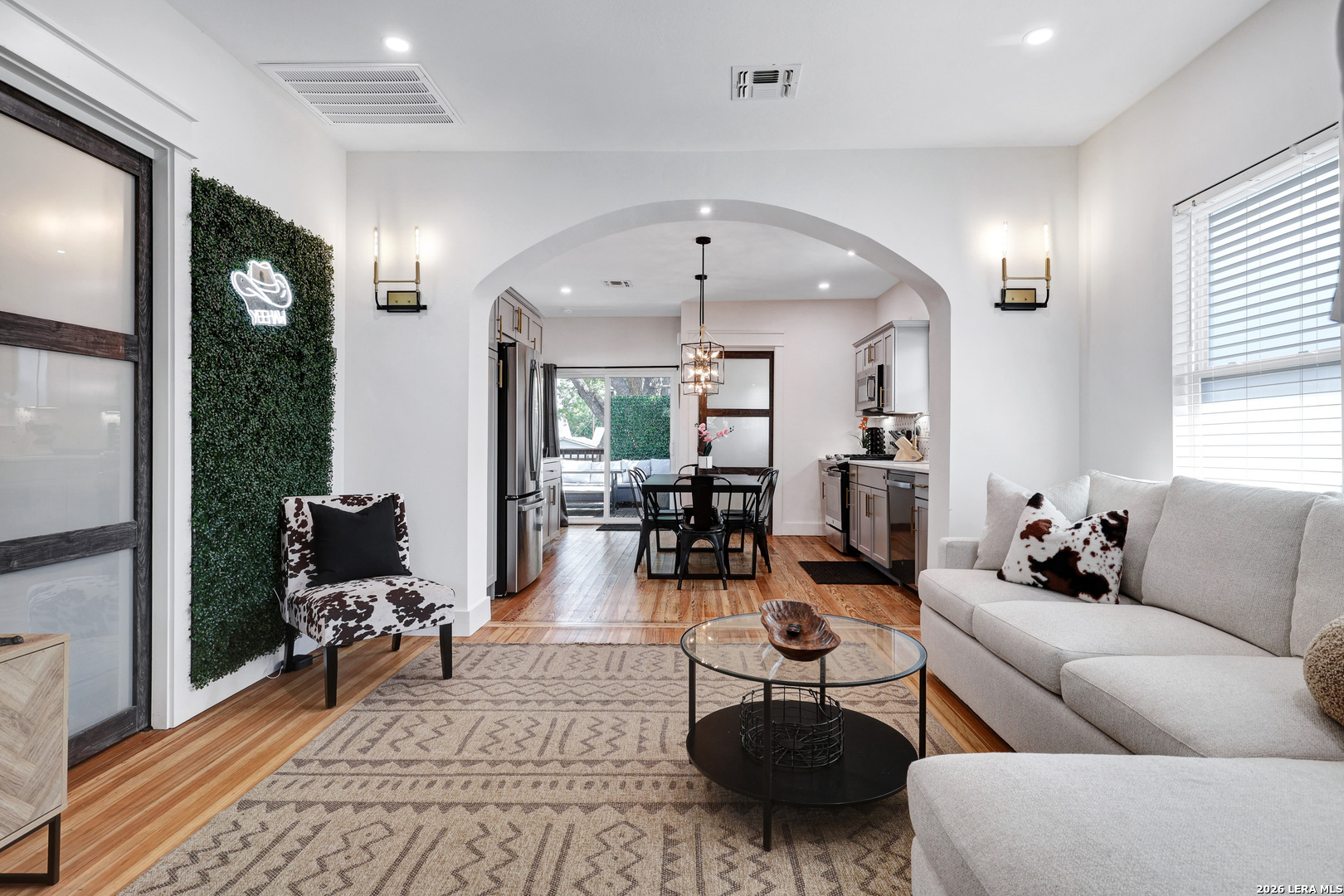 Welcome Home to this charming gem in Highland Park. From the moment you enter the gate and walk up to the oversized front patio, you just want to relax in comfort and sit and swing! With a total of 3 bedroom 3 full bath and renovations complete, it is ready to go! Currently being used for short term rentals and income producing with No HOA, it's the perfect investment or Personal Home. Every detail has been thoughtfully addressed in the last two years with all-new plumbing, electrical systems, roofing, recessed lighting, high-quality appliances, and HVAC ensuring a worry-free living experience. The attention to detail and finish outs makes this a showstopper! The main house features 2 bedroom 2 full bath and the separate Casita adds one more bedroom and full bath. The Main home has all the character you desire with modern upgrades throughout including wood floors, solid surface countertops, detailed backsplash, polished brass fixtures and hardware, accent walls and more! The open concept with arches showcases the electric fireplace in the living room. The Primary Bedroom is a retreat in itself with sliding doors to the private patio. The property is fully fenced for ultimate privacy, creating parking behind the fence and includes electric gates and exterior surveillance. For added convenience, there is an option to purchase the home fully furnished. This property is not just a home but a lifestyle, offering unparalleled comfort, privacy, and the opportunity for additional income. Don't miss the chance to own this urban sanctuary with endless possibilities.