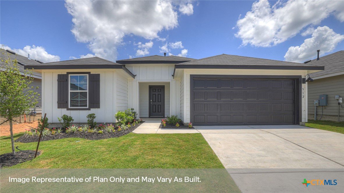 JANUARY ESTIMATED COMPLETION DATE. The Denton is a single story home perfect for small families looking for extra space. Inside this 1,574 square foot home, you will find 3 bedrooms, 2 bathrooms and a 2-car garage. Our homes in Bollinger feature our modern farmhouse exteriors. Coming into the house from the covered front porch, you’ll find a foyer and hallway that takes you to the heart of the house, the living space. The open concept design of kitchen, dining room and family room allows for easy entertaining and everyday living. The L-shaped kitchen features an island with undermount sink, granite countertops, 4" backsplash, a pantry closet, 36” upper cabinets, and stainless-steel appliances, including a gas range. The primary bedroom is off the dining room and has its own attached bathroom. Enjoy the walk-in shower, cultured marble vanity with dual sinks, and separate door to the toilet for privacy. A huge walk-in closet with generous shelving is connected to the bathroom. You will have plenty of space in this closet for your accessories or prized possessions. The secondary bedrooms are off the foyer at the front of the home. In the hall between the bedrooms is the secondary bathroom, which includes a shower/tub combination. Each bedroom includes a closet with shelving. The utility room is tucked away between the foyer and kitchen, convenient to all bedrooms once the clothes are cleaned. The Denton includes vinyl flooring throughout the common areas of the home, and carpet in the bedrooms. A covered back patio is also included in the Denton plan. All our new homes feature Bermuda sod, an irrigation system in the front and back yard, and a 6’ privacy fence around the back yard. This home features our America’s Smart Home base package, which includes the Video Front Doorbell, Front Door Deadbolt Lock, Home Hub, Thermostat, and Deako® Smart Switches.
