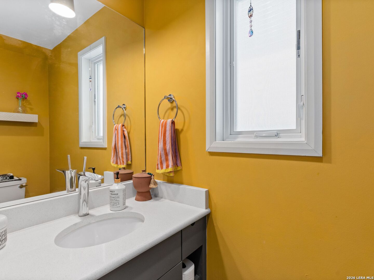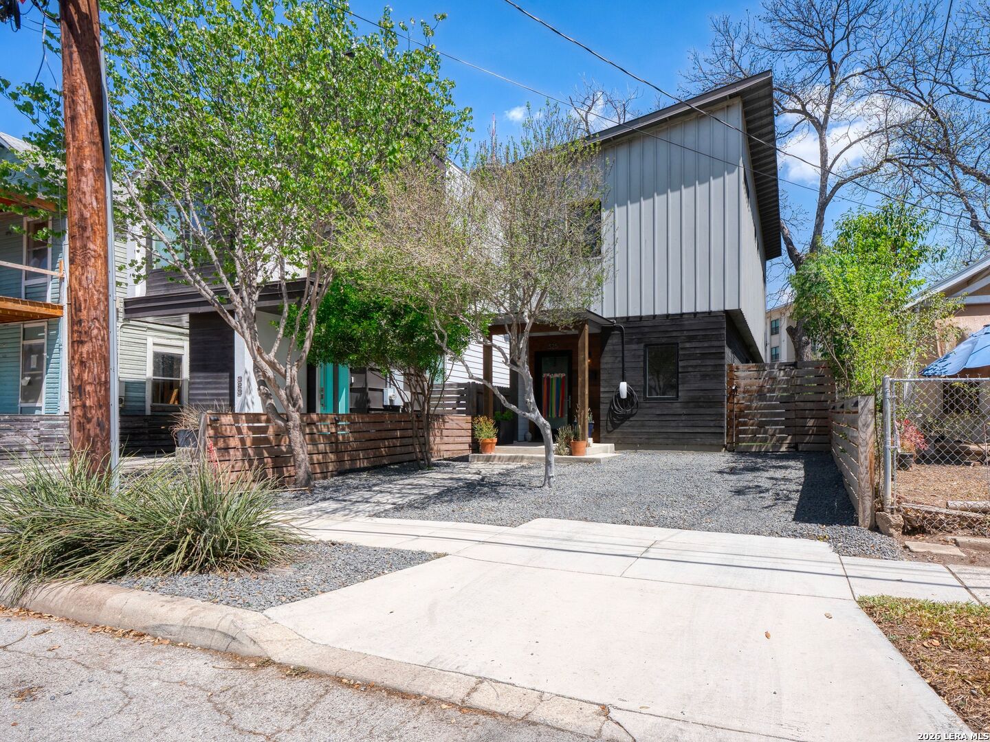 Dying to live in Lavaca Historic District but not wanting an older home then this fine 2/2.5 , 2 story contemporary, well priced home is perfect for you! Built and designed by Candid Rogers, architect, this home has concrete stained floors , living/dining/kitchen, study/office and 1/bath on the first floor and beautiful wood floors upstairs with 2 bedrooms, 2 baths, laundry. Tesla charger, covered back patio, xeriscaped front yard with mature trees, and back and side yard with artificial turf provide a great place for a pet and outdoor enjoyment. This locale is so fine with a superb view of the Tower of the Americas, walking distance to all Southtown restaurants and bars, Downtown, Hemisfair Park and soon to be Project Marvel.