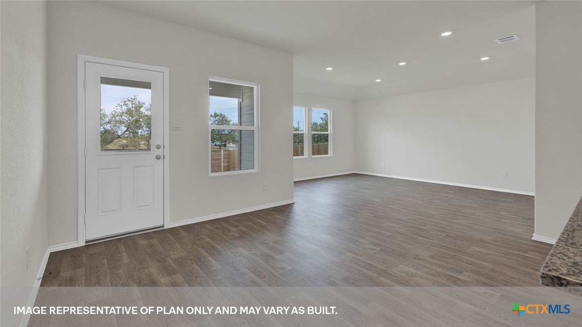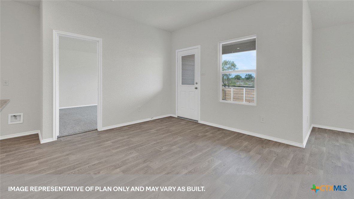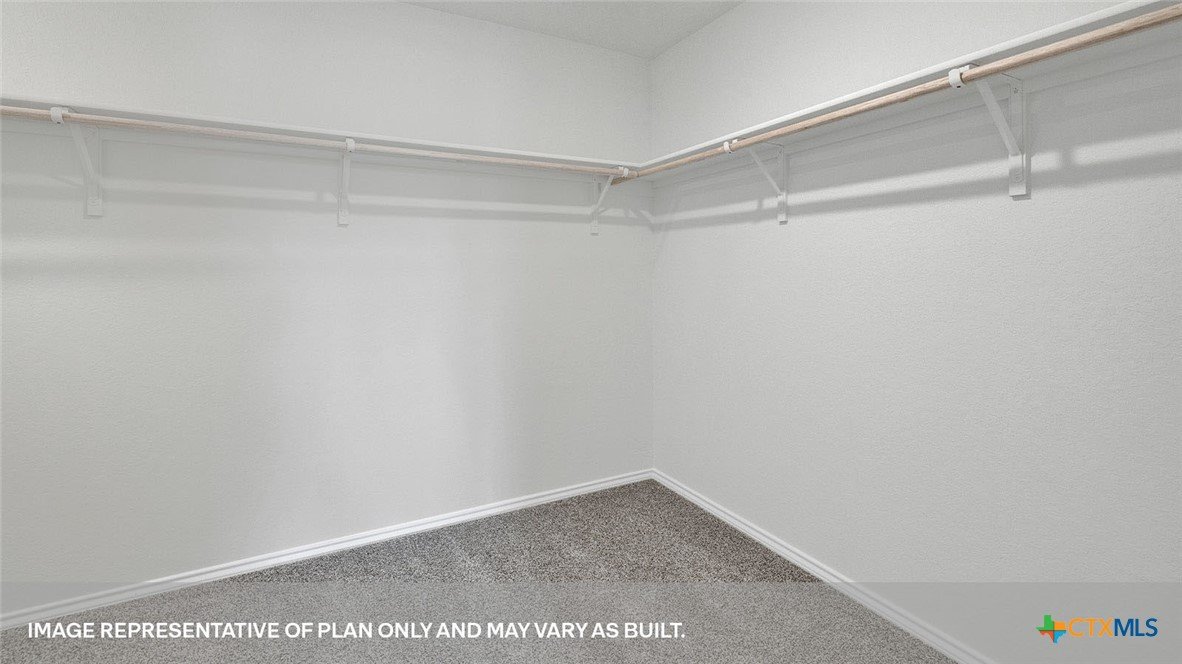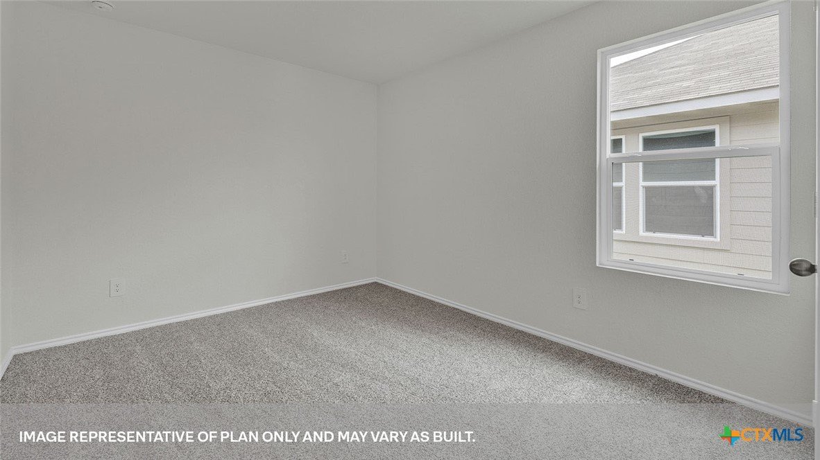 APRIL ESTIMATED COMPLETION. BACK TO A GREENSPACE, NO BACKYARD NEIGHBORS! Step into the Denton at Arroyo Ranch, one of our communities in Seguin, Texas. This one-story home is perfect for small families looking for extra space. Inside this 1,575 square foot home, you will find 3 bedrooms, 2 bathrooms and a 2-car garage. Coming into the house from the covered front porch, you’ll find a foyer and hallway that takes you to the heart of the house, the living space. The open concept design of kitchen, dining room and family room allows for easy entertaining and everyday living. The L-shaped kitchen includes granite countertops, a large island with an undermount sink, a corner pantry closet, stainless-steel appliances and 36’’ upper cabinets. The primary bedroom is off the dining room and has its own attached bathroom. Enjoy the 5’ walk in shower, double vanity, and separate door to the toilet for privacy. A huge walk-incloset with generous shelving is connected to the bathroom. You will have plenty of space in this closet for your accessories or prized possessions. The secondary bedrooms are off the foyer at the front of the home. In the hall between the bedrooms is the secondary bathroom, which includes a tub/shower combination. Each bedroom includes a closet with shelving. The utility room is tucked away between the foyer and kitchen, convenient to all bedrooms once the clothes are cleaned. The Denton includes vinyl flooring throughout the common areas of the home, and carpet in the bedrooms. All our new homes feature a covered back patio, full sod and an irrigation system in the front and back yard, and a 6’ privacy fence around the back yard. This home features our America’s Smart Home base package, which includes the Video Front Doorbell, Front Door Deadbolt Lock, Home Hub, Thermostat, and Deako® Smart Switches.