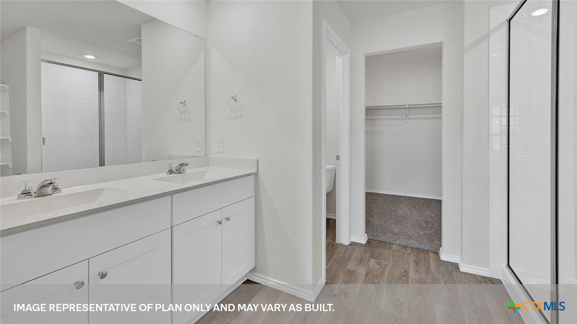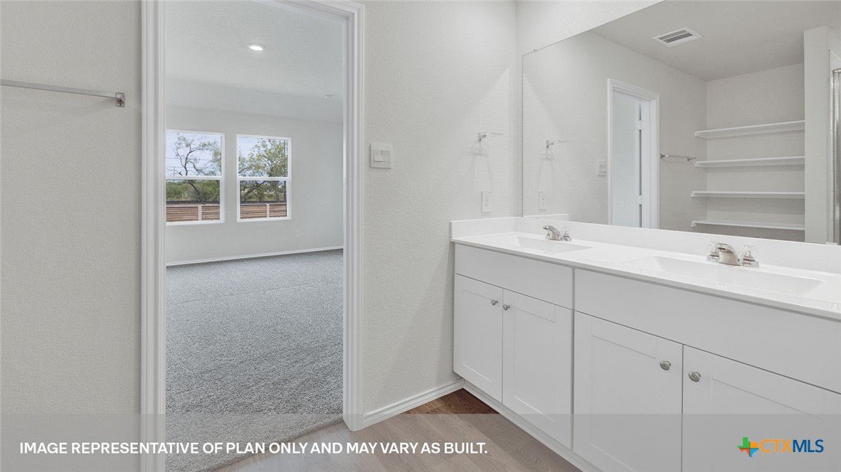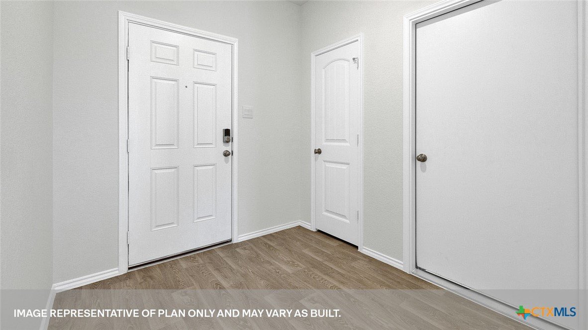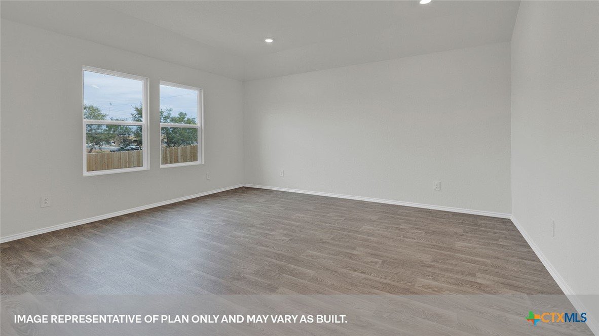 APRIL ESTIMATED COMPLETION. BACK TO A GREENSPACE, NO BACKYARD NEIGHBORS! Step into the Denton at Arroyo Ranch, one of our communities in Seguin, Texas. This one-story home is perfect for small families looking for extra space. Inside this 1,575 square foot home, you will find 3 bedrooms, 2 bathrooms and a 2-car garage. Coming into the house from the covered front porch, you’ll find a foyer and hallway that takes you to the heart of the house, the living space. The open concept design of kitchen, dining room and family room allows for easy entertaining and everyday living. The L-shaped kitchen includes granite countertops, a large island with an undermount sink, a corner pantry closet, stainless-steel appliances and 36’’ upper cabinets. The primary bedroom is off the dining room and has its own attached bathroom. Enjoy the 5’ walk in shower, double vanity, and separate door to the toilet for privacy. A huge walk-incloset with generous shelving is connected to the bathroom. You will have plenty of space in this closet for your accessories or prized possessions. The secondary bedrooms are off the foyer at the front of the home. In the hall between the bedrooms is the secondary bathroom, which includes a tub/shower combination. Each bedroom includes a closet with shelving. The utility room is tucked away between the foyer and kitchen, convenient to all bedrooms once the clothes are cleaned. The Denton includes vinyl flooring throughout the common areas of the home, and carpet in the bedrooms. All our new homes feature a covered back patio, full sod and an irrigation system in the front and back yard, and a 6’ privacy fence around the back yard. This home features our America’s Smart Home base package, which includes the Video Front Doorbell, Front Door Deadbolt Lock, Home Hub, Thermostat, and Deako® Smart Switches.