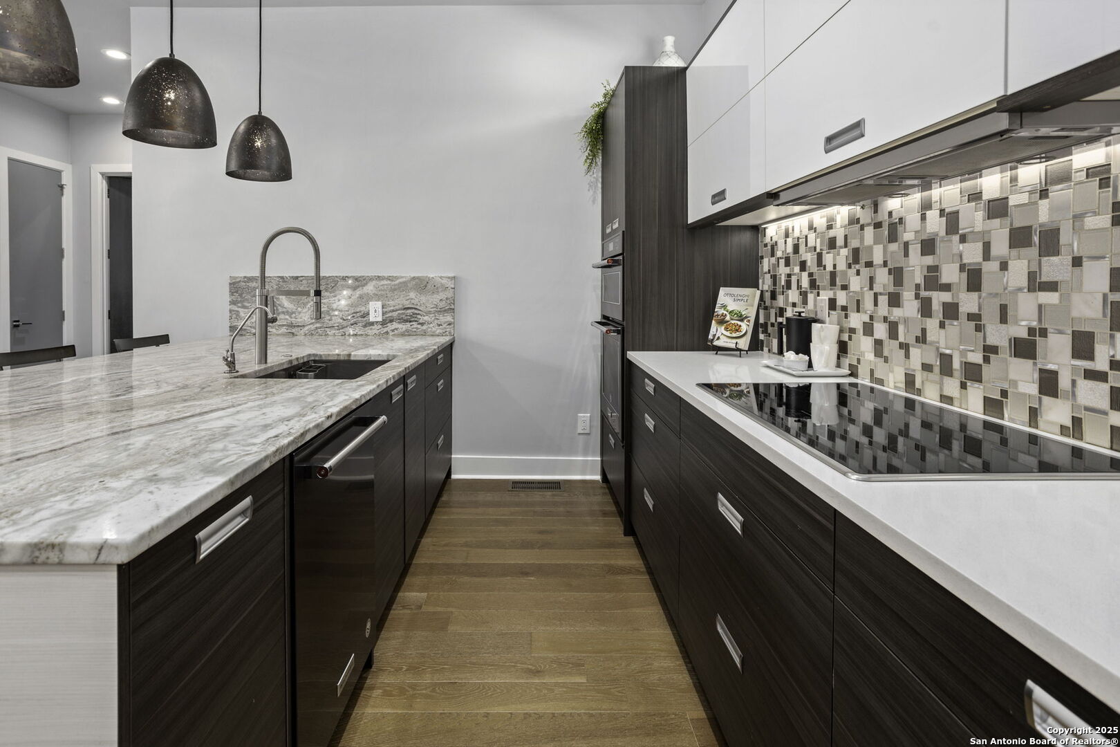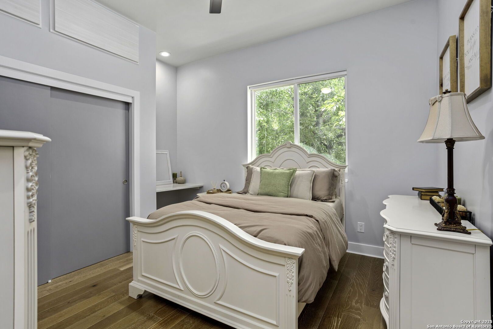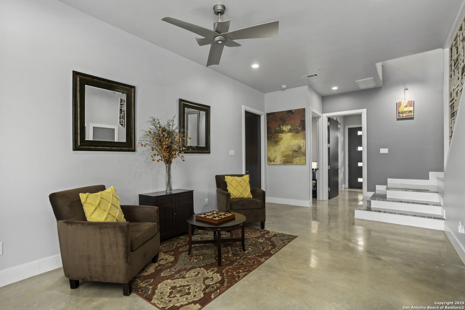 This gated 2-story townhome is a true gem with an unbeatable location. Just steps from the Riverwalk and surrounded by Southtown's favorite bars and local restaurants, you're right in the heart of it all while still enjoying the privacy of home. On the main level walk into a living space and a versatile flex room perfect for an office, gym, or guest space. The large primary suite also on main level, featuring a custom closet and walk-in shower. The kitchen is a true showstopper, featuring quartz countertops, black stainless steel appliances, custom cabinetry, and oversized counters with two-sided storage underneath-both beautiful and functional. Oversized windows flood the space with natural light, and zero carpet keeps the look sleek and easy to maintain. Upstairs, two spacious bedrooms and a full bath provide extra room to spread out. Outside, enjoy a covered terrace and xeriscaped front and back yards designed for low-maintenance living. With a 2-car garage and a 2-car driveway, you'll have ample parking-a rare find in the city. Owned solar panels add energy efficiency, while the 2017 build means modern comfort and peace of mind. This home offers the best of Southtown living!