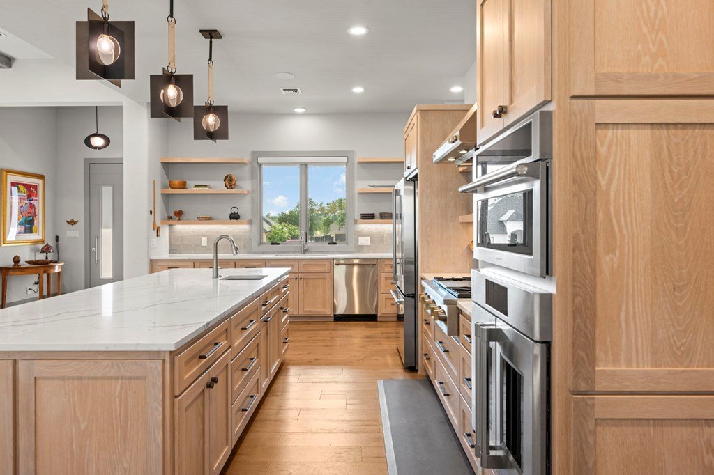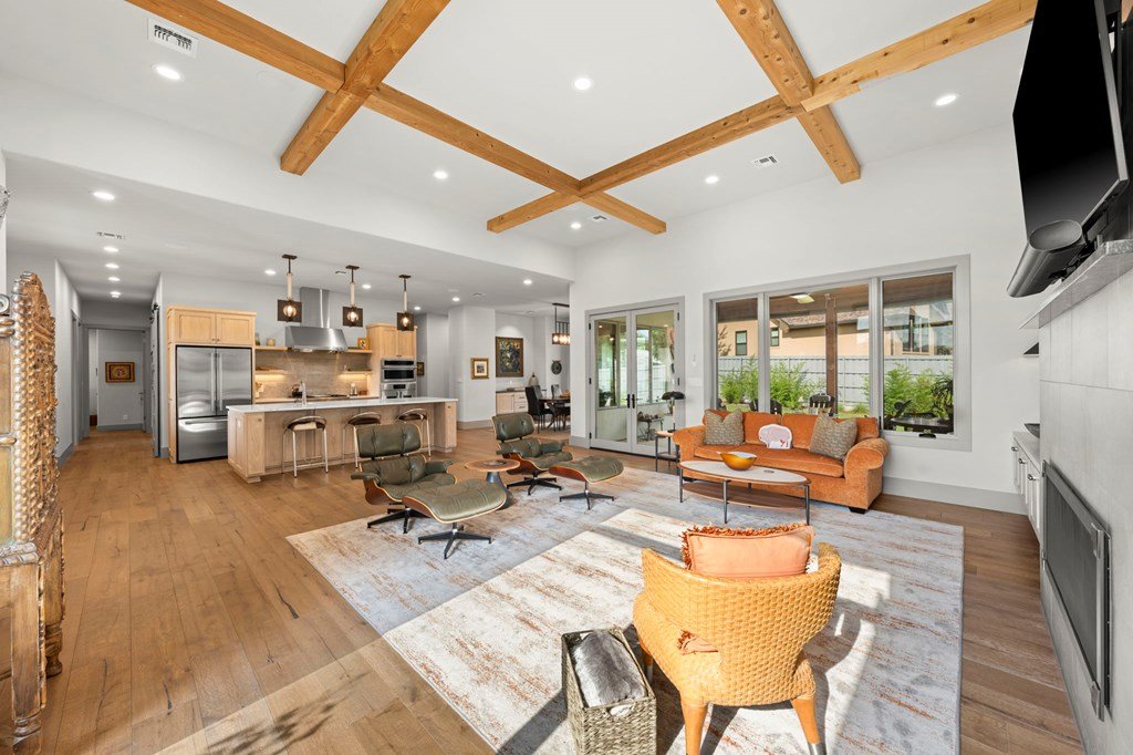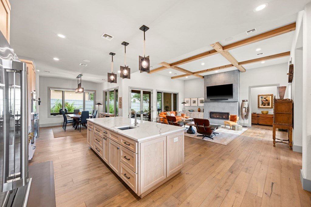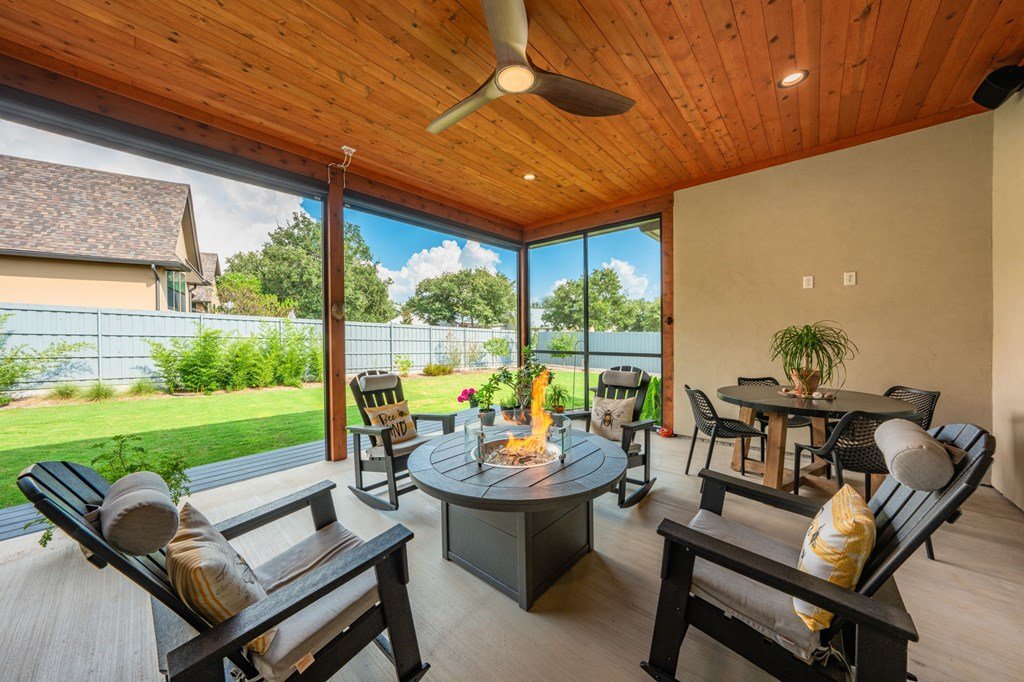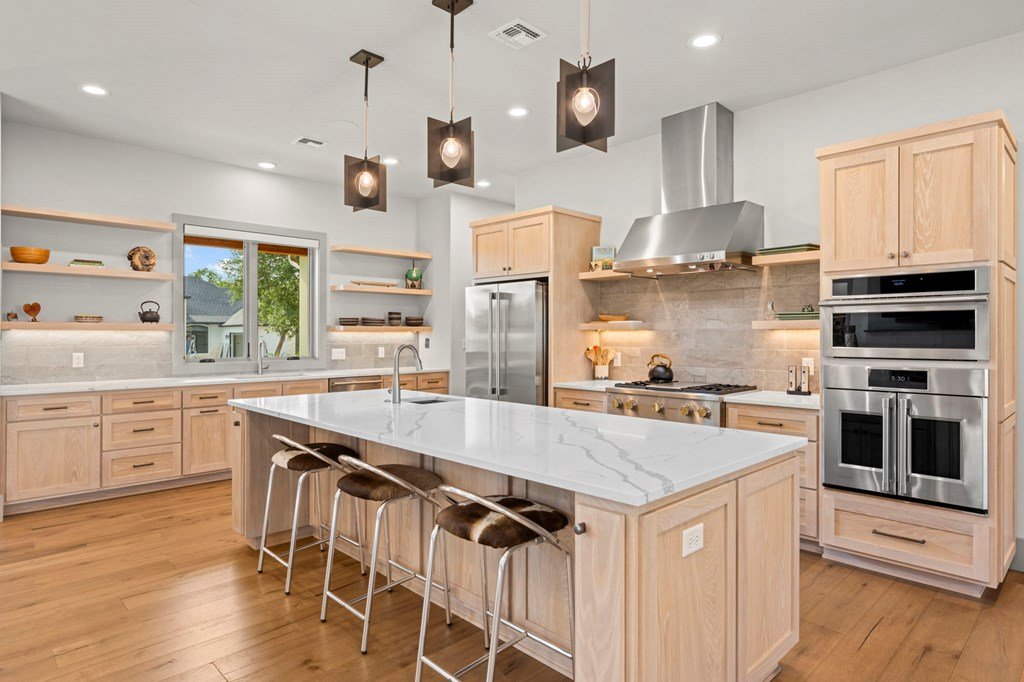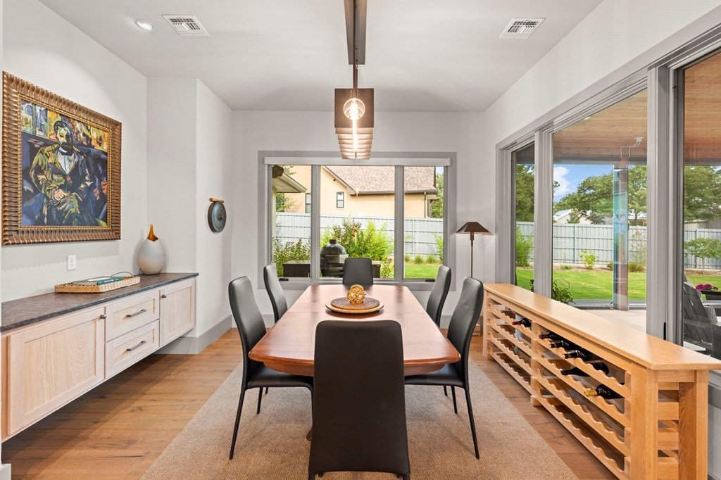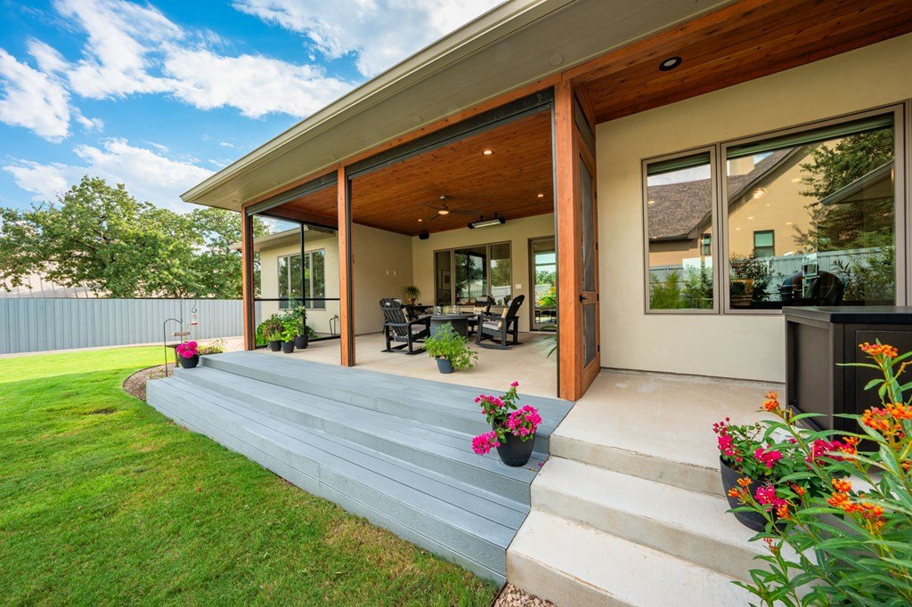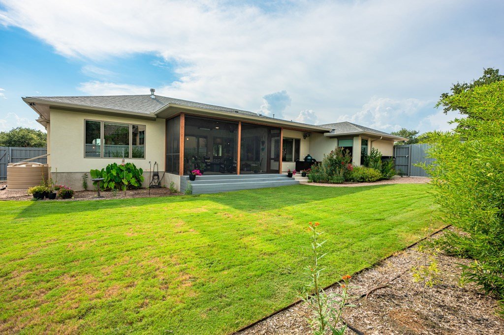 328 Ellebracht is an exceptional custom-built residence offering 4 bedrooms, 3 bathrooms, and 2,959 square feet of thoughtfully designed living space. Completed in 2023, this home showcases quality craftsmanship, timeless finishes, and a layout designed to meet the needs of today's lifestyle while offering the style and comfort expected with a custom home in Stone Ridge, one of Fredericksburg's premier neighborhoods. When you enter, you're greeted with engineered hardwood flooring that flows seamlessly throughout the main living spaces, creating a warm yet refined atmosphere. The open-concept design allows the kitchen, dining, and living areas to connect effortlessly, making the home ideal for entertaining as well as everyday living. The kitchen is both beautiful and functional, featuring quartzite countertops, a suite of stainless steel appliances, and a spacious butler's pantry that provides additional storage and prep space. Large windows throughout the home fill the interior with natural light, while including motorized window treatments on the majority of windows, highlighting the clean lines and high-end finishes. The primary suite is a true retreat, offering privacy and comfort. The spa-inspired en suite bathroom includes dual vanities, a walk-in shower, tub, and carefully selected finishes that create a serene environment. The walk-in closet provides generous storage and organization with built-in shelving and drawers. There is a oversized guest bedroom with an en suite bathroom and walk in closet. The other guest bedrooms are well-proportioned, with ample closet space and convenient access to the third bathroom. Attention to detail is evident throughout the property. The living room is anchored by elegant design features, such as the fire place, solid wood beams and built in cabinets that create a welcoming focal point, while the dining area allows for both formal gatherings and casual meals. Another one of the standout features of this property is the east facing screened-in back patio. Designed with comfort and convenience in mind, this space includes automatic screens that can be raised or lowered at the touch of a button, providing a seamless transition between indoor and outdoor living, built in speakers, and a space heater fixed to the ceiling for cold nights. Whether you are enjoying a quiet evening at home or entertaining guests, this versatile space offers year-round enjoyment. The backyard provides additional opportunities for outdoor living, gardening, or future enhancements such as a pool or landscaped retreat. Located just a short five minute drive from Fredericksburg's Main Street this residence provides the opportunity to enjoy the charm of the Hill Country while still being within reach of the town's renowned amenities. Reach out today to schedule a showing of this fantastic property!