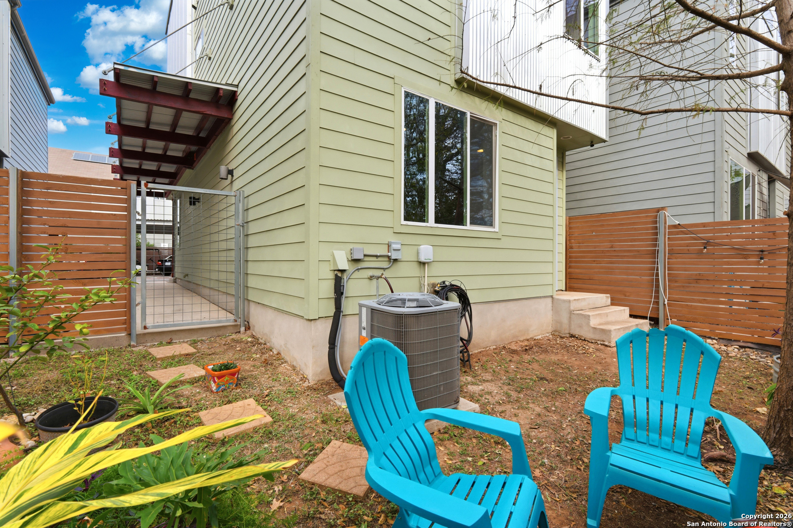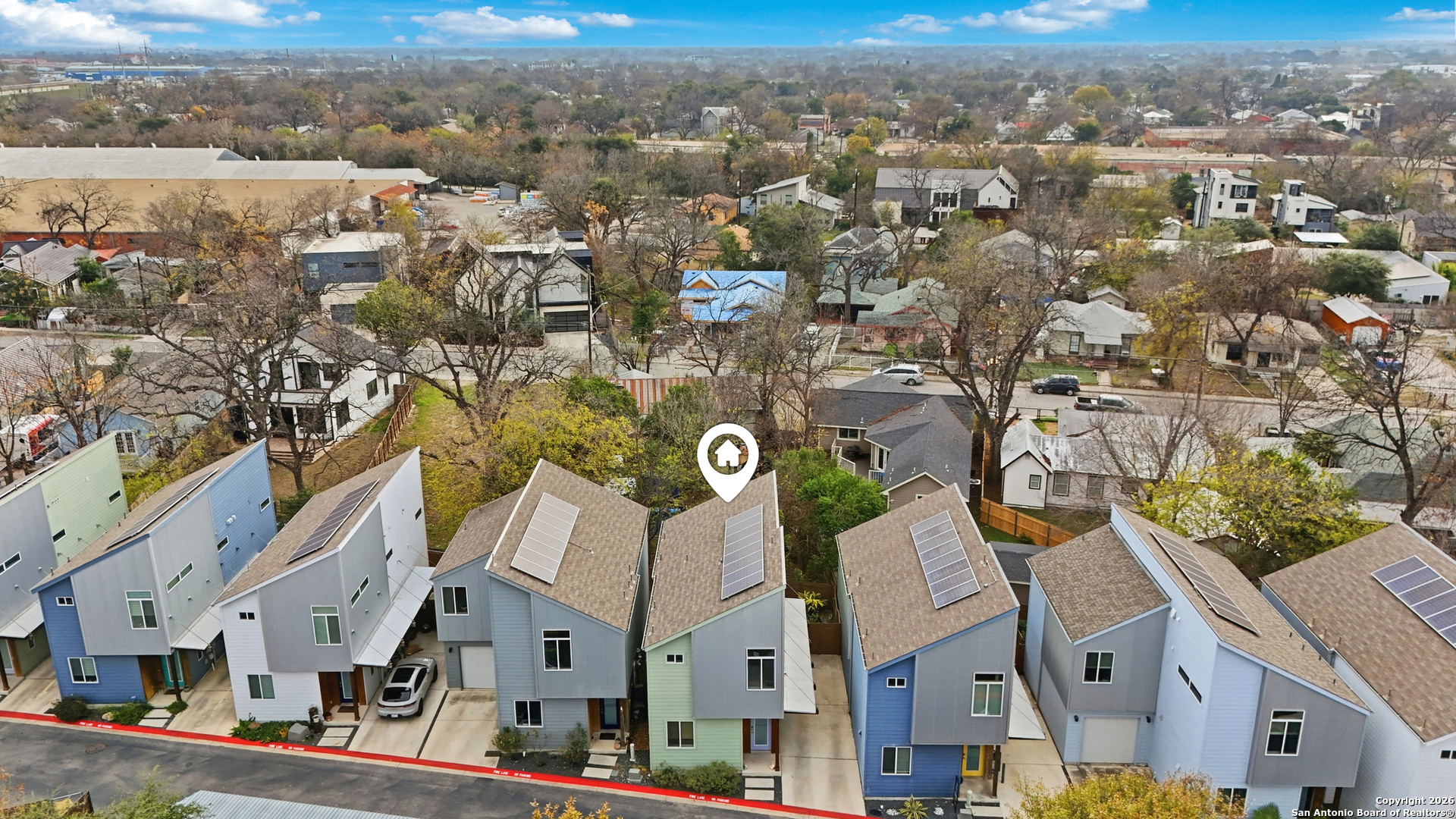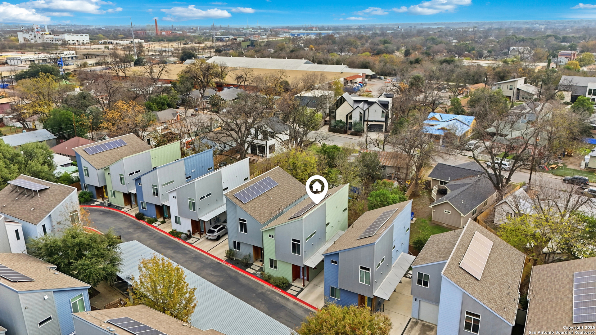 Located in the highly sought after Lone Star District in Southtown, this stylish two story condo in a gated community offers a blend of contemporary design and historic location with added security. The main living space features sleek stained concrete floors, high ceilings, and recessed lighting, creating an open and inviting atmosphere ideal for everyday living and entertaining. The kitchen is thoughtfully designed with stainless steel appliances, quartz countertops, a striking tile backsplash, a gas stove, and is complemented by a spacious island with breakfast bar seating. Upstairs there are two full bedrooms and bathrooms as well as a flex space that works great as an office. Additional enhancements include a double osmosis water filtration system, water softener, tankless water heater, and solar panels that all provide both comfort and efficiency. The unit has its own, private two-car driveway with a carport, and the community gives added peace of mind with gated entry and exit access. Enjoy true urban living with walkable access to the Riverwalk, popular restaurants, bars, and local hotspots, along with convenient access to highways 281, I-10, 90, and I-35. This residence offers a low maintenance lifestyle in one of the city's most dynamic and desirable locations.