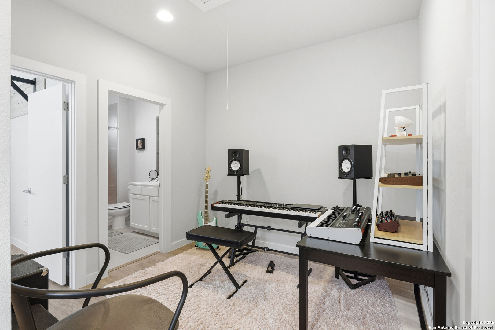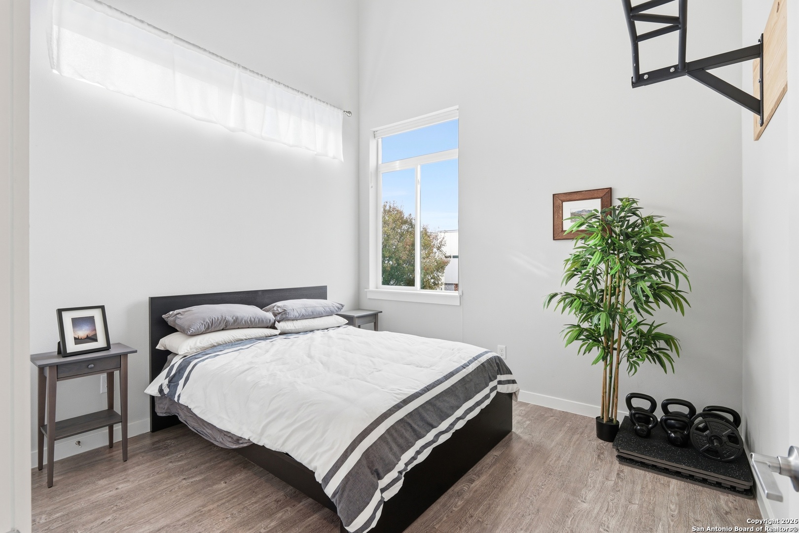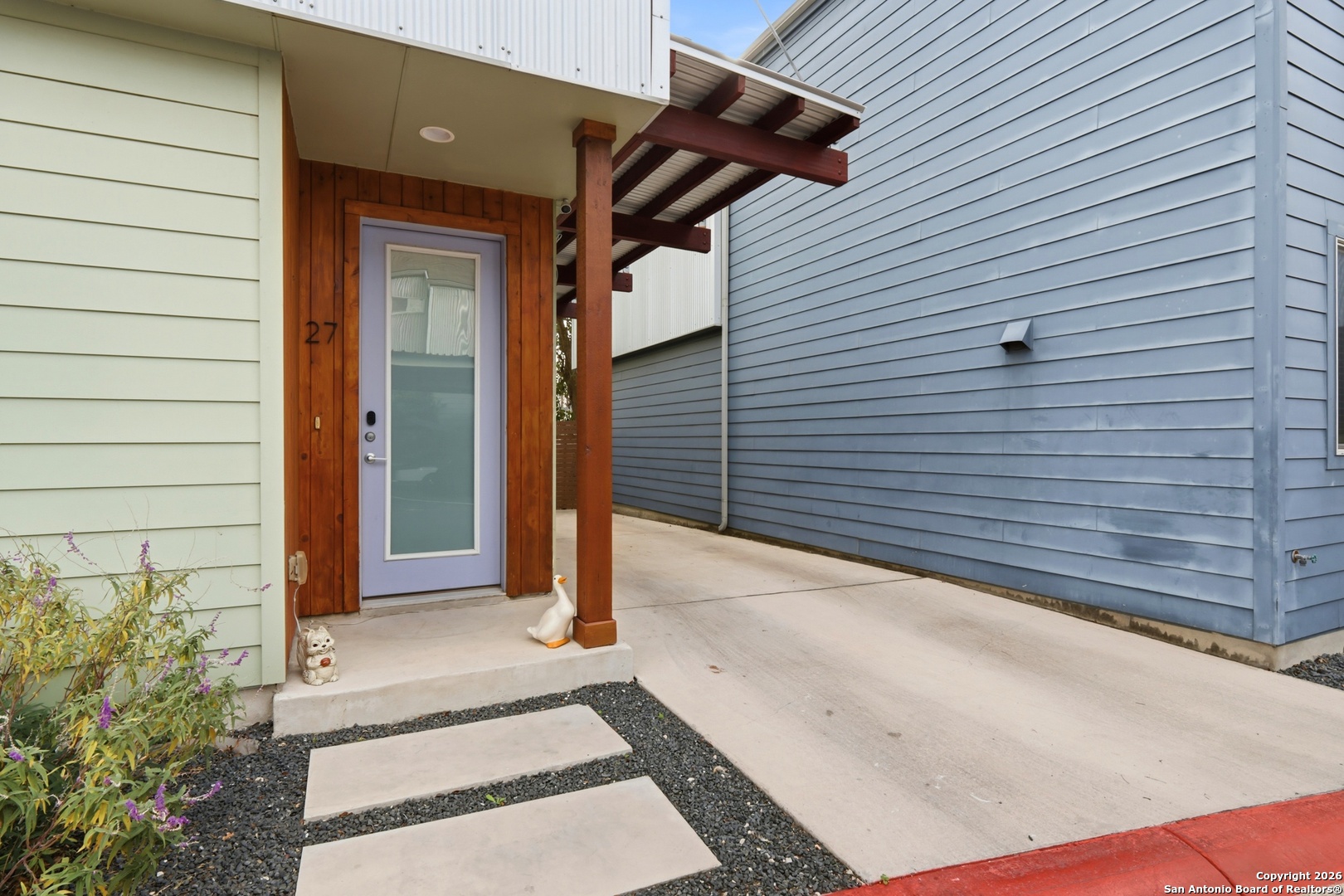 Located in the highly sought after Lone Star District in Southtown, this stylish two story condo in a gated community offers a blend of contemporary design and historic location with added security. The main living space features sleek stained concrete floors, high ceilings, and recessed lighting, creating an open and inviting atmosphere ideal for everyday living and entertaining. The kitchen is thoughtfully designed with stainless steel appliances, quartz countertops, a striking tile backsplash, a gas stove, and is complemented by a spacious island with breakfast bar seating. Upstairs there are two full bedrooms and bathrooms as well as a flex space that works great as an office. Additional enhancements include a double osmosis water filtration system, water softener, tankless water heater, and solar panels that all provide both comfort and efficiency. The unit has its own, private two-car driveway with a carport, and the community gives added peace of mind with gated entry and exit access. Enjoy true urban living with walkable access to the Riverwalk, popular restaurants, bars, and local hotspots, along with convenient access to highways 281, I-10, 90, and I-35. This residence offers a low maintenance lifestyle in one of the city's most dynamic and desirable locations.