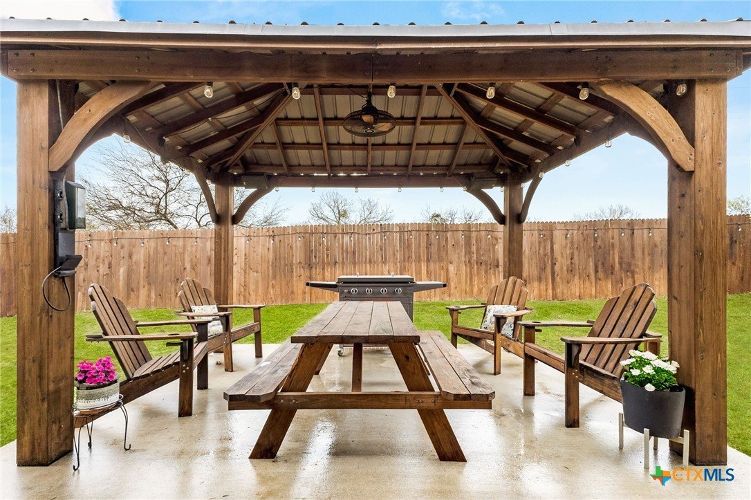 Welcome to this spacious three bedroom, two bathroom home situated on a corner lot with no back neighbors, offering extra privacy. The home features an open concept living and kitchen layout with 9 foot ceilings, creating a bright and airy feel that's perfect for everyday living and entertaining. Step outside to a covered patio and pergola on extended slab, ideal for relaxing or hosting gatherings. Additional features include a water softener, sprinkler system, and in-wall pest control system, providing convenience and ease of maintenance. With its convenient location, thoughtful features, and inviting layout, this home offers a great opportunity for anyone looking for comfort, privacy, and functionality all in one.