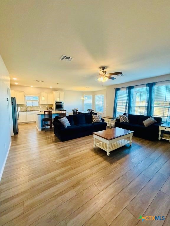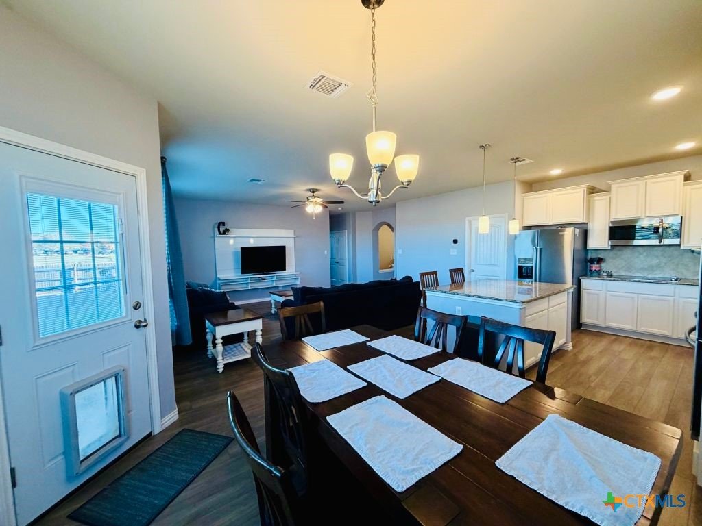 This stunning 5-bedroom, 3-bath home in the sought-after Yowell Ranch community offers more than 3,300 square feet of thoughtfully designed living space. Built in 2018, it highlights elegant architectural details, including interior arches and a seamless, open-concept layout that blends sophistication with everyday comfort—plus a versatile bonus room to fit your lifestyle. The main level features defined spaces for living and dining, providing both functionality and ease. The kitchen is a true centerpiece, complete with beautiful granite countertops, stainless steel appliances, and abundant cabinetry. Upstairs, a generous loft offers flexible options for a second living area, media room, home office, or play space. The spacious primary suite includes a private ensuite bath and an oversized walk-in closet for added convenience. Step outside to relax or entertain under the covered patio, overlooking the expansive backyard. Ideally located near Fort Hood, Killeen–Fort Hood Airport, shopping, and major highways, this home offers both accessibility and comfort. Enjoy being just minutes from neighborhood amenities including the pool, splash pad, basketball courts, playground, and walking trails. Contact us today to schedule your private showing.