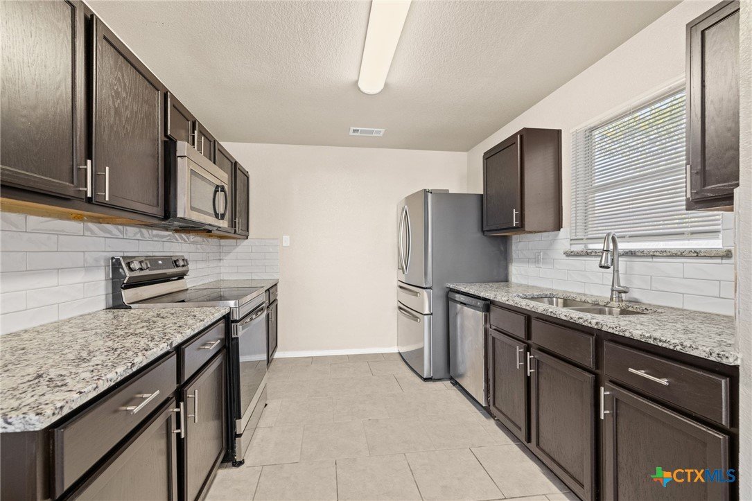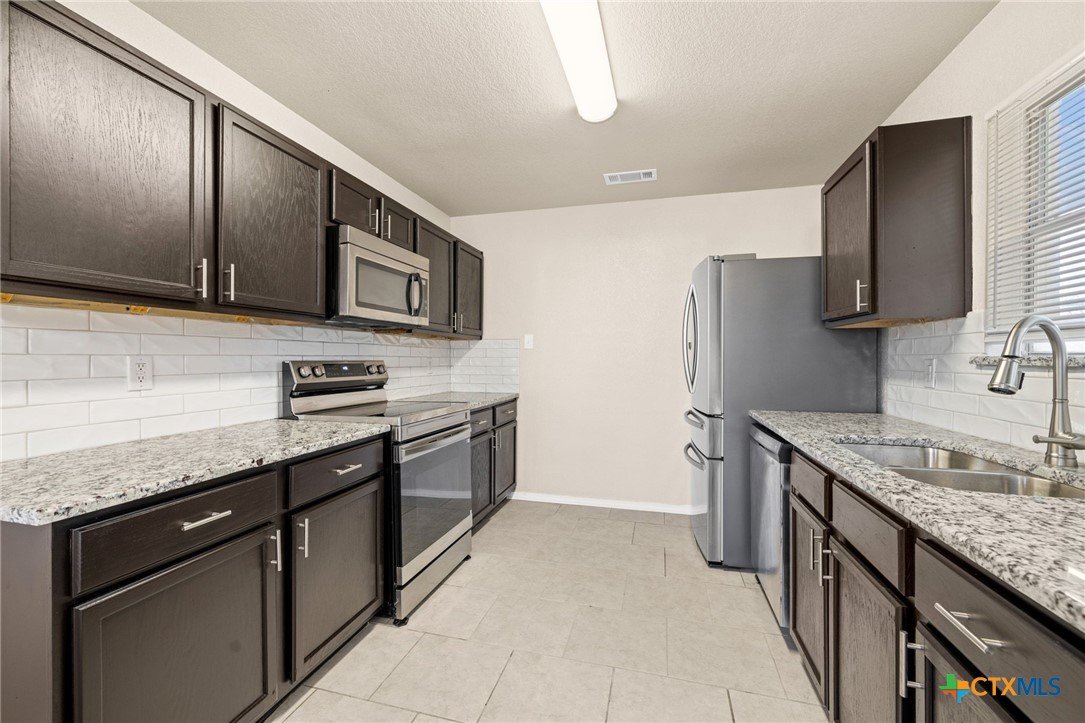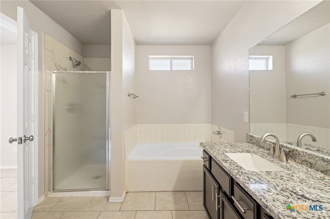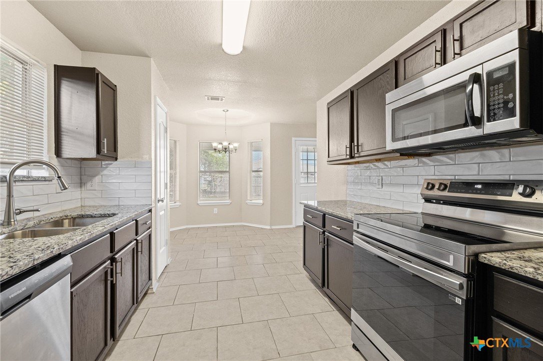 This spacious 5-bedroom, 2-bathroom home offers exceptional comfort and style on a large corner lot. Featuring a 2-car garage and an expansive covered patio, this property provides generous indoor and outdoor living areas ideal for entertaining or relaxing. Inside, the home features ceramic tile flooring throughout and a cozy wood-burning fireplace in the living room. The kitchen is updated with new stainless steel appliances, new granite countertops, and the refrigerator conveys. The primary ensuite bathroom includes a separate walk-in shower, jetted tub, dual granite vanities, and a large walk-in closet. Additional upgrades include fresh interior paint, fresh exterior paint, new granite countertops throughout, stainless steel appliances, ceramic tile flooring, new light fixtures, a 4-year-old HVAC system, and a new architectural impact-resistant shingle roof. The location also offers convenient access to a variety of amenities, including nearby parks, walking trails, shopping centers, restaurants, fitness facilities, entertainment options, schools, medical services, and major commuting routes. With its spacious layout, modern updates, and oversized corner lot, this property is move-in ready and full of charm.