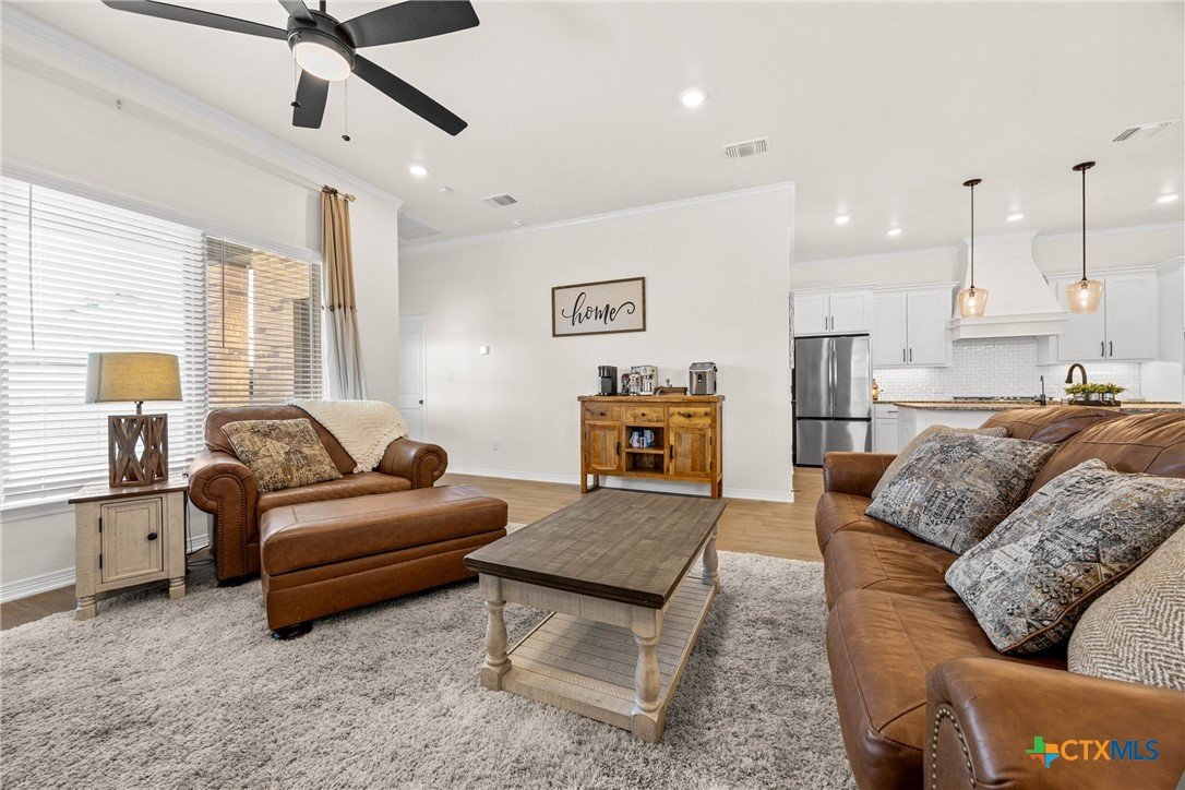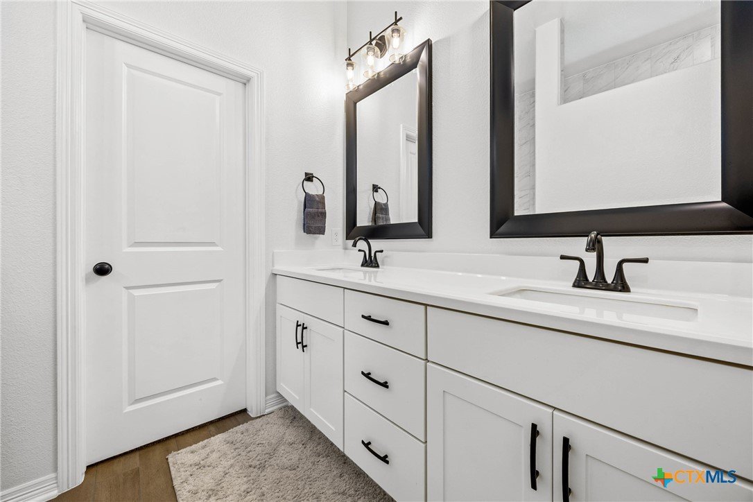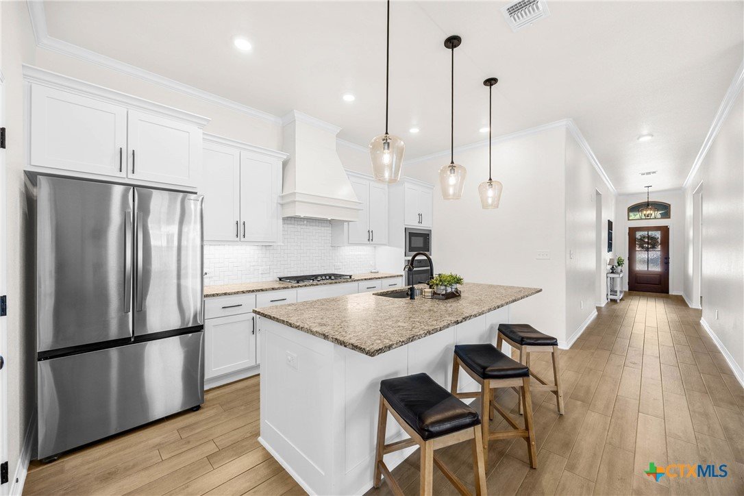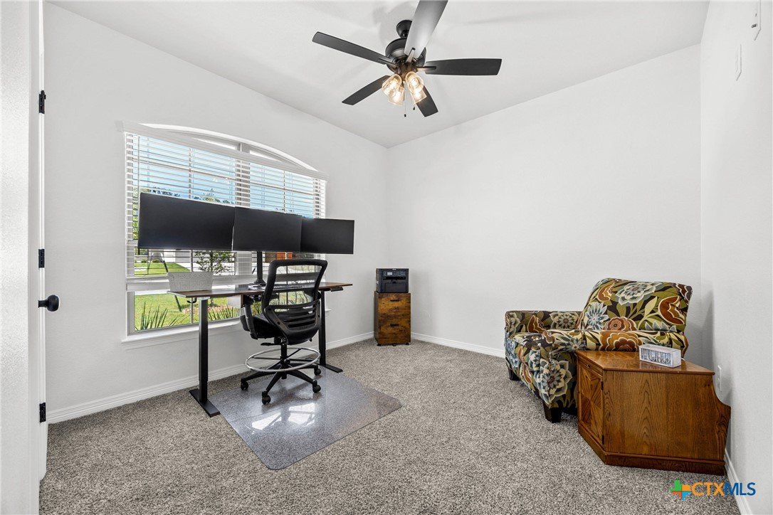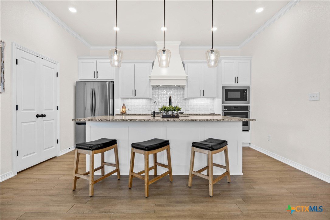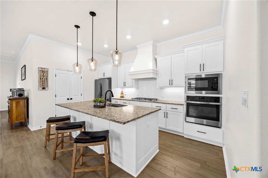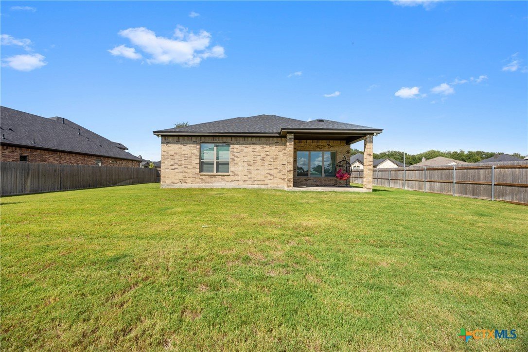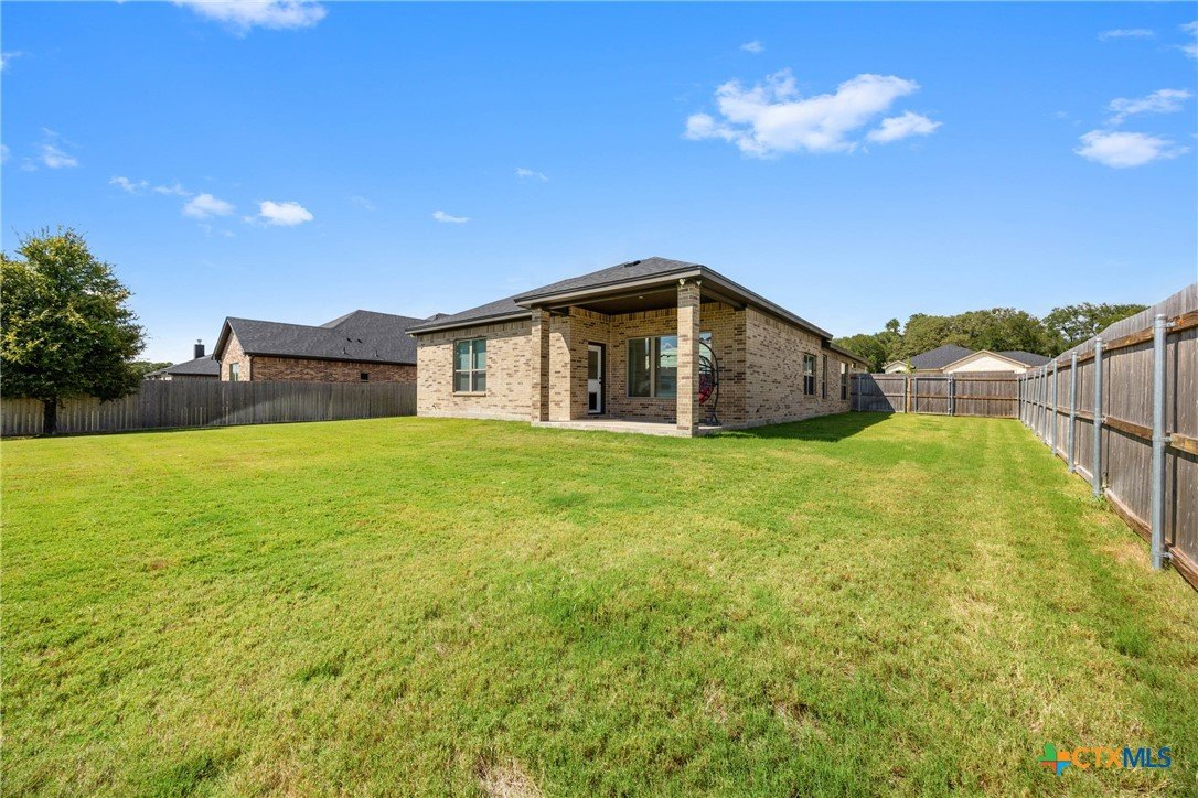 Built in 2023 by Carothers Exec. Homes - This 4-bedroom, 2-bath home with a versatile flex space offers a thoughtful blend of modern finishes and purposeful upgrades throughout. The layout flows comfortably from room to room, creating inviting spaces for daily living and gathering. The kitchen features leathered granite countertops, soft-close cabinetry, and a layout that connects naturally to the main living area. Designed for both functionality and ease. A series of smart enhancements elevate the experience of living here, including a whole-home water softener system, a Bluetooth-activated garbage disposal button, a two-way reverse osmosis faucet with a live water-quality display, and a WiFi thermostat compatible with Siri, Alexa, and Google. The tray-lit ceiling in the suite adds an elegant detail, while the WiFi-enabled garage door openers with built-in cameras provide remote access and monitoring. The covered patio is comfortable and ideal for enjoying time outdoors. Situated close to medical facilities, groceries, dining, and shopping, this property combines comfort, accessibility, and modern convenience in a desirable Temple location.