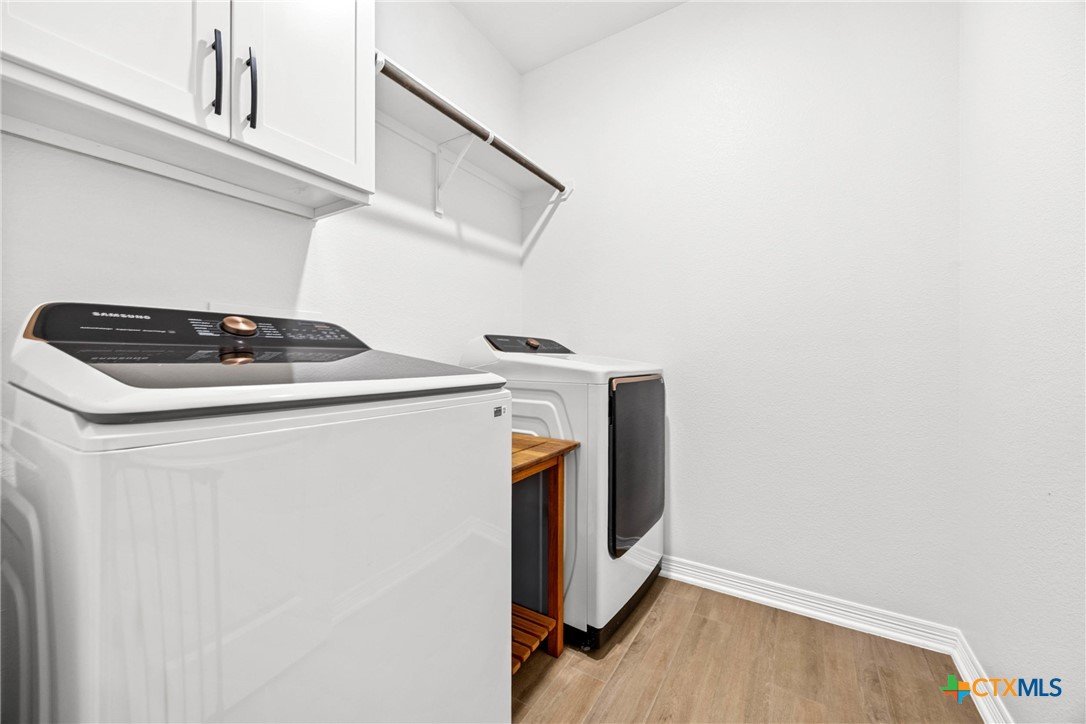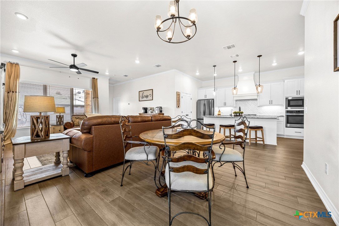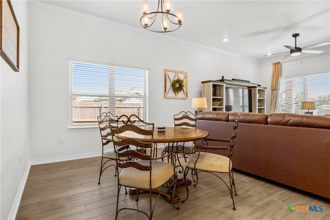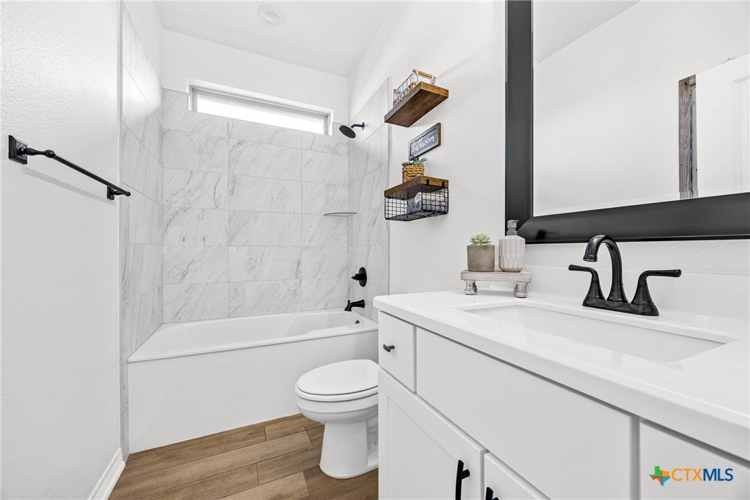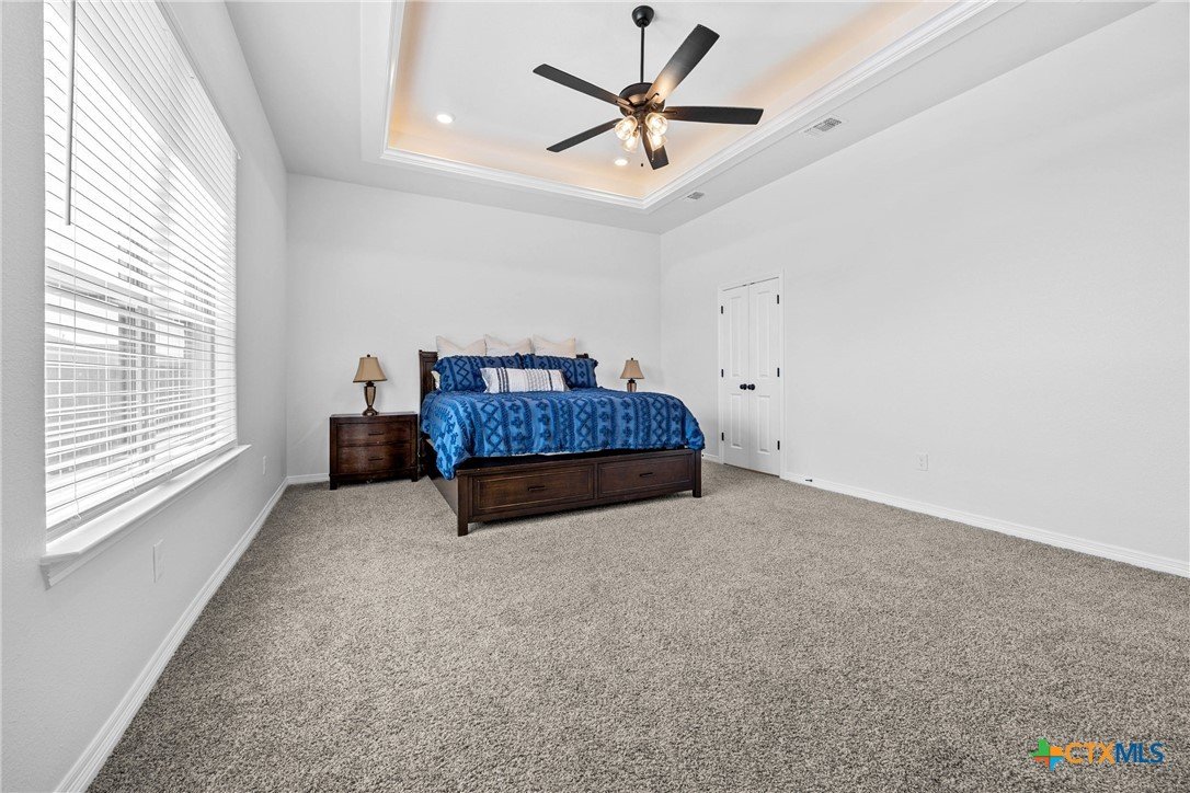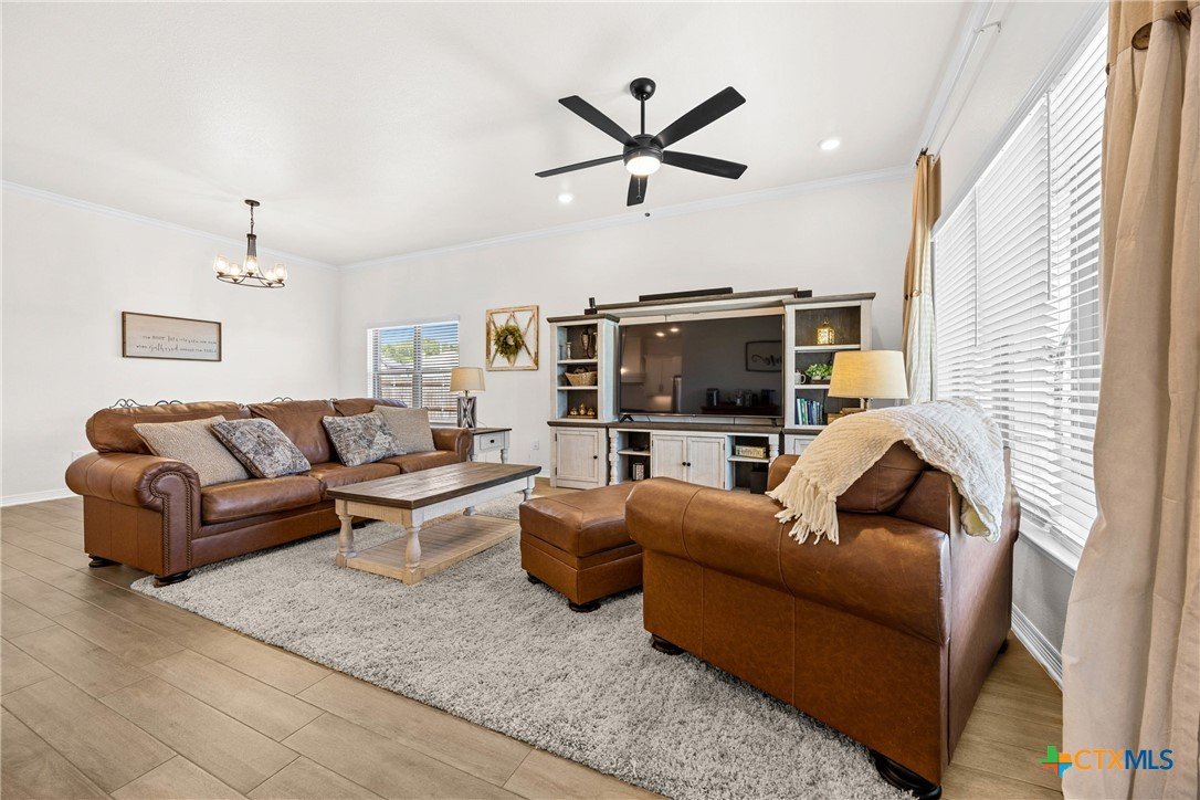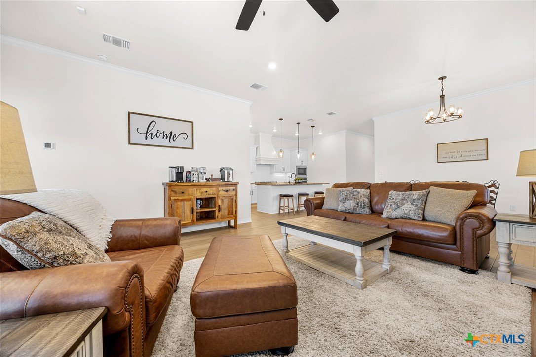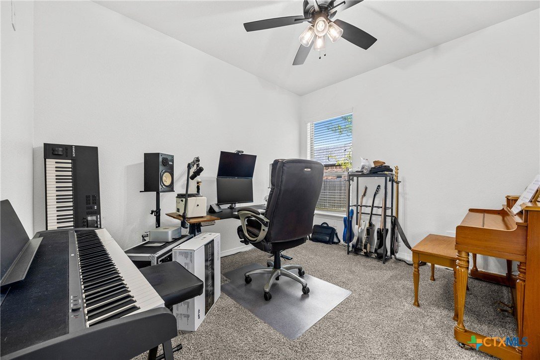 Built in 2023 by Carothers Exec. Homes - This 4-bedroom, 2-bath home with a versatile flex space offers a thoughtful blend of modern finishes and purposeful upgrades throughout. The layout flows comfortably from room to room, creating inviting spaces for daily living and gathering. The kitchen features leathered granite countertops, soft-close cabinetry, and a layout that connects naturally to the main living area. Designed for both functionality and ease. A series of smart enhancements elevate the experience of living here, including a whole-home water softener system, a Bluetooth-activated garbage disposal button, a two-way reverse osmosis faucet with a live water-quality display, and a WiFi thermostat compatible with Siri, Alexa, and Google. The tray-lit ceiling in the suite adds an elegant detail, while the WiFi-enabled garage door openers with built-in cameras provide remote access and monitoring. The covered patio is comfortable and ideal for enjoying time outdoors. Situated close to medical facilities, groceries, dining, and shopping, this property combines comfort, accessibility, and modern convenience in a desirable Temple location.