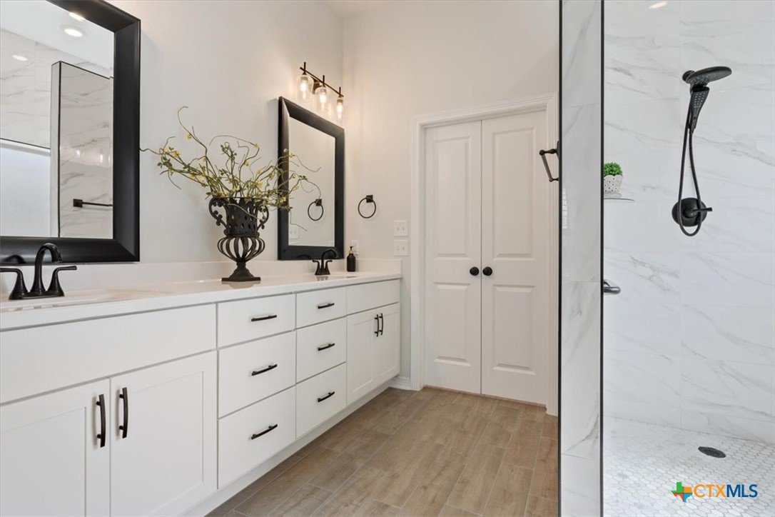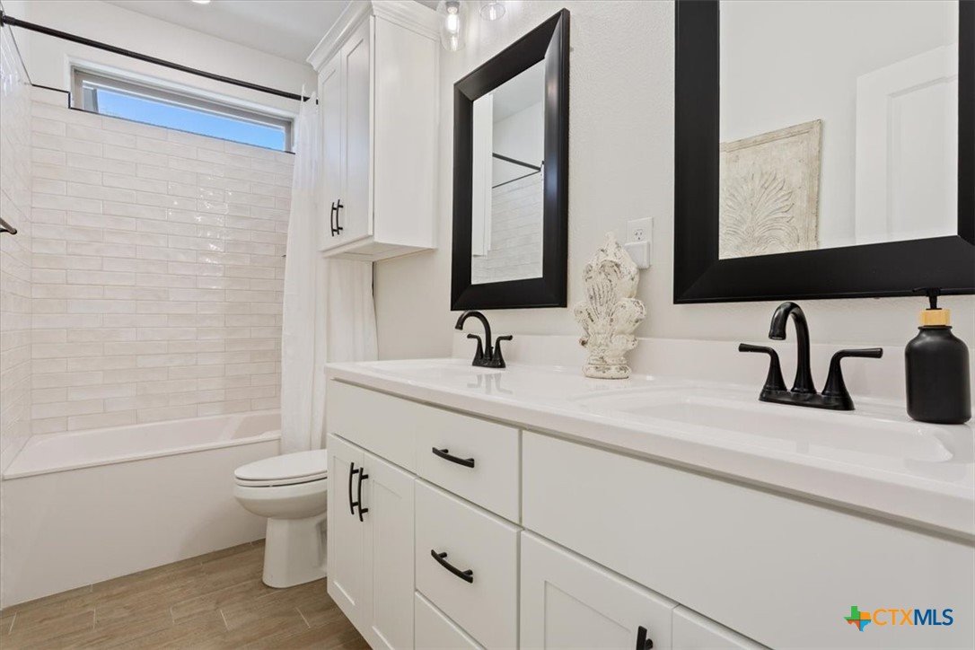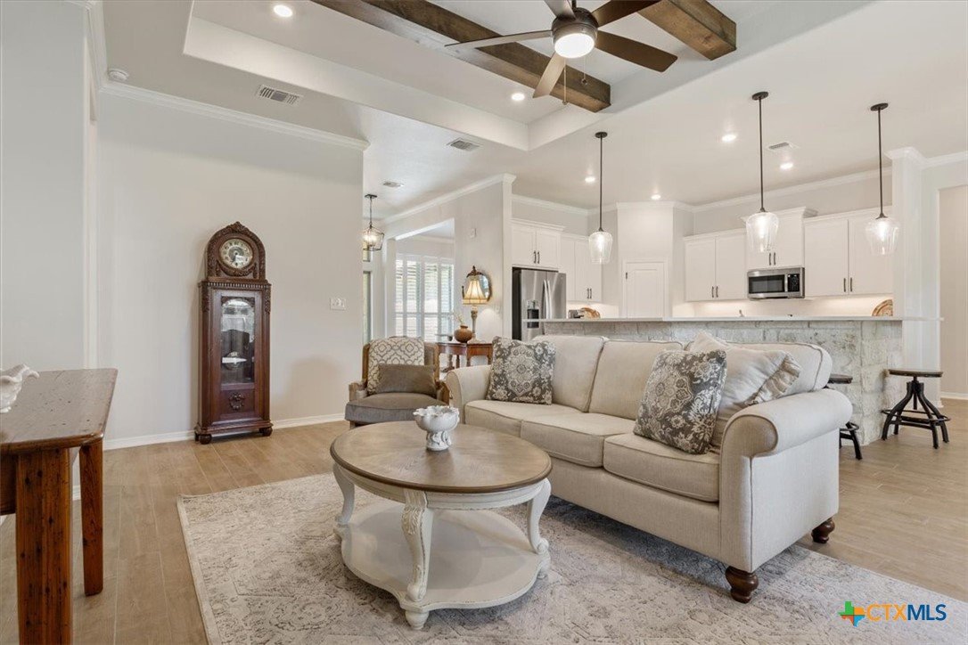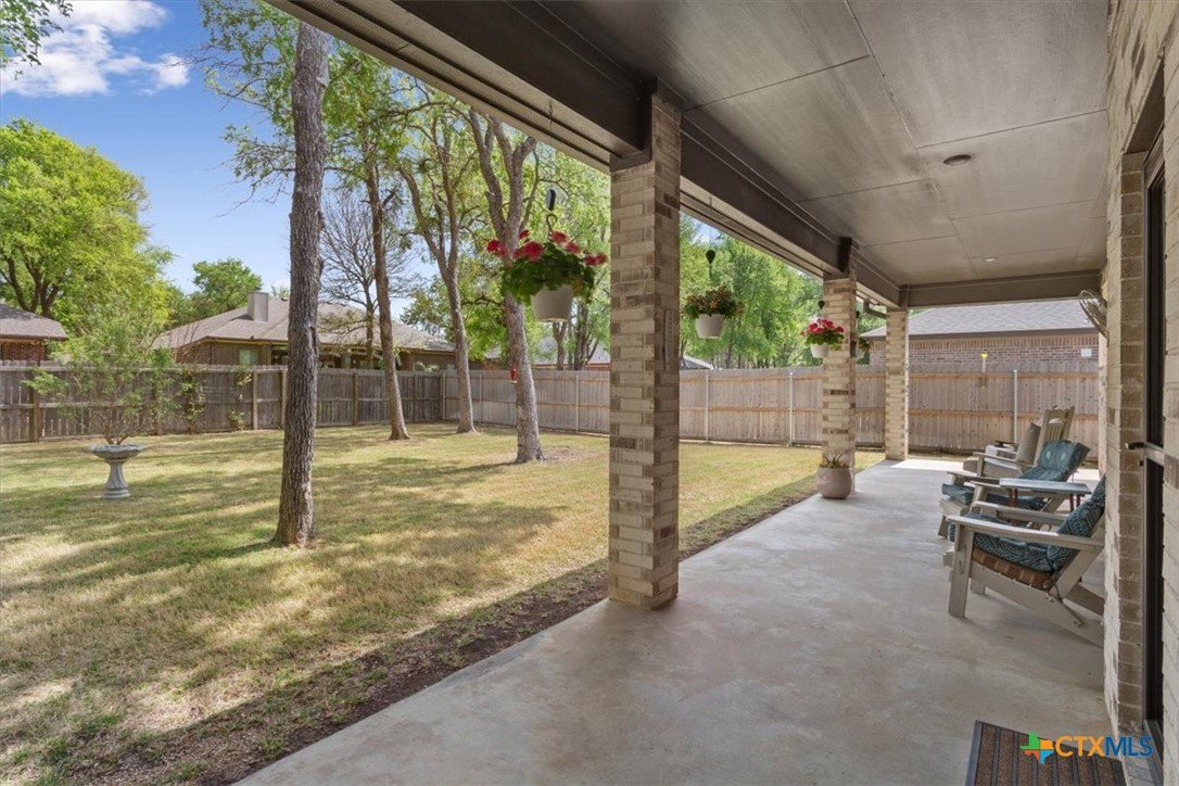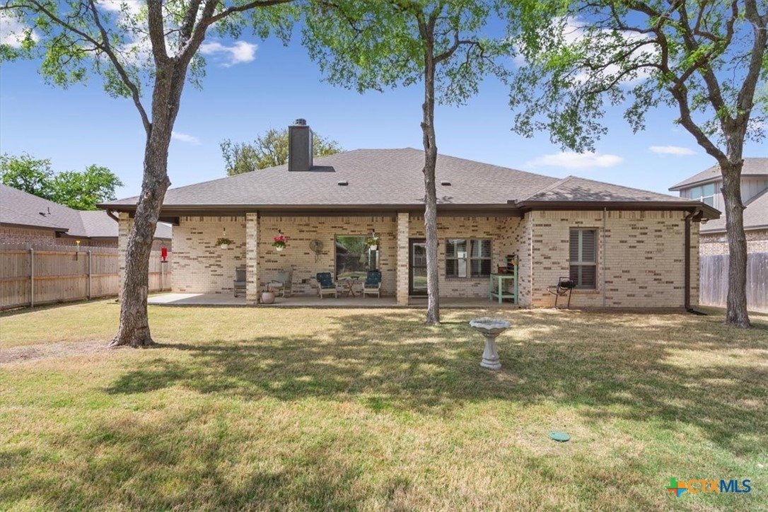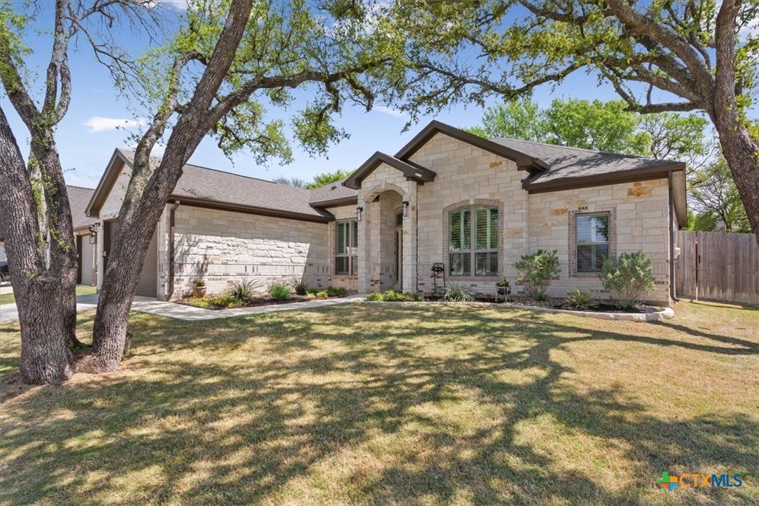 Mature trees front and back and generous, cooling shade make this immaculate 4-bedroom, 2.5-bath home unforgettable. Beautifully maintained and spacious, the home includes a dedicated study and numerous thoughtful upgrades — tile flooring throughout, plantation shutters on every window, and a fully remodeled primary bath with a large walk-in shower and built-in cabinetry for extra storage. The bright, open-concept living area is flooded with natural light and centers on a cozy stone fireplace, flowing seamlessly into the gourmet kitchen. The kitchen features custom soft-close cabinets and drawers, granite countertops, abundant workspace, and ample room for entertaining. Outside, enjoy a huge covered back patio overlooking the shaded backyard and a brand-new 16x16 storage shed — perfect for tools, hobbies, or lawn equipment. This move-in-ready home blends comfort, style, and convenience in a desirable Belton location close to excellent schools, shopping, dining, Lake Belton, and everyday amenities.