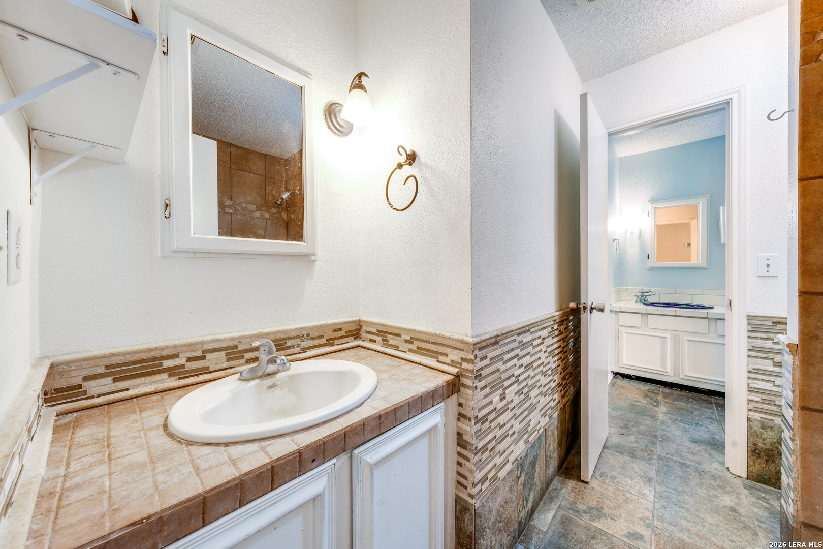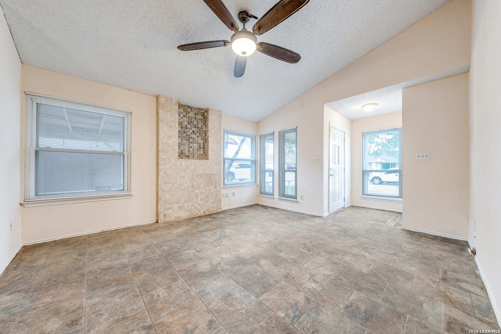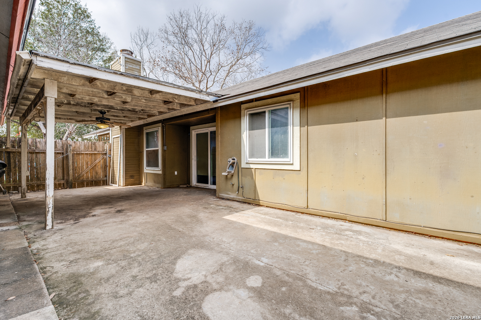 Charming home in the Stoneridge neighborhood. The home is welcoming and greets you with a covered patio at the front door. The living space allows for ope living / dining combo. The home features 1 bathroom that jack and jills from the primary to the living space but there is a second sink and vanity area that leads to the primary. Sliding glass door leads to the large covered patio area and a back yard that is a blank slate and ready for the new owners vision. Neighborhood features include swimming pool, recreational park, tennis courts and a neighborhood entrance trail to McAllister park. 2 neighborhood entrances for easy access to major highways, SA international airport as well as retail, dining and entertainment.