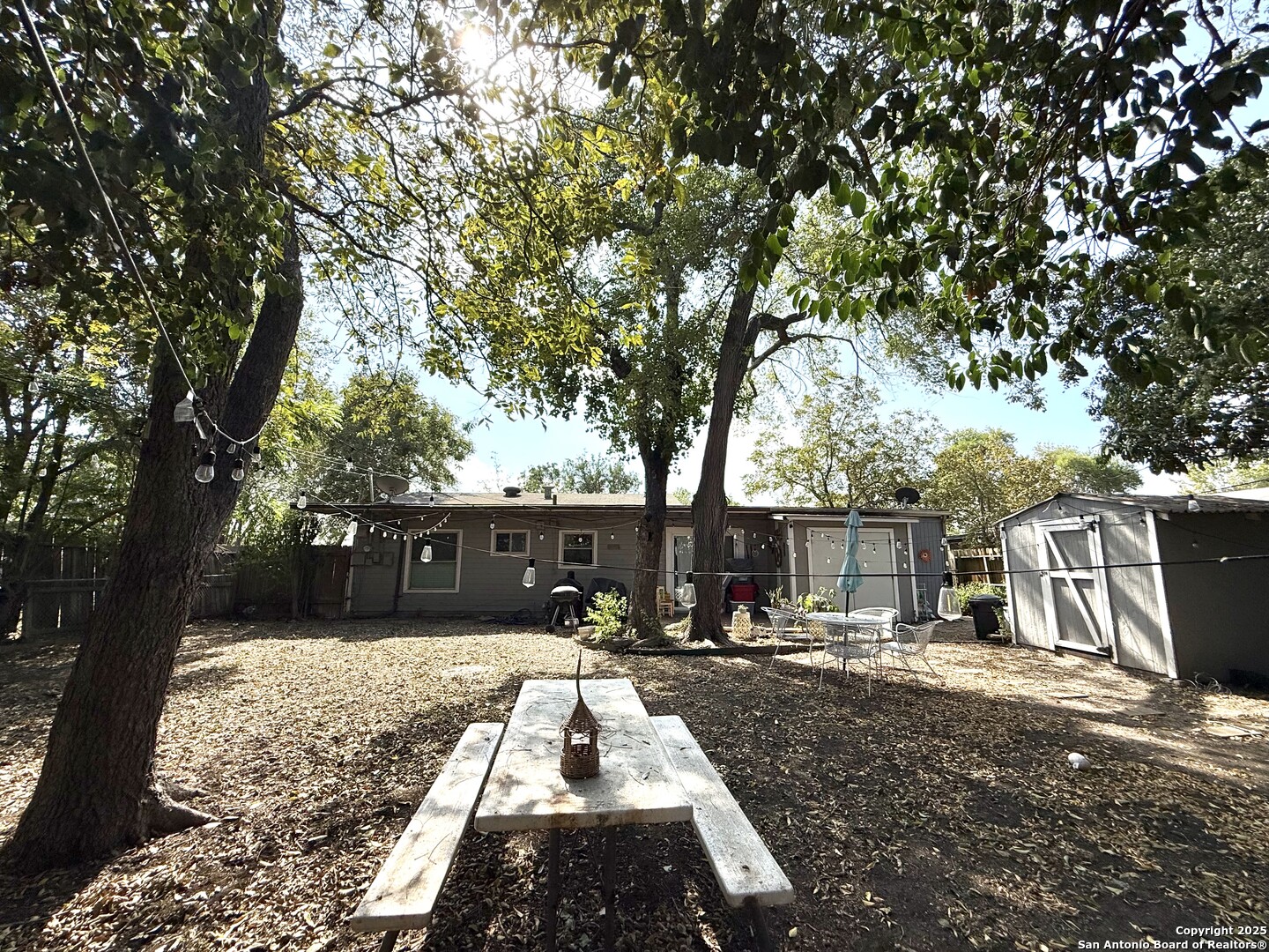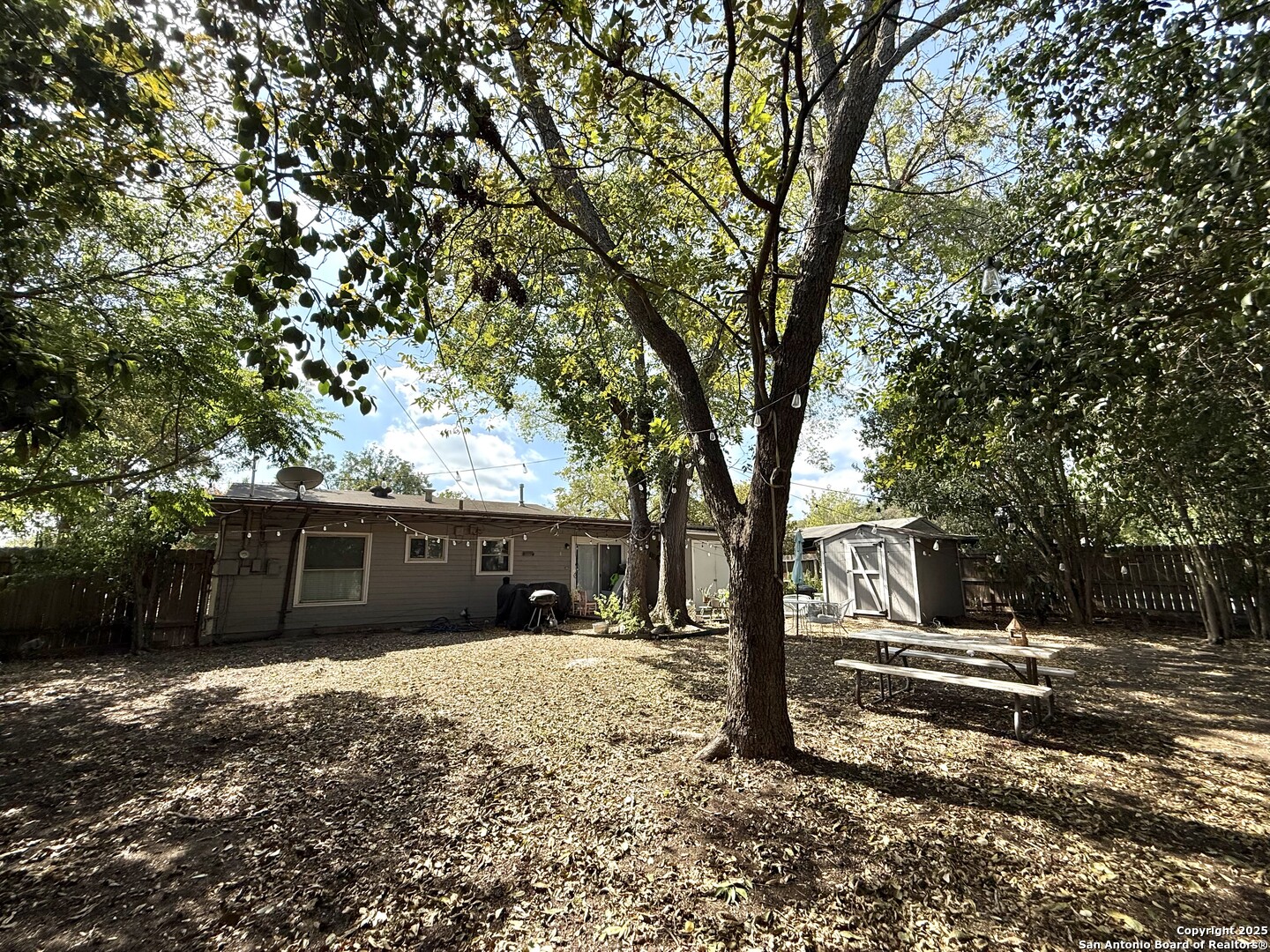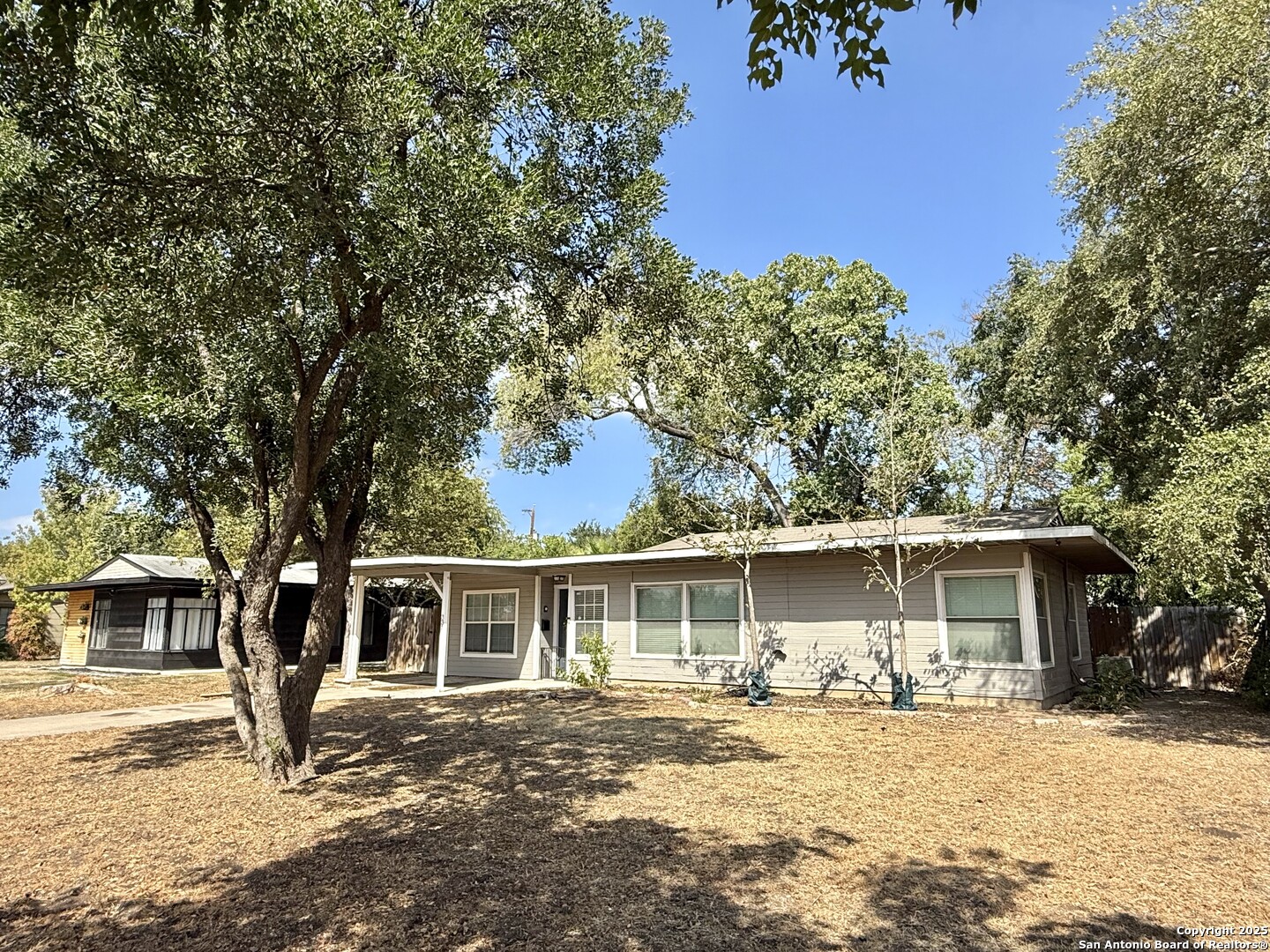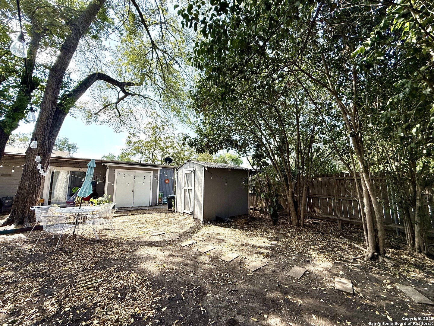 Adorable 1,000 sq ft cottage in top-rated Alamo Heights ISD-ideal for first-time buyers, downsizers, or anyone seeking an affordable entry into this sought-after school district. Step inside to warm laminate wood floors, granite counters, stainless appliances, and handy built-in shelving in the living room. The updated bathroom and walk-in closet in the primary bedroom offer practical comfort. Evenings are best spent on the backyard patio, where the oversized lot and mature trees provide plenty of space and shade. Large fenced back yard is great for pets! A custom storage shed and separate utility area add useful extras. This home may be compact, but its smart layout makes it feel surprisingly spacious. Conveniently located near shopping and restaurants, it's a versatile gem with endless potential.