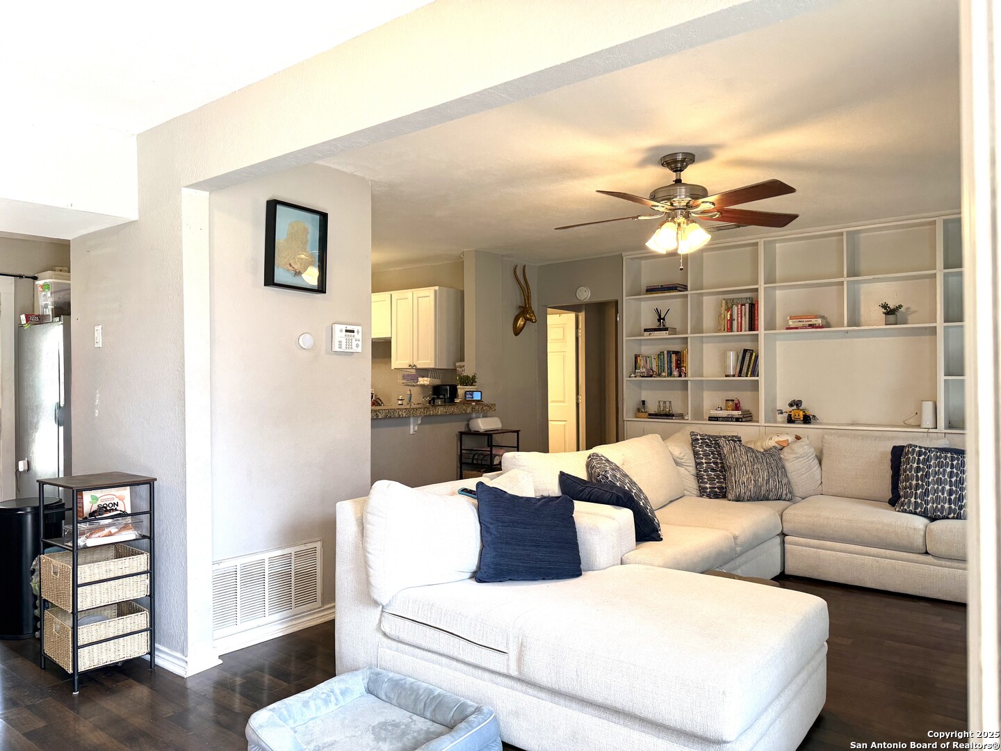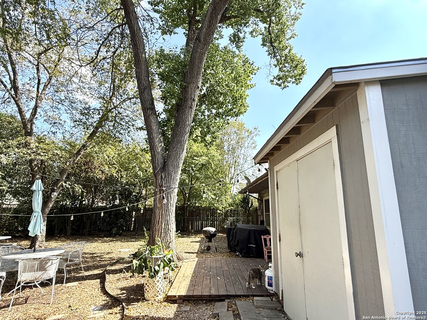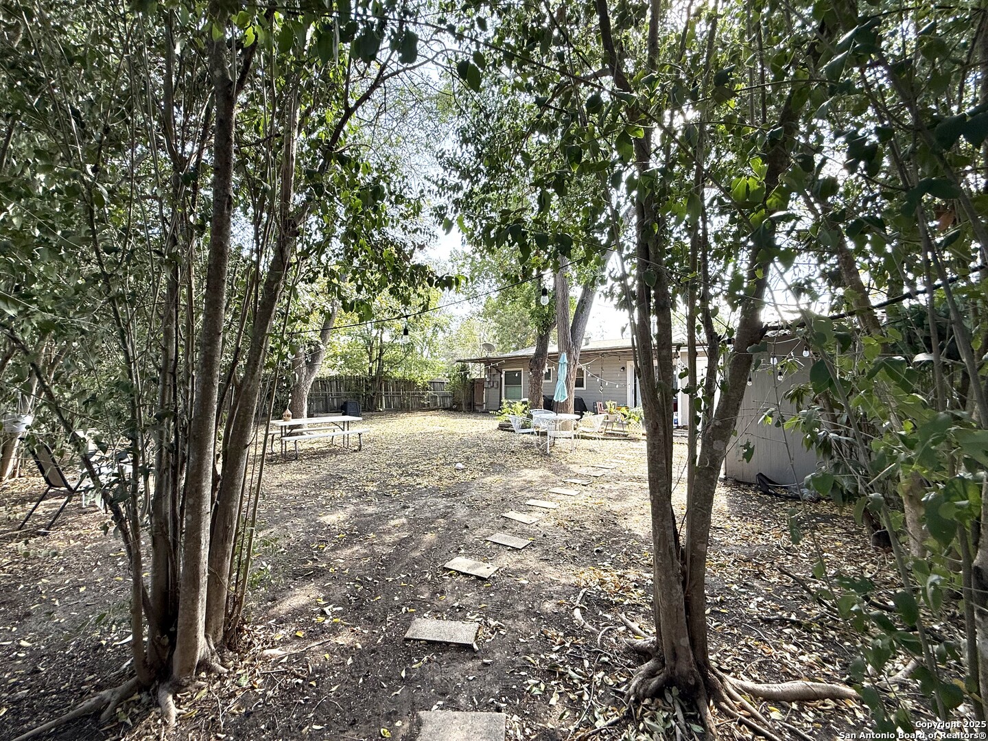 Adorable 1,000 sq ft cottage in top-rated Alamo Heights ISD-ideal for first-time buyers, downsizers, or anyone seeking an affordable entry into this sought-after school district. Step inside to warm laminate wood floors, granite counters, stainless appliances, and handy built-in shelving in the living room. The updated bathroom and walk-in closet in the primary bedroom offer practical comfort. Evenings are best spent on the backyard patio, where the oversized lot and mature trees provide plenty of space and shade. Large fenced back yard is great for pets! A custom storage shed and separate utility area add useful extras. This home may be compact, but its smart layout makes it feel surprisingly spacious. Conveniently located near shopping and restaurants, it's a versatile gem with endless potential.