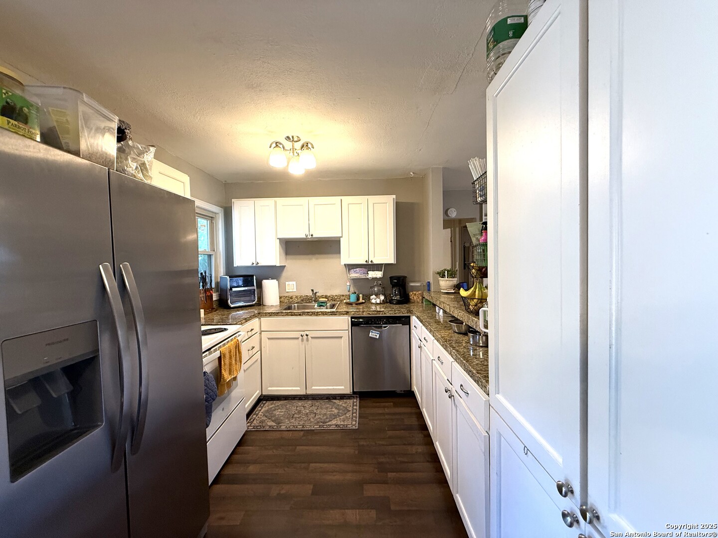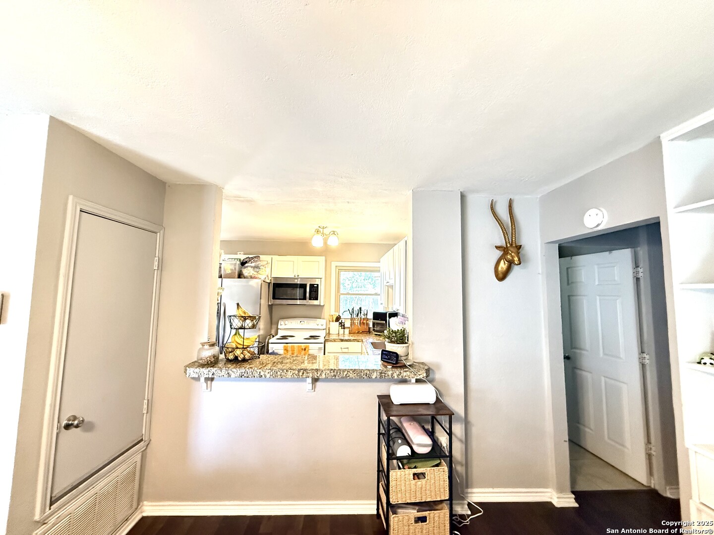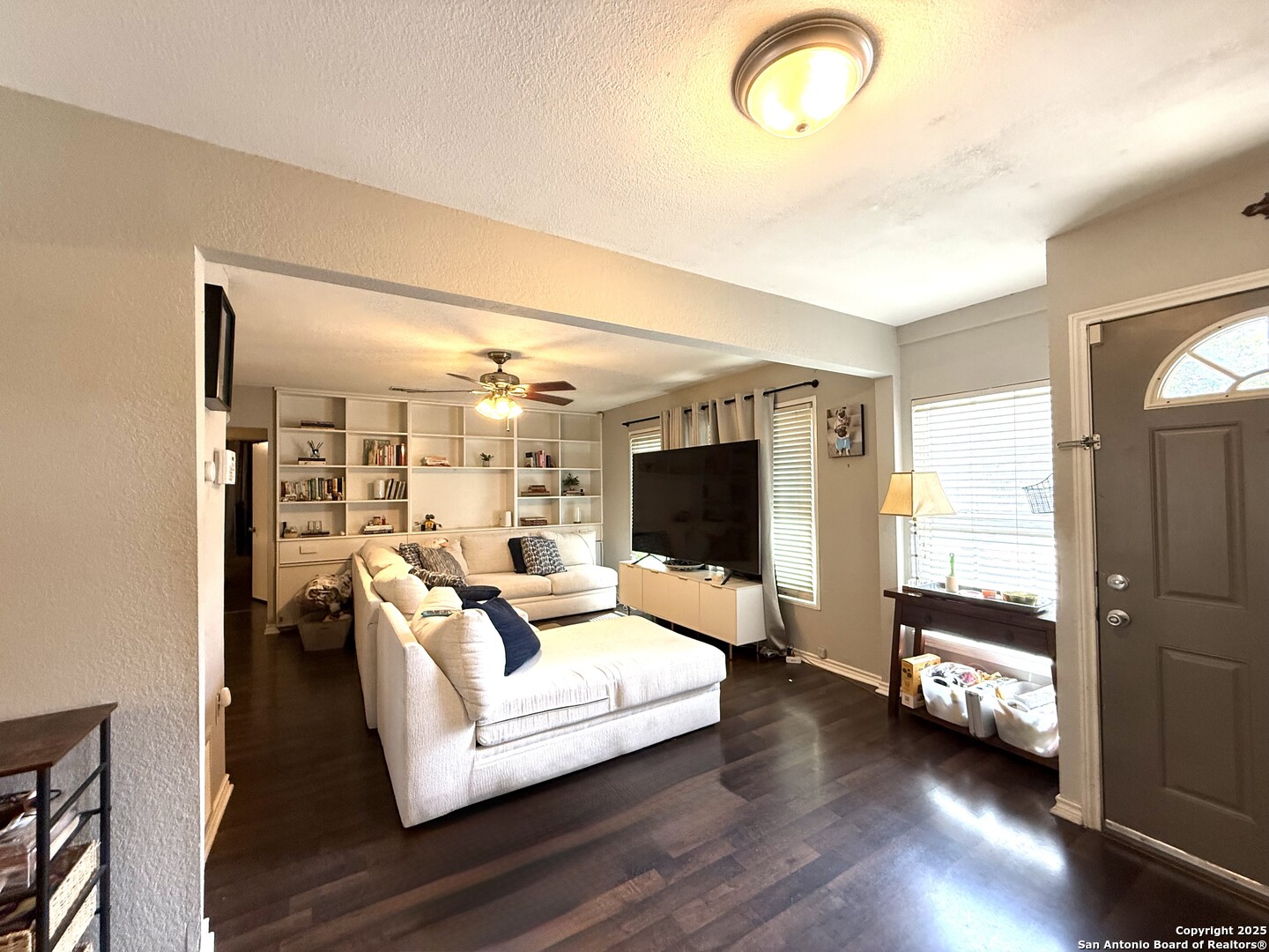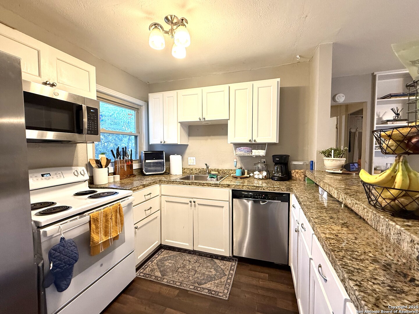 Adorable 1,000 sq ft cottage in top-rated Alamo Heights ISD-ideal for first-time buyers, downsizers, or anyone seeking an affordable entry into this sought-after school district. Step inside to warm laminate wood floors, granite counters, stainless appliances, and handy built-in shelving in the living room. The updated bathroom and walk-in closet in the primary bedroom offer practical comfort. Evenings are best spent on the backyard patio, where the oversized lot and mature trees provide plenty of space and shade. Large fenced back yard is great for pets! A custom storage shed and separate utility area add useful extras. This home may be compact, but its smart layout makes it feel surprisingly spacious. Conveniently located near shopping and restaurants, it's a versatile gem with endless potential.