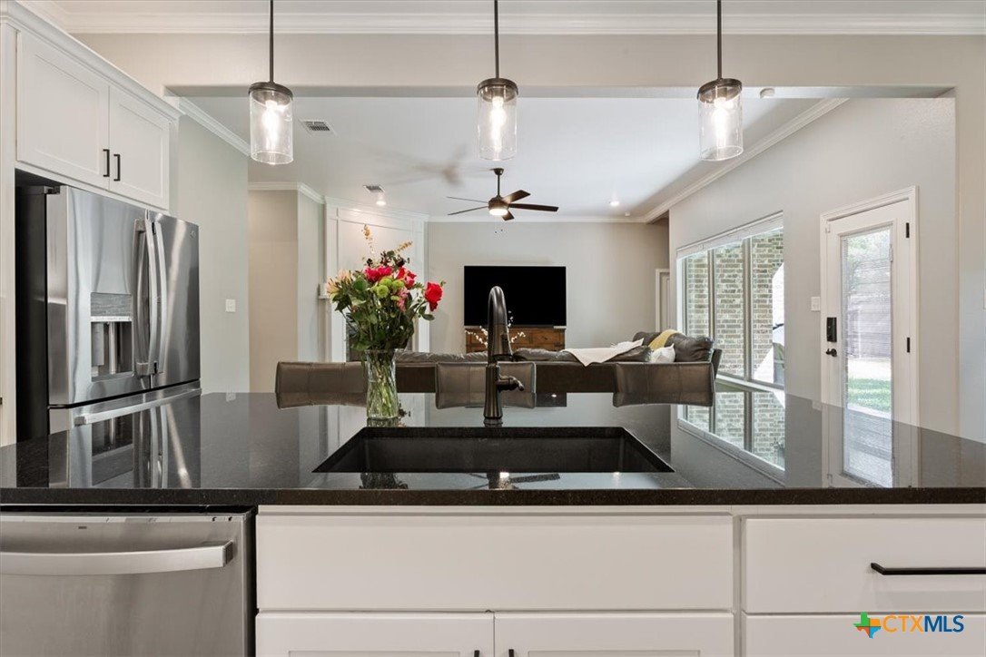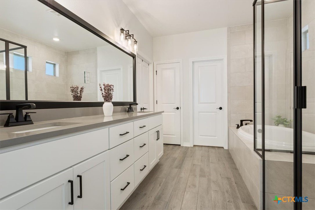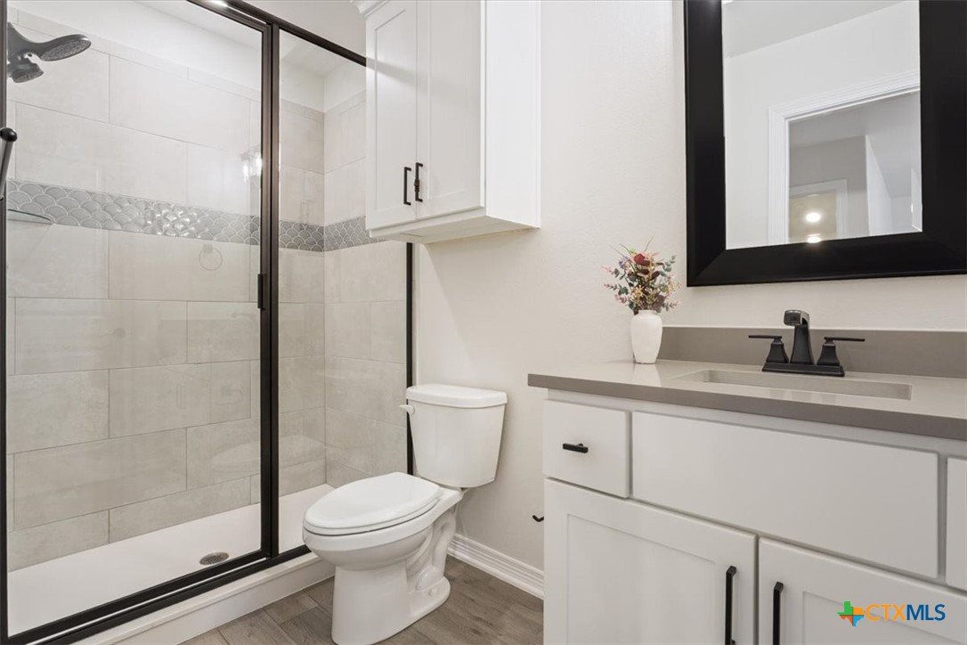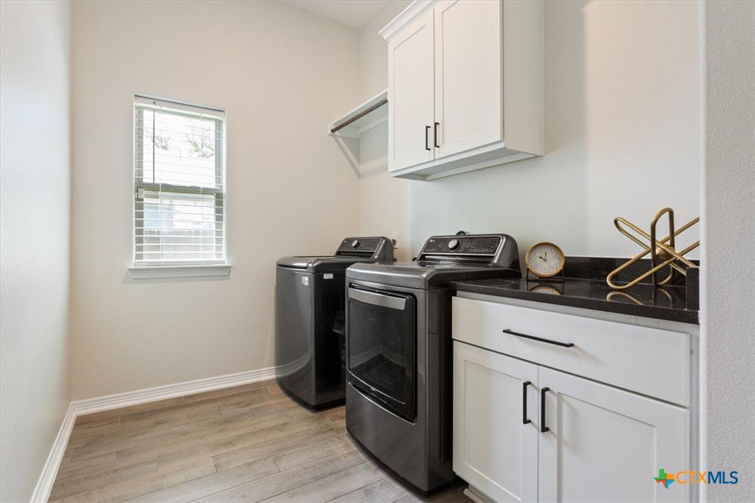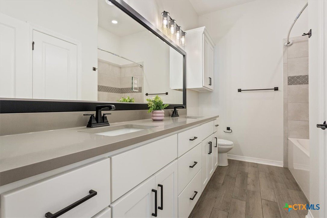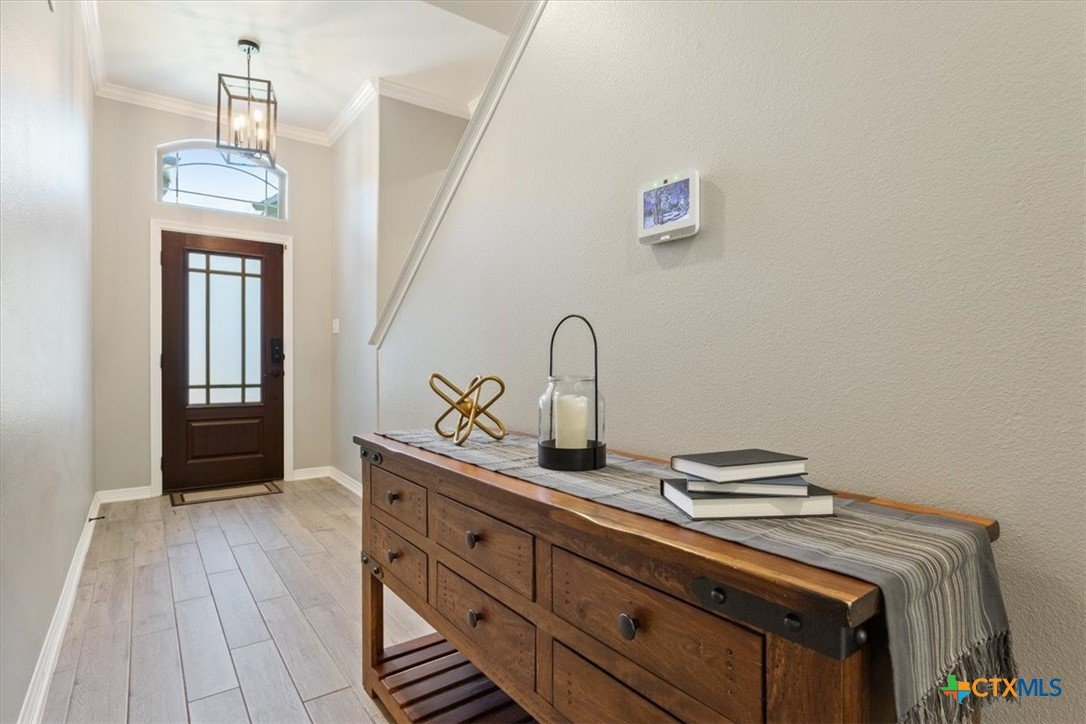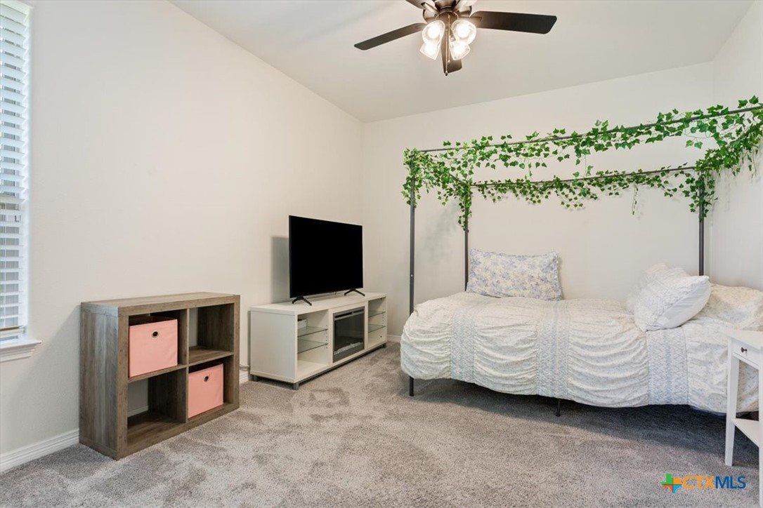 Immaculate Carothers Executive Home in sought-after Dawson Ranch near Lake Belton. This 5-bedroom, 3.5-bath home offers approximately 2,818 sq ft with a 3-car garage and is located in highly desirable Belton ISD. Designed for both functionality and style, the open-concept layout features quartz countertops in bathrooms, custom cabinetry, and upgraded fixtures throughout. The spacious living area flows seamlessly into the kitchen and dining spaces, making it ideal for everyday living and entertaining. The primary suite is a true retreat with tray ceiling detail and a spa-like bath that includes an oversized soaking tub, walk-in shower, dual vanities, and a large walk-in closet. Secondary bedrooms are generously sized, and the upstairs bonus space offers flexibility for a media room, home office, guest suite, or additional living area. Enjoy the outdoors with a covered patio overlooking a large, fully fenced backyard with Tuff Shed and mature trees, offering plenty of space for outdoor enjoyment or future additions. Community amenities include a neighborhood park, playground and hiking/dog trails. Conveniently located near Lake Belton with easy access to outdoor recreation, schools, shopping, and dining. Move-in ready and well-maintained, this home offers comfort, space, and a great location in one of Belton’s most desirable communities.