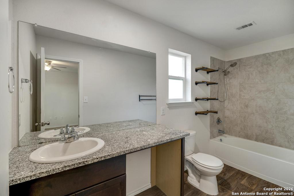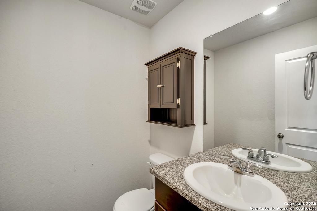 Welcome home to the Ellington floor plan, a thoughtfully designed two-story residence offering 1,508 square feet of spacious and comfortable living. This home features 3 bedrooms and 2.5 bathrooms, with an open-concept layout that begins at the entry and flows seamlessly into the expansive living area-perfect for entertaining family and friends. The living space connects to a large open kitchen and dining area, complete with a central island ideal for meal preparation and gathering. The first floor also includes a convenient half bath and a utility room with an additional large storage closet. Upstairs, you'll find the primary bedroom suite, two secondary bedrooms, and a full secondary bathroom. Each bedroom offers a walk-in closet for ample storage. Located in the new Stoney Creek Express Homes community, this home offers easy access to Hwy 90 and Loop 1604 and is just minutes from major employers including Lackland Air Force Base. Entertainment and family fun are close by with SeaWorld, Downtown San Antonio, and more just a short drive away.