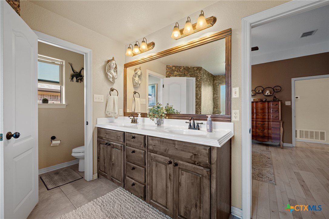 Welcome to this beautifully updated 1-story 4 bedroom, 2 bath home that perfectly blends comfort, style, and functionality. From the moment you walk in, you’ll appreciate the inviting archways, elegant crown molding, and a cozy corner wood-burning fireplace that creates the perfect focal point for relaxing evenings during cooler months. The spacious kitchen is truly the heart of the home, offering generous countertop space and an open layout that easily accommodates multiple cooks without feeling crowded. Recently upgraded granite countertops in the kitchen and bathrooms add a fresh, modern touch. The primary bedroom is impressively sized and comfortably fits large furniture, while all bedrooms feature newly installed water-resistant vinyl plank flooring for durability and style. Storage is abundant throughout the home with large closets and well-designed spaces to keep everything organized. Step outside to enjoy the tiled back cement porch, providing a private retreat ideal for morning coffee or evening gatherings. The front yard features new sod and refreshed landscaping with marble chips for low-maintenance curb appeal. Additional improvements include front and rear gutters, partial new fencing, updated interior paint throughout most rooms, new 10-year smoke detectors installed in 2025, and a replaced blower motor in the air conditioning unit for added peace of mind. This thoughtfully maintained home offers charm, upgrades, and everyday comfort all in one inviting package.