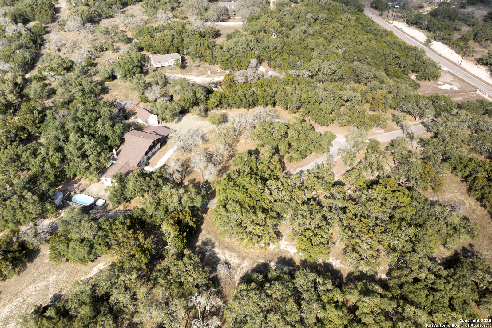 Nestled behind a gated entrance along Blanco Rd, this unique property offers privacy, space, and versatile living options on a beautifully treed lot. The main residence features 5 bedrooms, 2.5 bathrooms, and approximately 2,752 square feet of living space, highlighted by a welcoming stone accent exterior and mature oak trees that create a peaceful Hill Country setting. Inside, the living room showcases a cozy fireplace, perfect for relaxing or entertaining. The spacious kitchen offers generous counter space and ample cabinetry, making it ideal for everyday cooking and hosting gatherings. The primary suite is well-sized and includes an ensuite bathroom with a double vanity and a walk-in closet. Upstairs, a large loft provides flexible space for a game room, second living area, or home office. Additional interior features include a large laundry room with extra shelving for storage and functionality throughout the home. Step outside to enjoy the expansive backyard, designed for both relaxation and entertainment. The outdoor space features an inground pool, a storage shed, and plenty of room to enjoy the surrounding natural landscape. Adding even more value is a separate dwelling on the property, complete with its own bedroom, kitchen, living room, and a covered porch, making it ideal for guests, multigenerational living, or rental potential. This one of a kind property offers a rare combination of privacy, space, and flexibility in a scenic setting.