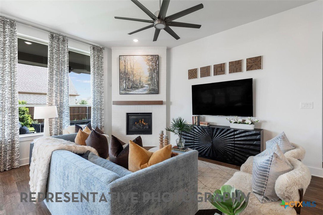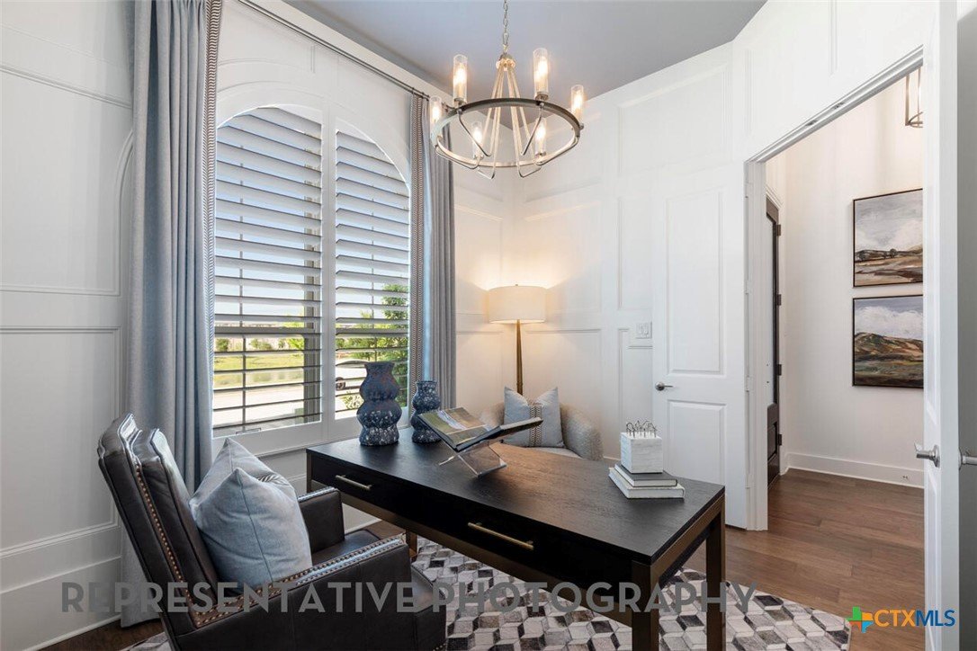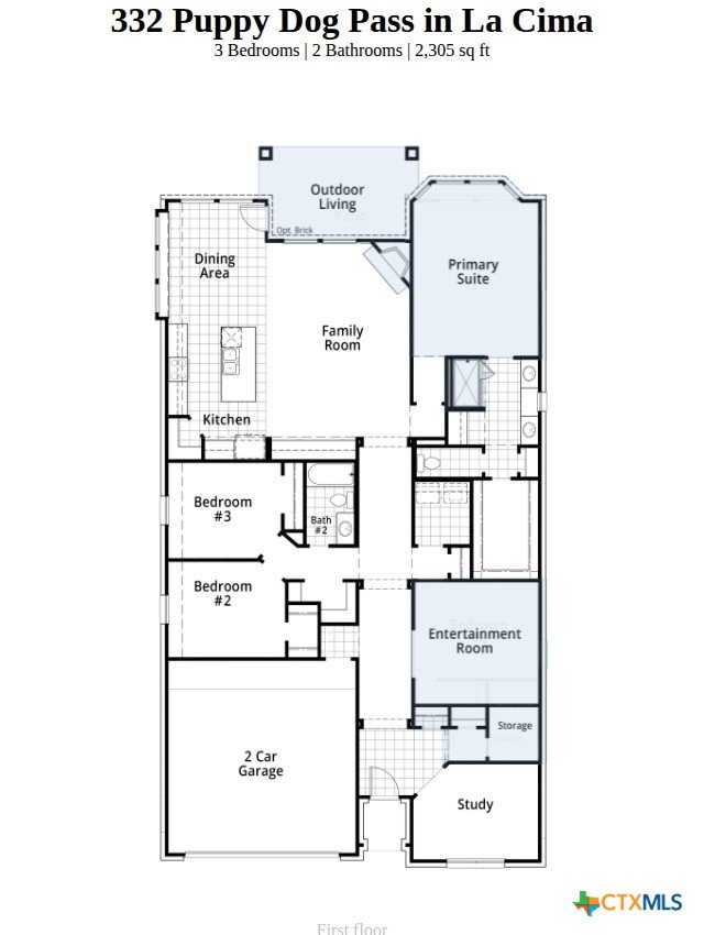 This single-story home has 3 bedrooms along with a formal study and a media room that is perfect for movie night or to watch the big football game. The family room has the upgraded fireplace option along with an elegant hutch to provide extra storage and countertop space when needed. This home has brick on all 4 sides and a back patio that will not get the late afternoon sun during the summer months. It is located less than a 10-minute walk to the amenity center which features 2 swimming pools and a full fitness center that can replace a monthly gym membership.
