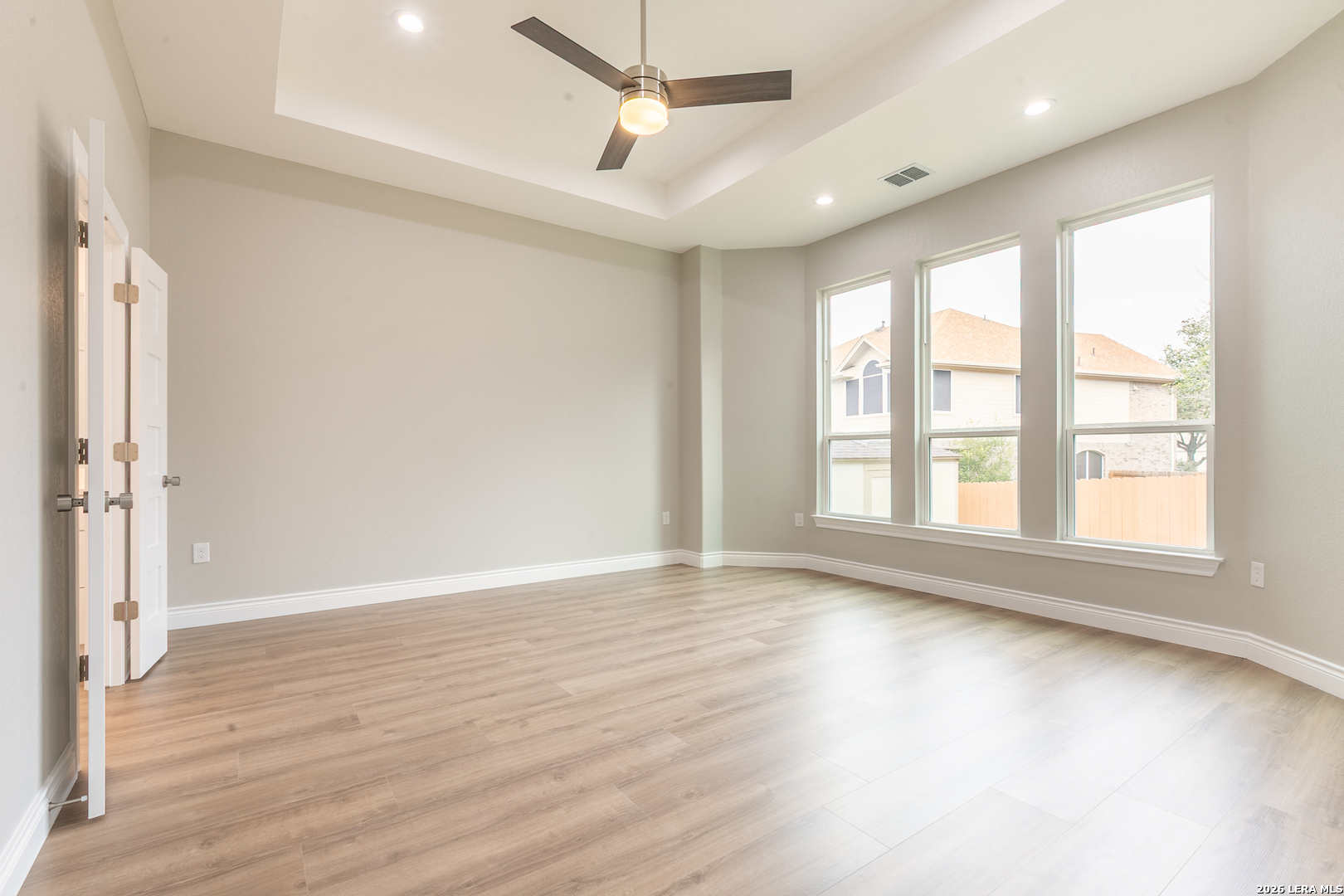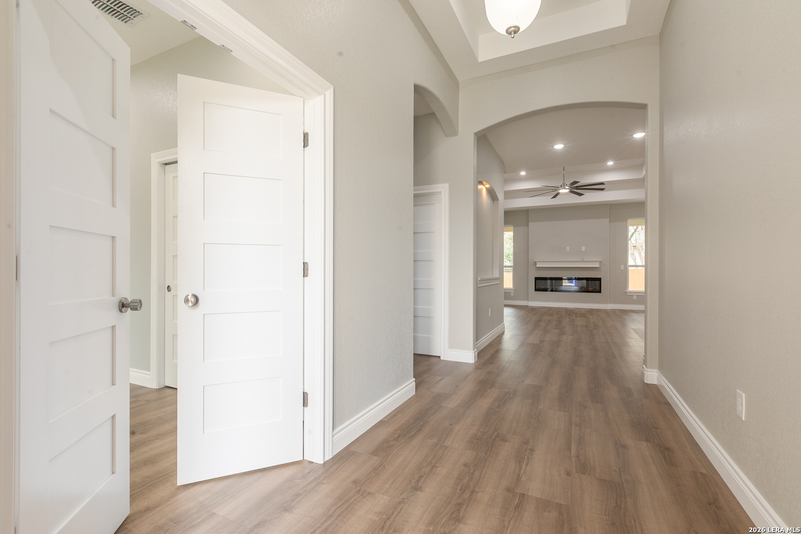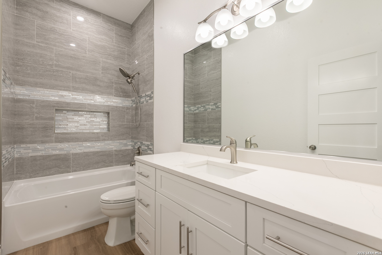 Located in the gated community of Westover Forest, this BRAND NEW recently completed transitional custom home, built on an existing foundation is perfectly set on a quiet cul-de-sac and offers over 2,000sqft of beautifully designed 1-story living. From the moment you enter the expansive foyer featuring a lighted art niche, you'll notice the exceptional craftsmanship, thoughtful details, and designer selections throughout. Enjoy an open-concept layout with luxury vinyl plank flooring throughout, a spacious family room with 12' coffered ceilings, adjustable LED recessed lighting, and a stunning encased floating electric fireplace-the perfect focal point for everyday living or entertaining. The gourmet island kitchen equally impressive with a breakfast bar, quartz countertops, s/s appliances, gas cooking, 42" cabinetry and detailed designer tiled backsplash not to mention, a huge pantry. A generous dining nook provides plenty of room for larger gatherings. The private owner's suite is a true retreat with coffered ceiling, recessed lighting, and a bay window. The spa-inspired bath offers a dramatic floor-to-ceiling tiled shower with rain head and handheld sprayer, sep vanities with quartz countertops, and a well-designed walk-in closet maximizing usable space & storage. This home features 3 bdrms, 2 baths plus, a study/office that could easily be used as 4th bdrm option. Secondary bedrooms are spacious and well situated away from primary suite. Additional highlights include raised panel doors throughout, a convenient hidden mudroom closet and a dedicated panel w/wiring for internet/security cameras. Enjoy the outdoors under covered patio with porcelain tile flooring, wood-planked ceiling & outdoor fan. Shed has refreshed woodwork & paint. Builder has left landscaping open so the new owners can create their own personalized outdoor design. This home is the perfect blend of luxury, comfort, and timeless style in one of the areas most desirable communities. Additional Inclusions: Spray foam insulation in exterior walls including garage, an insulated garage door, flooring in attic, ultra quiet jackshaft garage door opener, tankless gas water heater, pre-plumb for H2O softener, exterior eave LED lighting & flood lights. Easy access to Hwy 151/IH-410/Loop 1604, Sea World 2.3miles, LAFB, schools, dining and of course shopping! This is an absolute must-see sooner than later or, you just might miss out! Seller offering $5000 toward closing costs or landscape allowance with an acceptable offer.