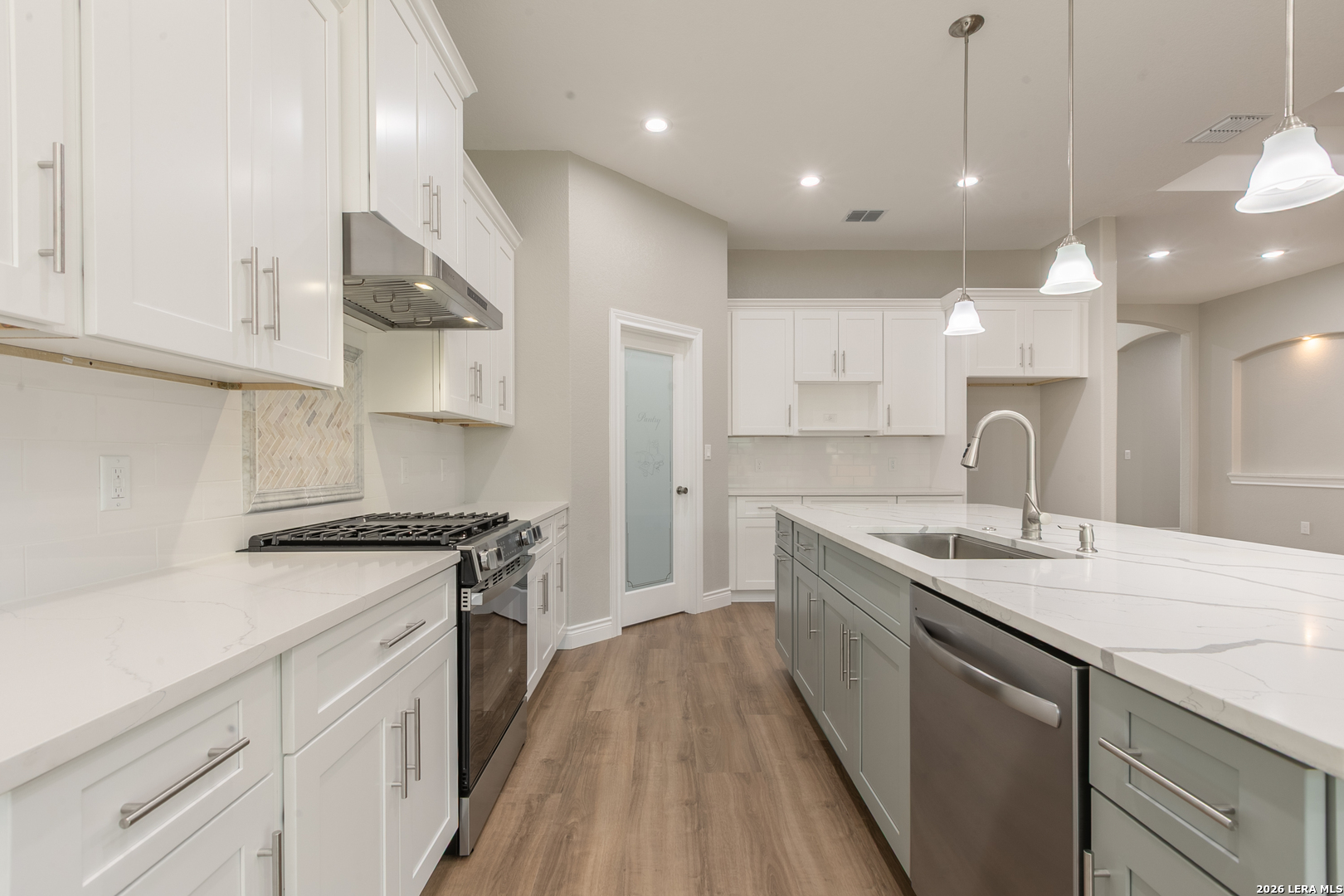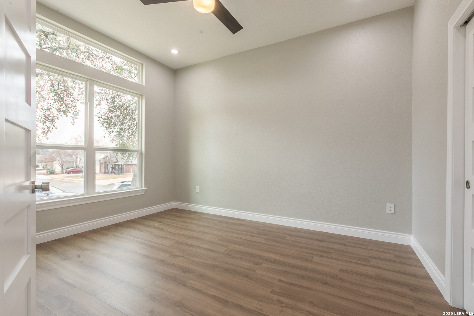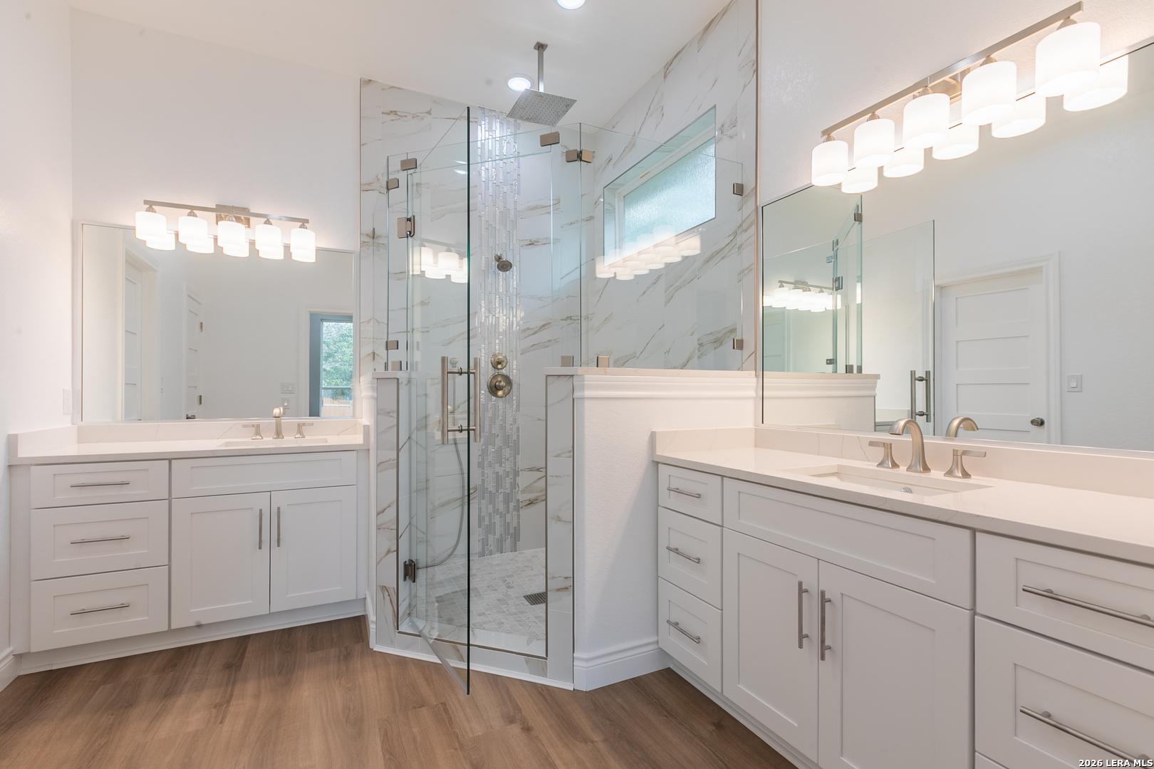 Located in the gated community of Westover Forest, this BRAND NEW recently completed transitional custom home, built on an existing foundation is perfectly set on a quiet cul-de-sac and offers over 2,000sqft of beautifully designed 1-story living. From the moment you enter the expansive foyer featuring a lighted art niche, you'll notice the exceptional craftsmanship, thoughtful details, and designer selections throughout. Enjoy an open-concept layout with luxury vinyl plank flooring throughout, a spacious family room with 12' coffered ceilings, adjustable LED recessed lighting, and a stunning encased floating electric fireplace-the perfect focal point for everyday living or entertaining. The gourmet island kitchen equally impressive with a breakfast bar, quartz countertops, s/s appliances, gas cooking, 42" cabinetry and detailed designer tiled backsplash not to mention, a huge pantry. A generous dining nook provides plenty of room for larger gatherings. The private owner's suite is a true retreat with coffered ceiling, recessed lighting, and a bay window. The spa-inspired bath offers a dramatic floor-to-ceiling tiled shower with rain head and handheld sprayer, sep vanities with quartz countertops, and a well-designed walk-in closet maximizing usable space & storage. This home features 3 bdrms, 2 baths plus, a study/office that could easily be used as 4th bdrm option. Secondary bedrooms are spacious and well situated away from primary suite. Additional highlights include raised panel doors throughout, a convenient hidden mudroom closet and a dedicated panel w/wiring for internet/security cameras. Enjoy the outdoors under covered patio with porcelain tile flooring, wood-planked ceiling & outdoor fan. Shed has refreshed woodwork & paint. Builder has left landscaping open so the new owners can create their own personalized outdoor design. This home is the perfect blend of luxury, comfort, and timeless style in one of the areas most desirable communities. Additional Inclusions: Spray foam insulation in exterior walls including garage, an insulated garage door, flooring in attic, ultra quiet jackshaft garage door opener, tankless gas water heater, pre-plumb for H2O softener, exterior eave LED lighting & flood lights. Easy access to Hwy 151/IH-410/Loop 1604, Sea World 2.3miles, LAFB, schools, dining and of course shopping! This is an absolute must-see sooner than later or, you just might miss out! Seller offering $5000 toward closing costs or landscape allowance with an acceptable offer.