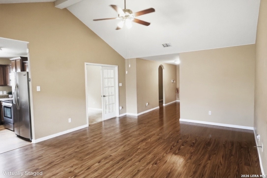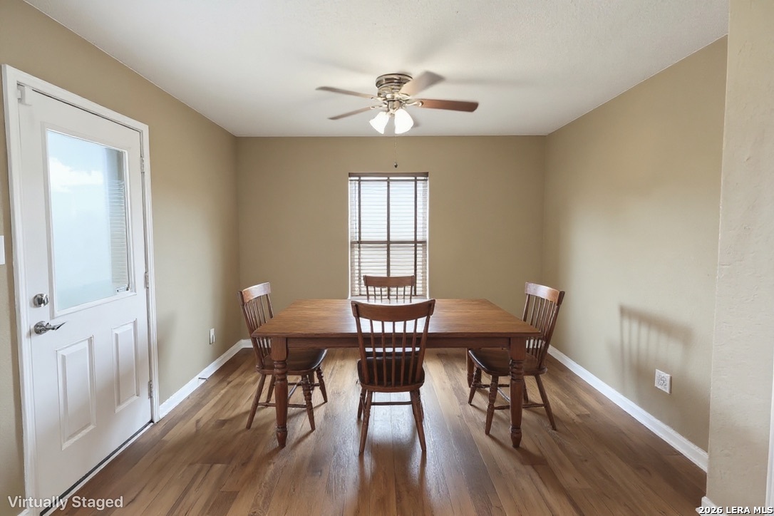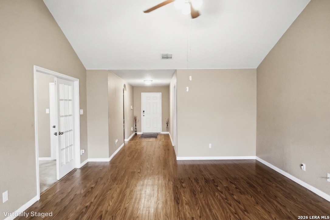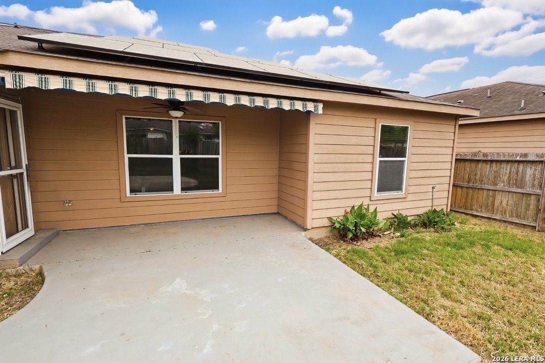 Welcome to this beautifully maintained single-story home in the desirable Foster Meadows community of Southeast San Antonio! Built in 2014, featuring 4 bedrooms, 2 bathrooms, and 1,647 of open concept living space. Bright living area flows into the kitchen with wood cabinetry and vaulted ceilings.Spacious primary suite includes a large bathroom, oversized walk-in closet, and a premium walk-in soaking tub featuring easy-access entry perfect for spa-like relaxation and everyday comfort. Home comes complete with fully installed solar panels, helping reduce energy costs and increase efficiency. Backyard is perfect for relaxing or entertaining with an added in awning for instant shade and comfort. This home is a perfect blend of efficiency, comfort, and modern living.