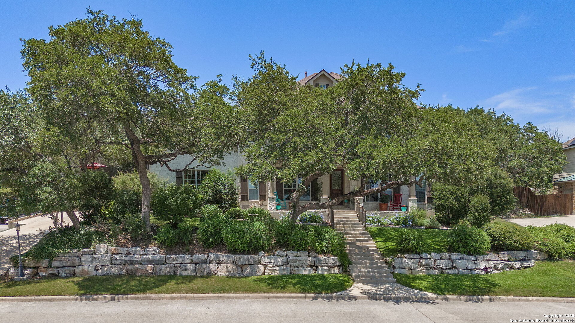 Welcome to this stunning 5-bedroom, 3.5-bathroom, two-story home in the gated, well-established, Encino Ranch neighborhood. The charming front porch, complemented by lush landscaping, and mature trees invite you home. Upon entry, you'll find a private home office on one side of the foyer, perfect for remote work or a quiet study. The spacious living room with its open floor plan features a beautiful stone fireplace, soaring ceilings, and large windows offering views of the beautiful backyard. The kitchen overlooks the main living area, is equipped with built-in stainless steel appliances, granite countertops, and a breakfast bar. Enjoy your meals and family time in a dining area conveniently situated off the kitchen. The primary bedroom located on the main floor includes a window sitting area, and ample space, creating the perfect relaxing retreat. The large primary bathroom offers an oversized double vanity, garden tub, tile shower, and walk-in closet with custom storage system. Upstairs, you'll find four generously sized secondary bedrooms, a loft, and a large game room, as well as a balcony overlooking the front yard. Enjoy the outdoors in a fenced backyard full of mature landscape plantings and shade trees, a large open patio and extra flagstone patio, ideal for dining, lounging, and entertaining. A wooden shed and playground add to this home's backyard appeal. Within the desirable NEISD school district (Roan Forest Elementary, Tejeda Middle School, and Johnson High School).