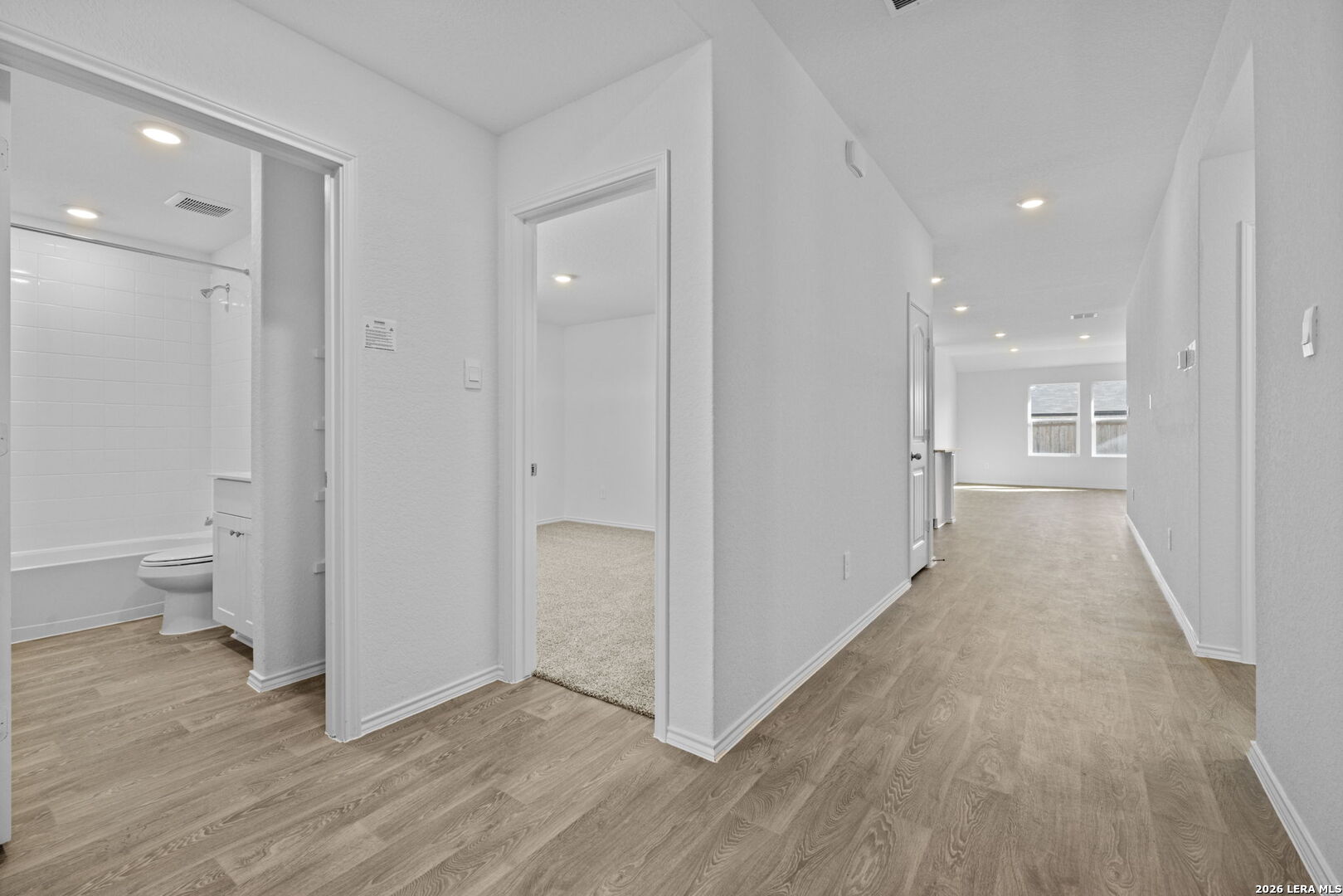 The Irvine is one of our one-story floorplans offered at Navarro Fields in Seguin, Texas. This 4-bedroom, 2-bathroom home includes a 2-car garage within its 1,796 square feet of comfortable living space. Step into this home from the covered entryway and make your way down the hall to the main living space. The open kitchen looks out to your dining area and family room, allowing for conversations to easily flow from all spaces. The L-shaped kitchen includes granite countertops, a large island with an undermount sink, a corner pantry closet, stainless-steel appliances and 36'' upper cabinets. *Seller is willing to assist with closing costs or a rate buy-down through preferred lender with an acceptable offer.