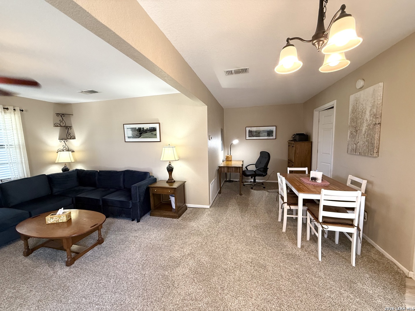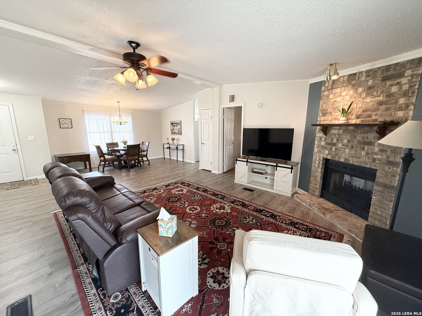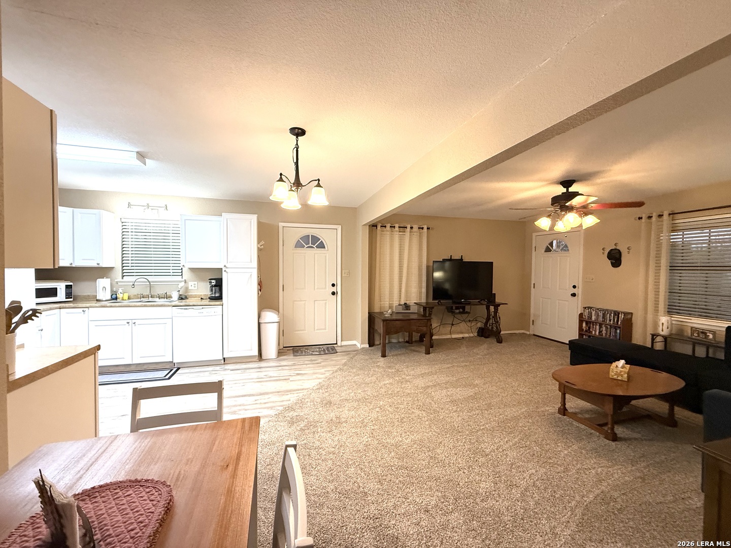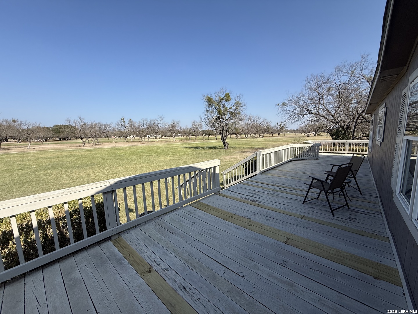 Beautifully updated and fully furnished home located on two spacious lots within the historic Fort Clark Springs community, perfectly positioned along the scenic Las Moras Golf Course. This 3-bedroom, 2-bath residence offers fresh interior paint and brand-new flooring throughout, creating a clean, modern feel while maintaining its inviting charm. Step outside onto the recently updated deck, where you can unwind and take in peaceful golf course views. Enjoy the unique setting as axis and whitetail deer are often seen grazing in the evenings-an ideal backdrop for relaxing or entertaining. The property also includes a fully furnished 1-bedroom, 1-bath mother-in-law suite featuring new flooring throughout, providing excellent flexibility for guests, extended family, or potential rental income. An additional laundry room adds convenience, while the 2-car carport offers ample covered parking. A rare opportunity to own a move-in-ready property in Fort Clark Springs with space, versatility, and incredible views.